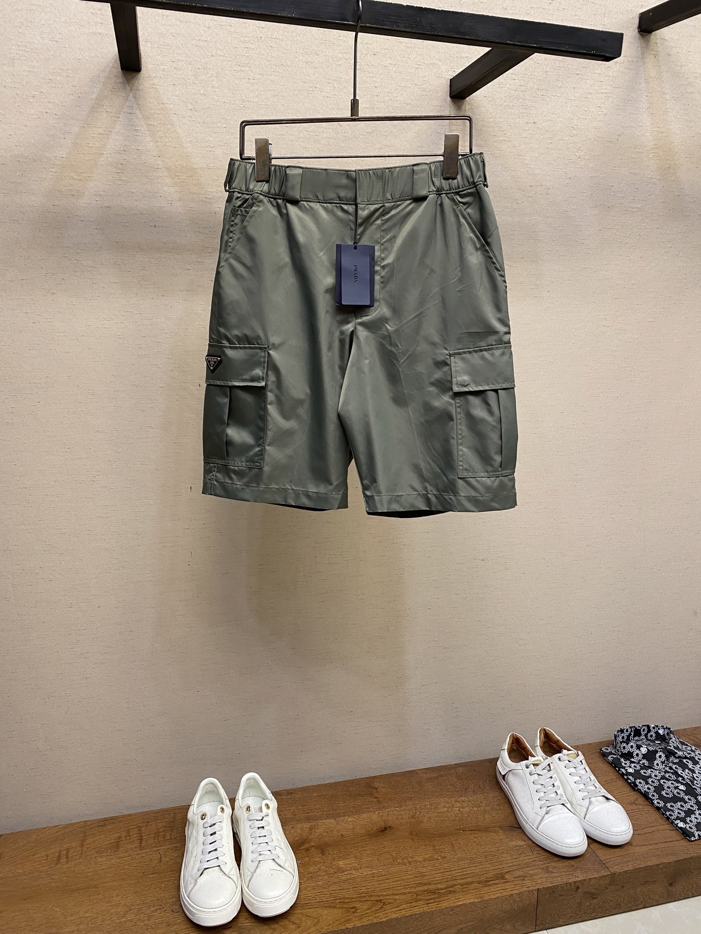 Удобные боковые и накладные карманы добавляют функциональности, а фирменный логотип Prada подчеркивает принадлежность к элитному бренду. Идеальный выбор для повседневных прогулок и стильных летних образов.