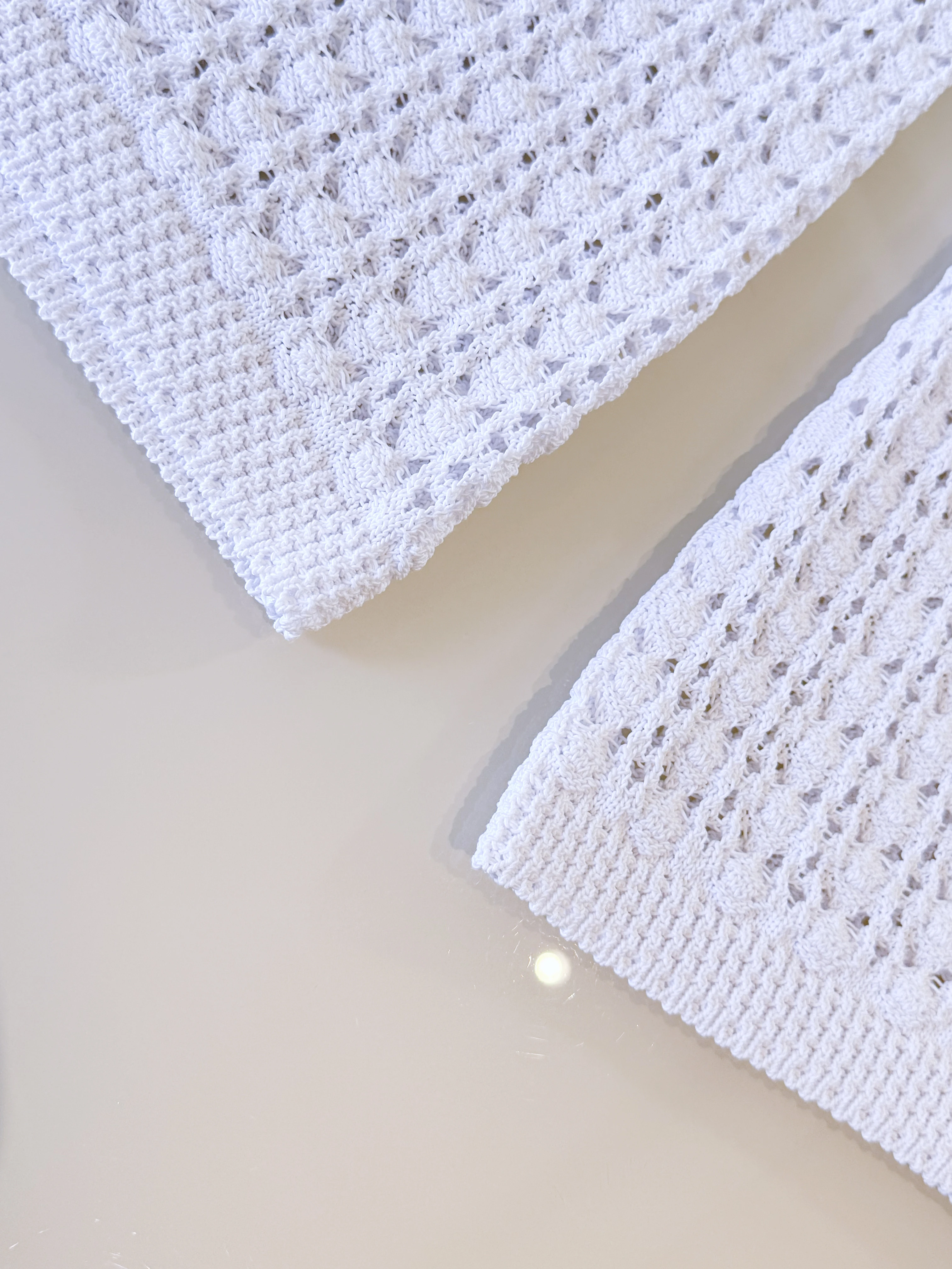 • Техника исполнения: ручная/машинная вязаная ажурная структура — мелкая фактурная сетка с ровными, аккуратными петлями. Контрастная плотная резинка по низу штанин придает законченный вид.