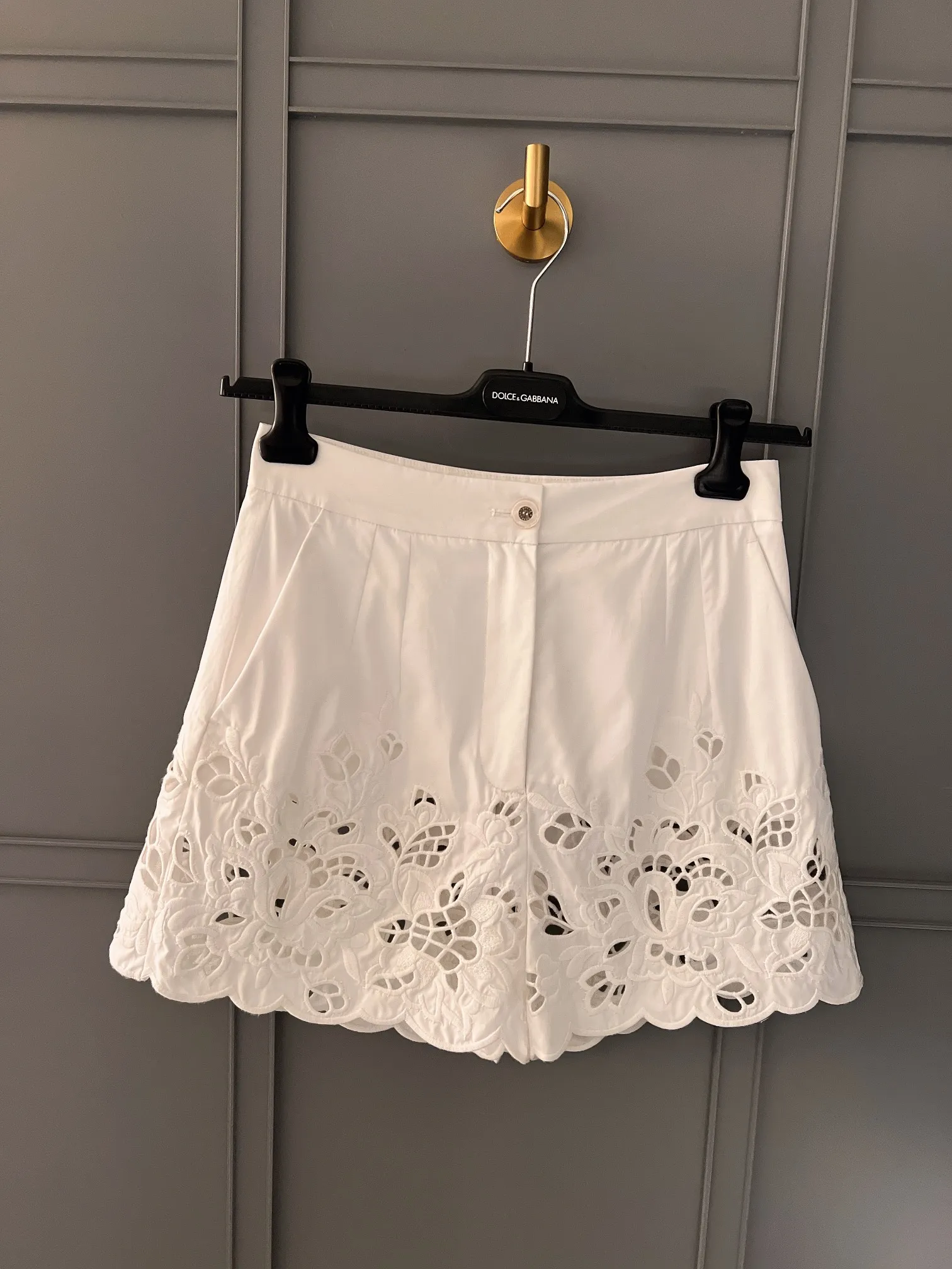 Шорты Dolce Gabbana из хлопка с вышивкой кружева в белом цвете — это изысканный и стильный элемент летнего гардероба. Эти шорты выполнены из высококачественного хлопка, который обеспечивает комфорт и воздухопроницаемость, что делает их идеальными для теплых дней.