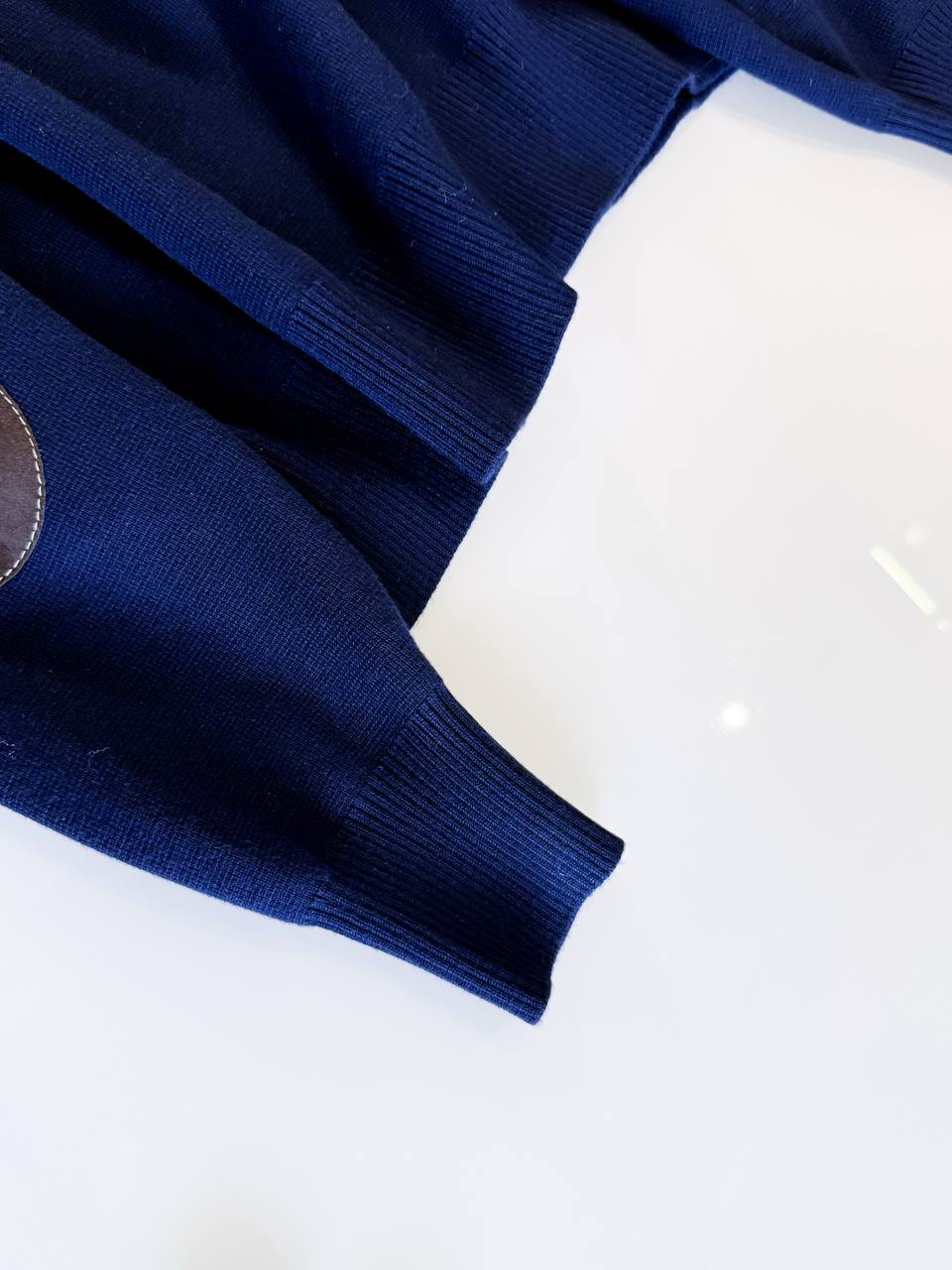 • Цвет: насыщенный тёмно‑синий корпус + контрастная коричневая верхняя кокетка.