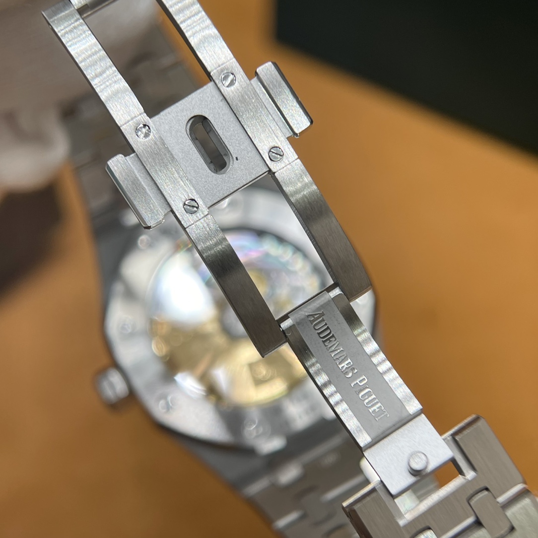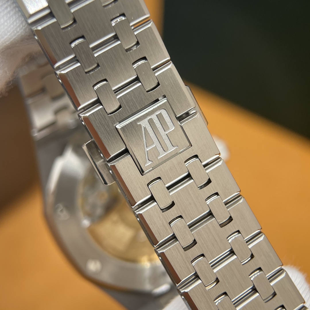 Корпус Изготовлен из стали, что обеспечивает долговечность и устойчивость к коррозии. Корпус имеет характерную восьмигранную форму, присущую коллекции Royal Oak.