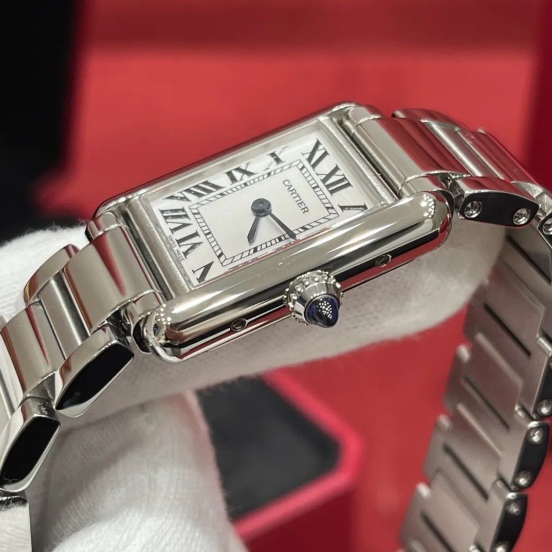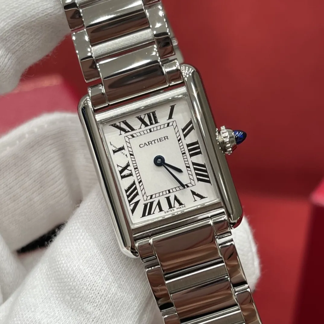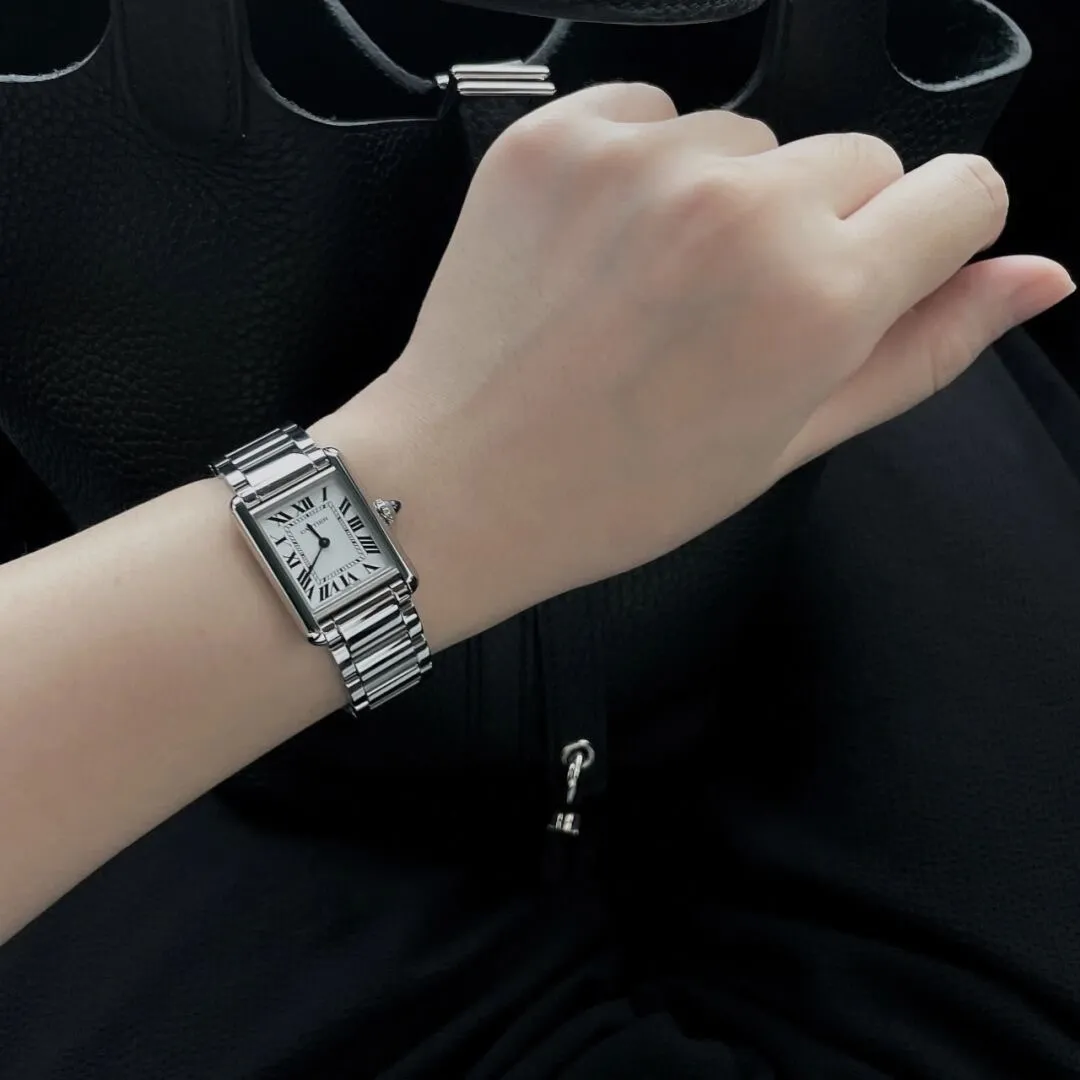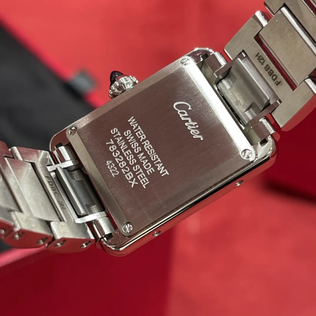 Часы имеют классический прямоугольный корпус, который стал знаковым для коллекции Tank. Их лаконичные линии и изысканный стиль делают их универсальными и подходящими для различных случаев.