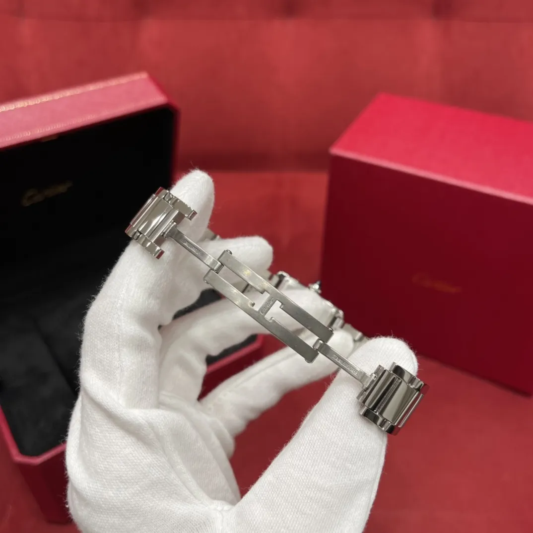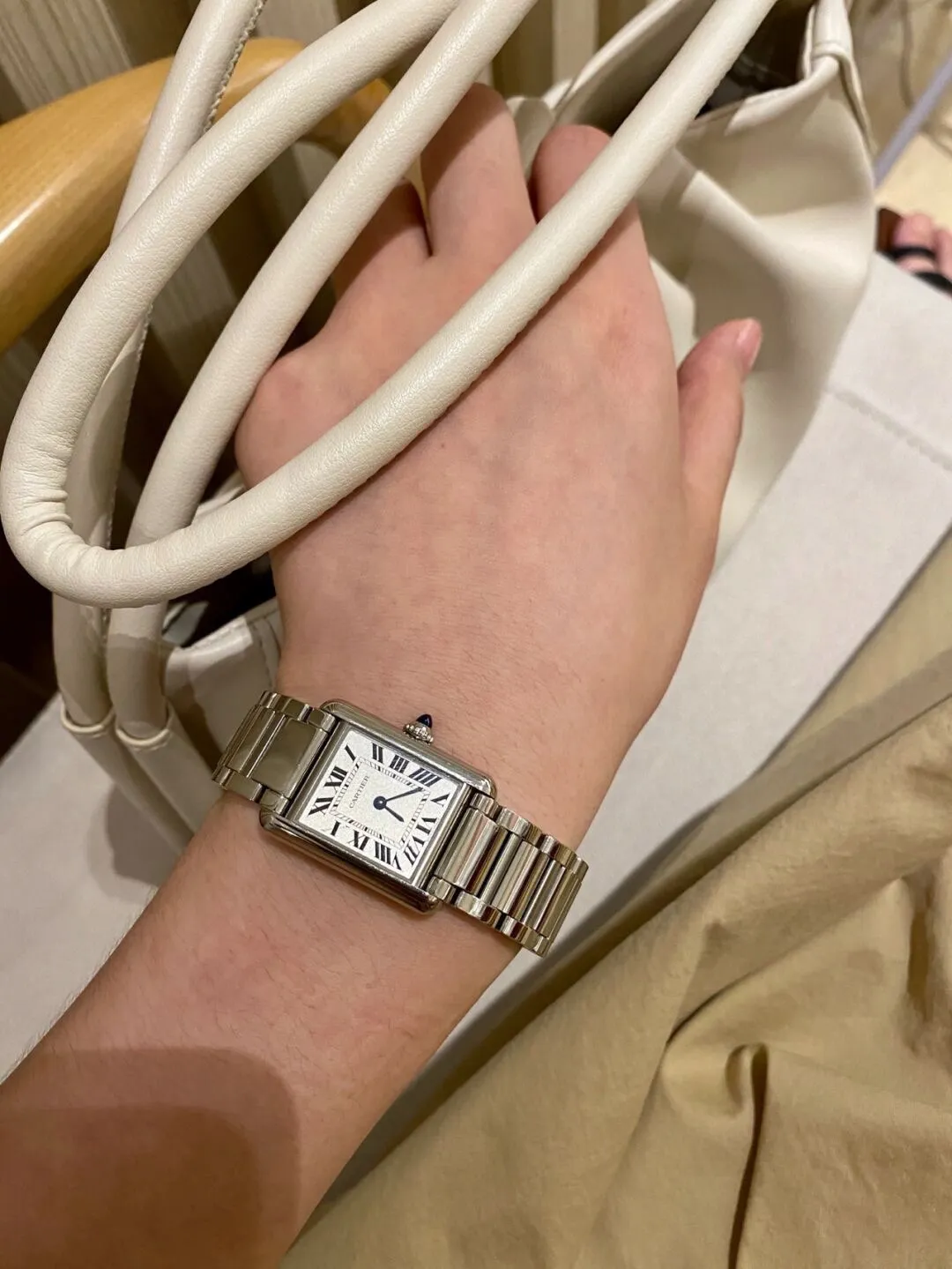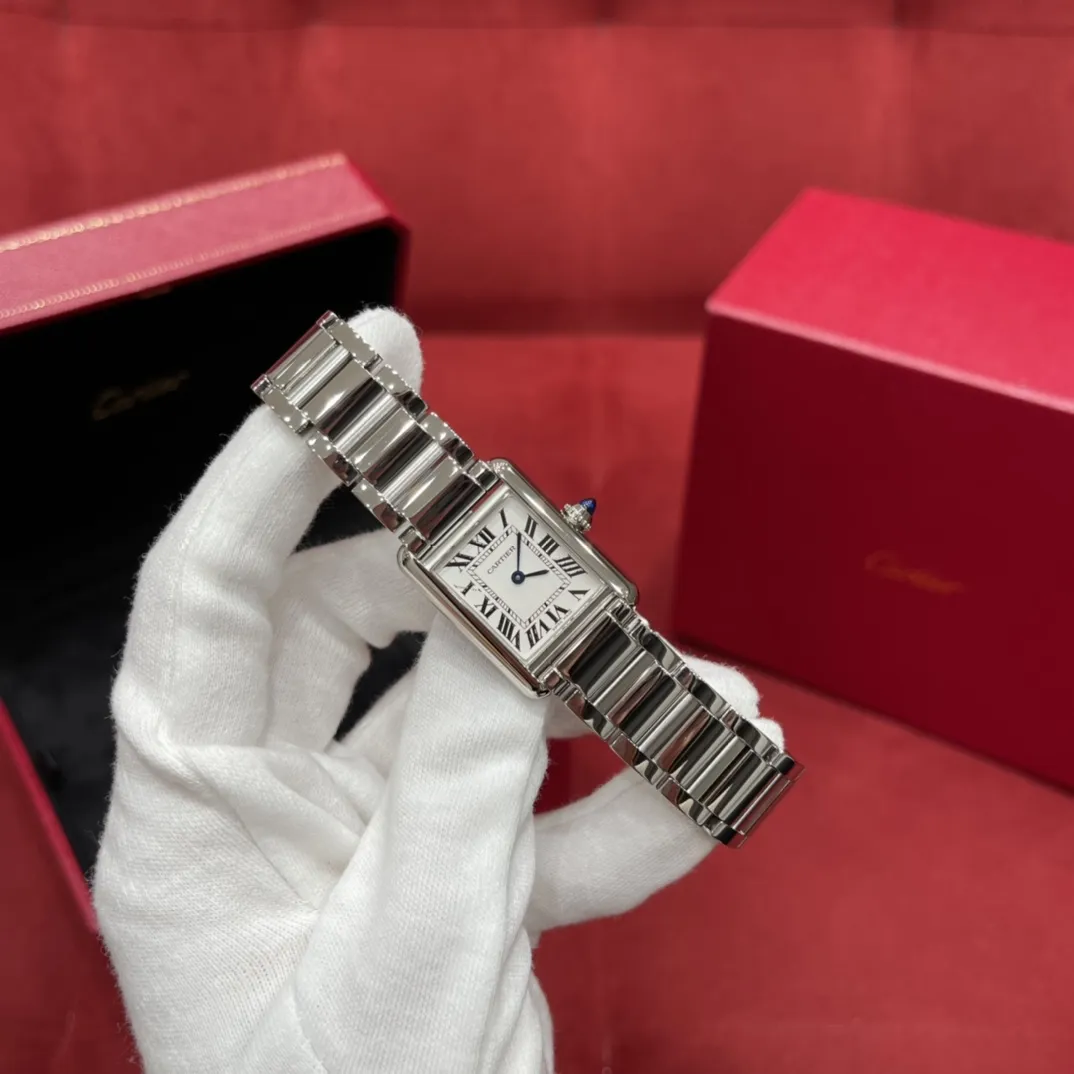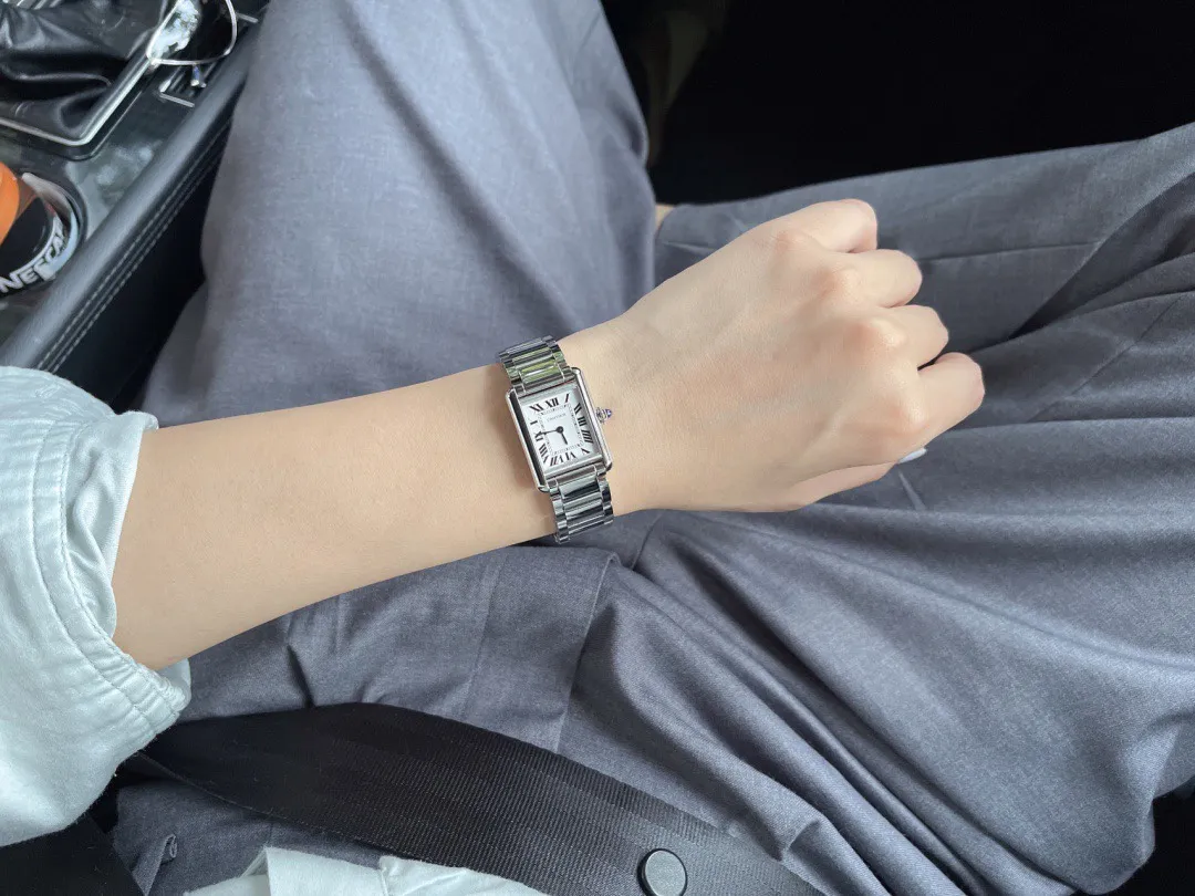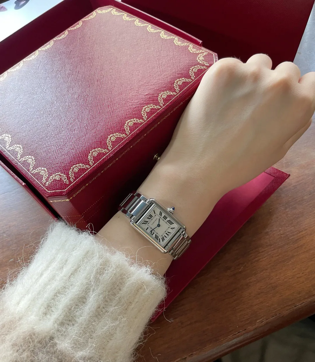 Часы имеют классический прямоугольный корпус, который стал знаковым для коллекции Tank. Их лаконичные линии и изысканный стиль делают их универсальными и подходящими для различных случаев.