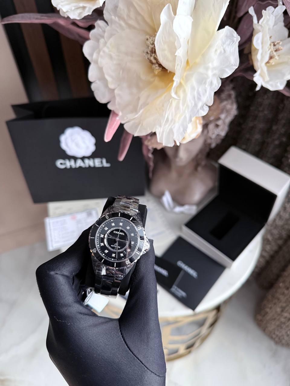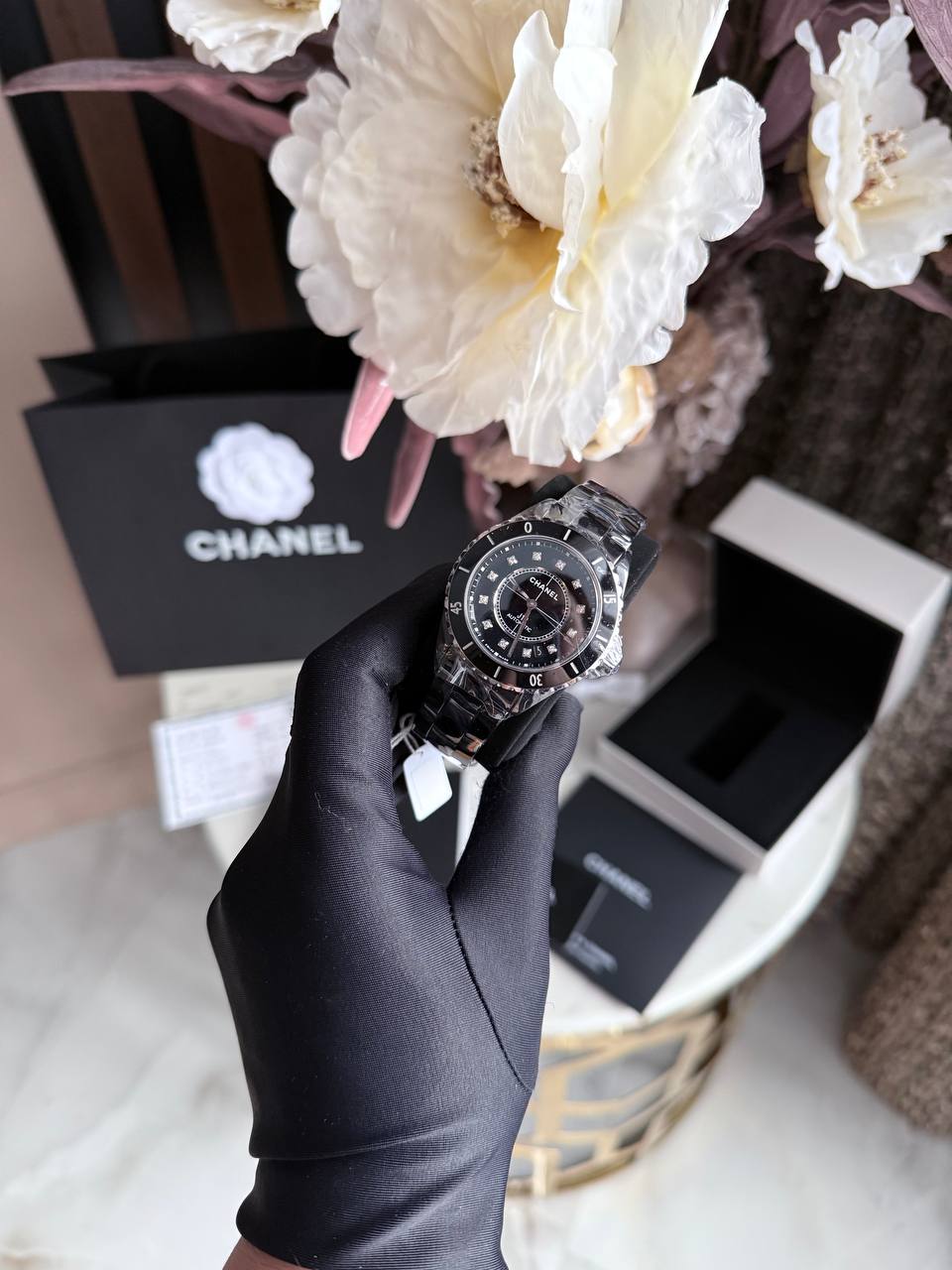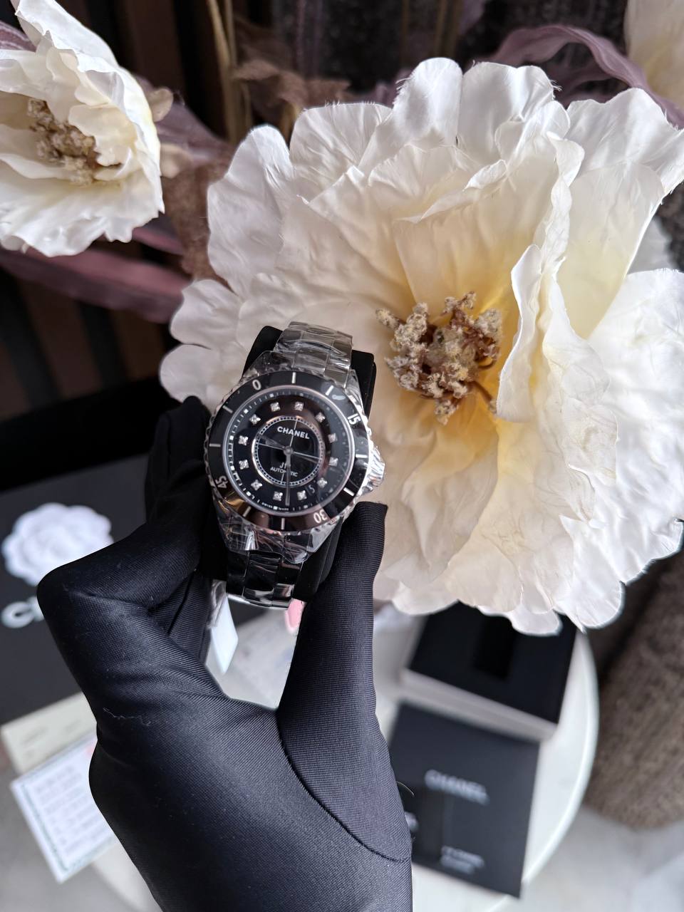 Часы J12 Diamond Bezel Caliber 12.1 – это элегантное сочетание высокой функциональности и изысканного дизайна. Корпус диаметром 38 мм выполнен из черной высокопрочной керамики, которая обеспечивает не только прочность, но и легкость. Безель с бриллиантами придает часам особый блеск и шик, а часовые метки, также инкрустированные бриллиантами, добавляют изящества и делают считывание времени более стильным. Механизм Caliber 12.1 гарантирует точность хода и надежность, что является важным аспектом для часов премиум-класса.