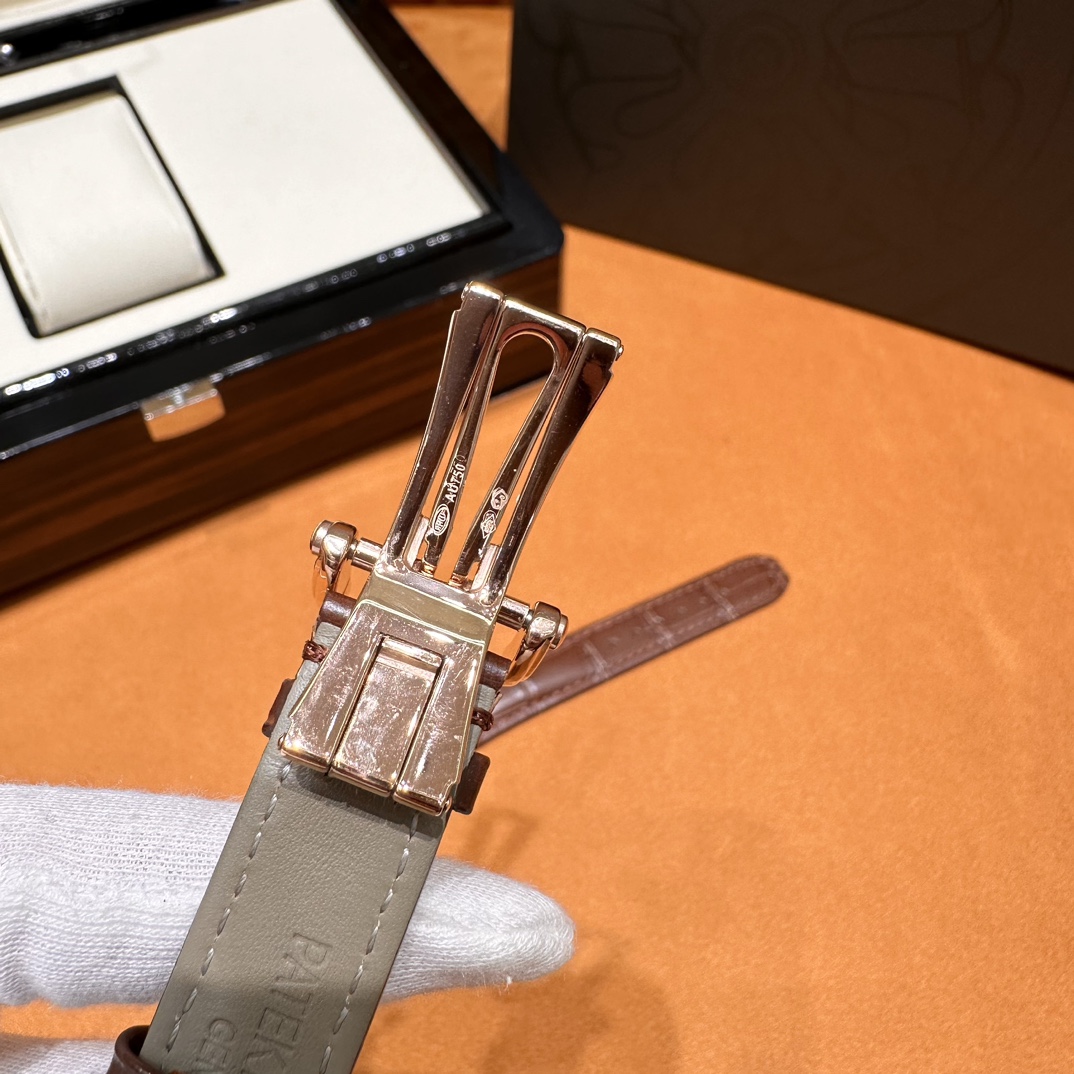 Часы имеют диаметр 32 мм и выполнены с покрытием 18-каратного золота, что придает им роскошный вид. Корпус достаточно тонкий — всего 6,9 мм, что делает их удобными для ношения.