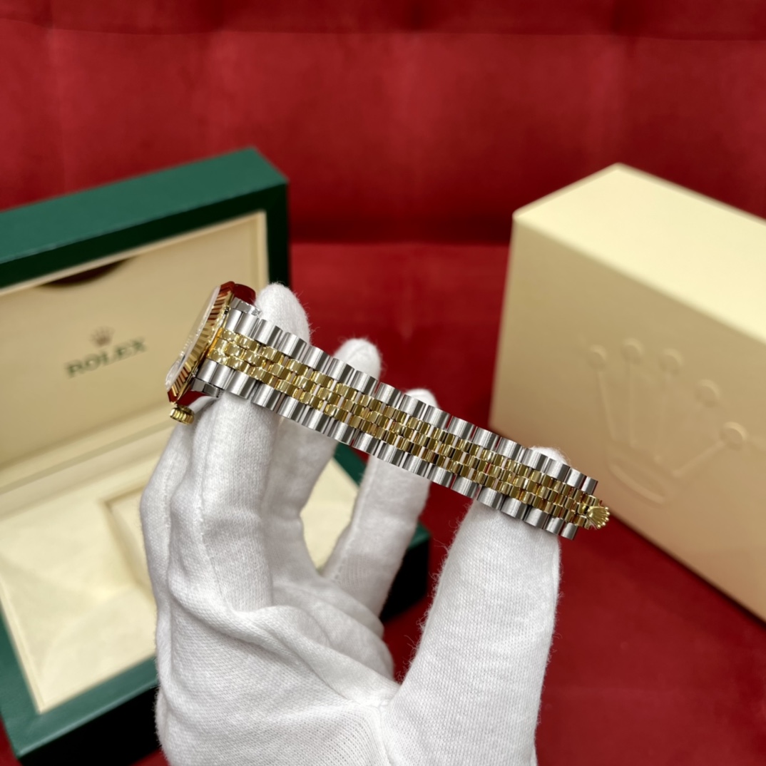 Браслет Jubilee, известный своим комфортом и элегантностью, прекрасно дополняет общий дизайн часов. Он состоит из чередующихся звеньев, что делает его не только стильным, но и удобным в носке.