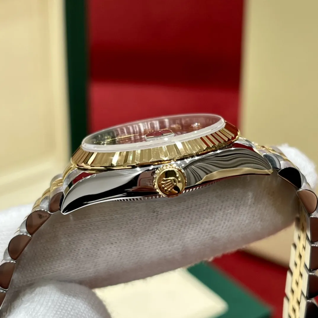 Браслет Jubilee, известный своим комфортом и элегантностью, прекрасно дополняет общий дизайн часов. Он состоит из чередующихся звеньев, что делает его не только стильным, но и удобным в носке.
