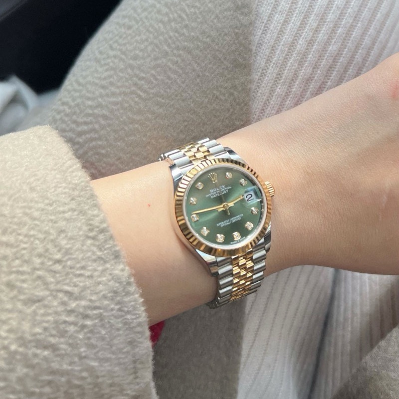 Женские часы Rolex Datejust 31 мм 278273-0030 с зелёным циферблатом и браслетом Jubilee — великолепный пример сочетания элегантности и функциональности.