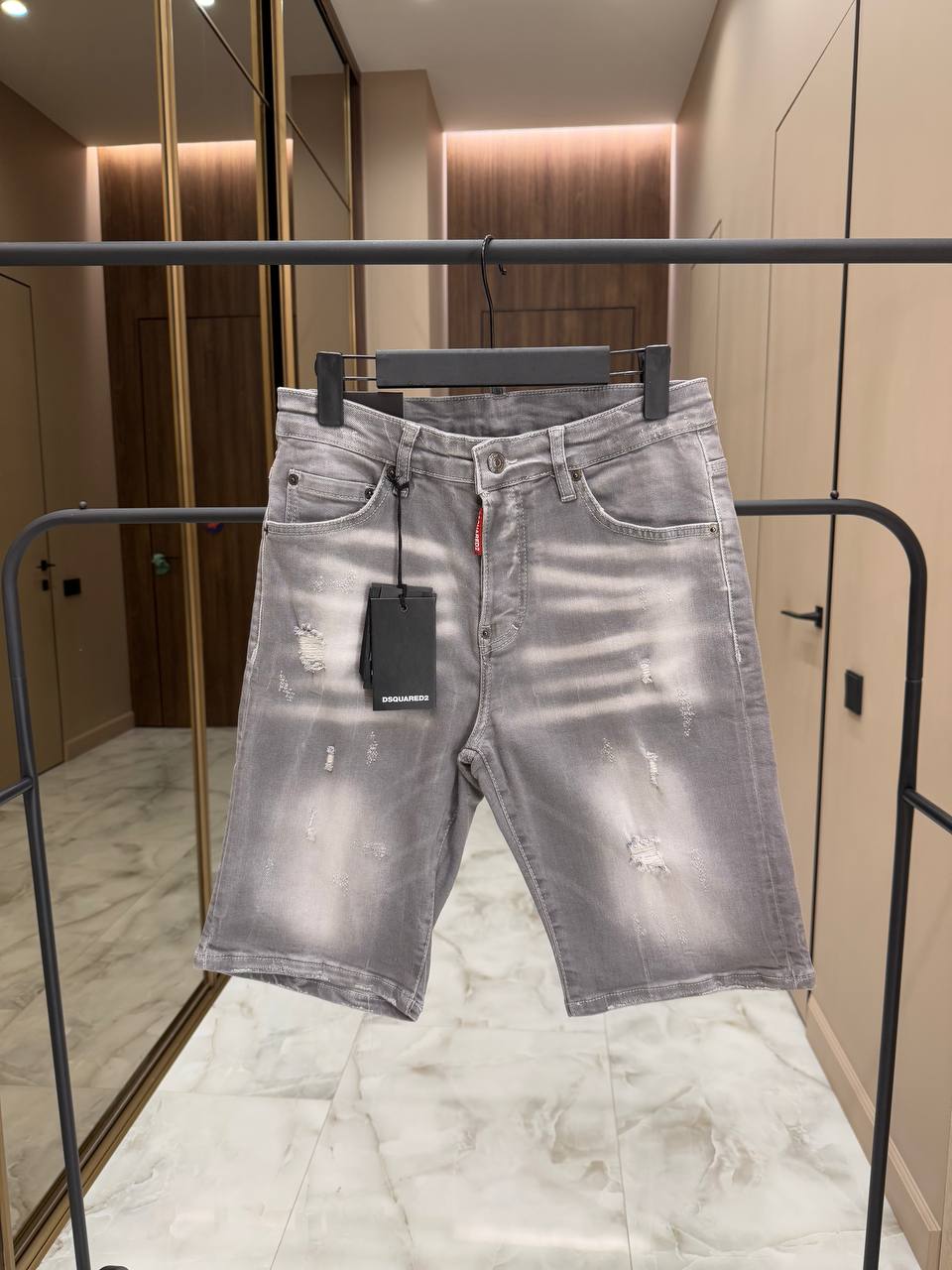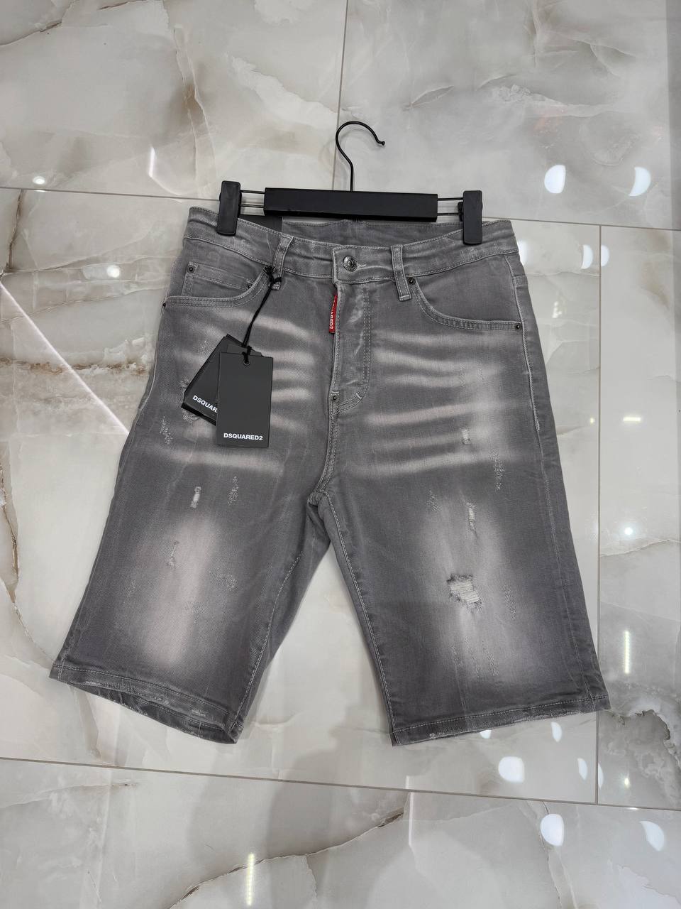 Мужские джинсовые шорты DSquared с потёртостями — это стильный элемент гардероба, который сочетает в себе комфорт и модный дизайн. Такие шорты часто имеют характерный непринужденный вид благодаря эффекту "потёртости" и индивидуальной отделке, которая придаёт им уникальность.