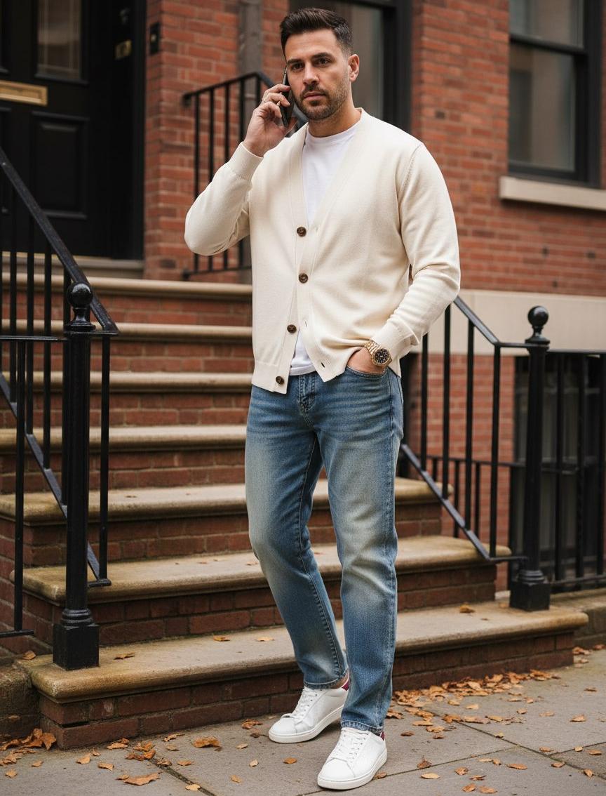• Низ брюк: слегка подвернутый край с контрастной внутренней кромкой, создающей аккуратную отделку низа.