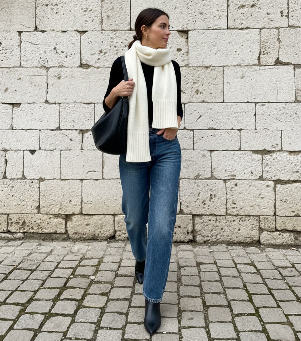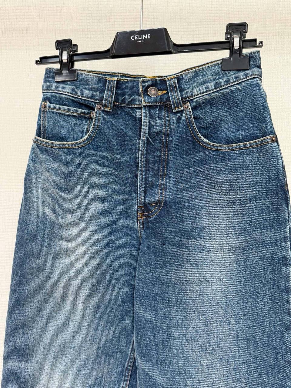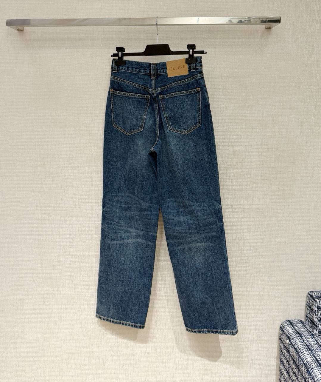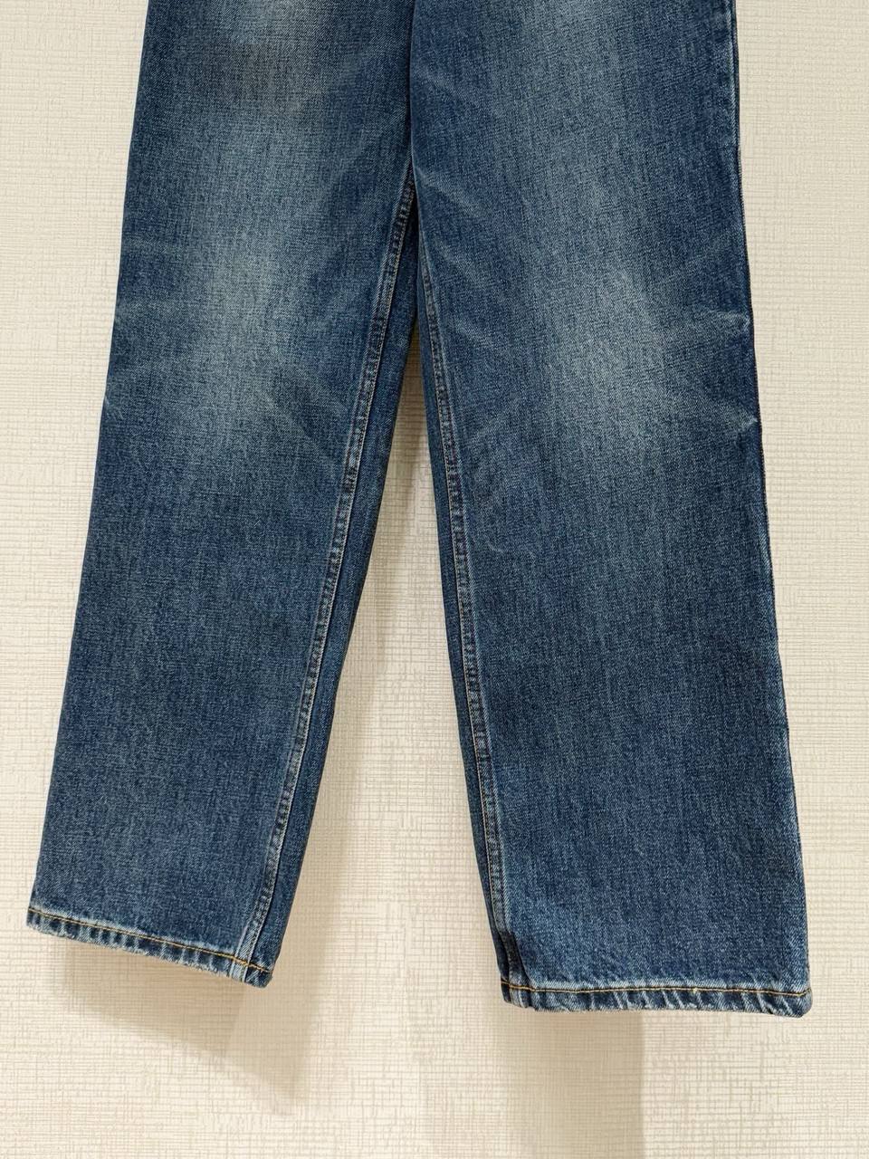 Классические прямые джинсы из плотного денима с винтажной обработкой и умеренным эффектом "вытертости". Элегантный минималистичный силуэт — высокая посадка и прямой, чуть укороченный ниже щиколотки бок, создают универсальную основу как для повседневных, так и для более нарядных образов.