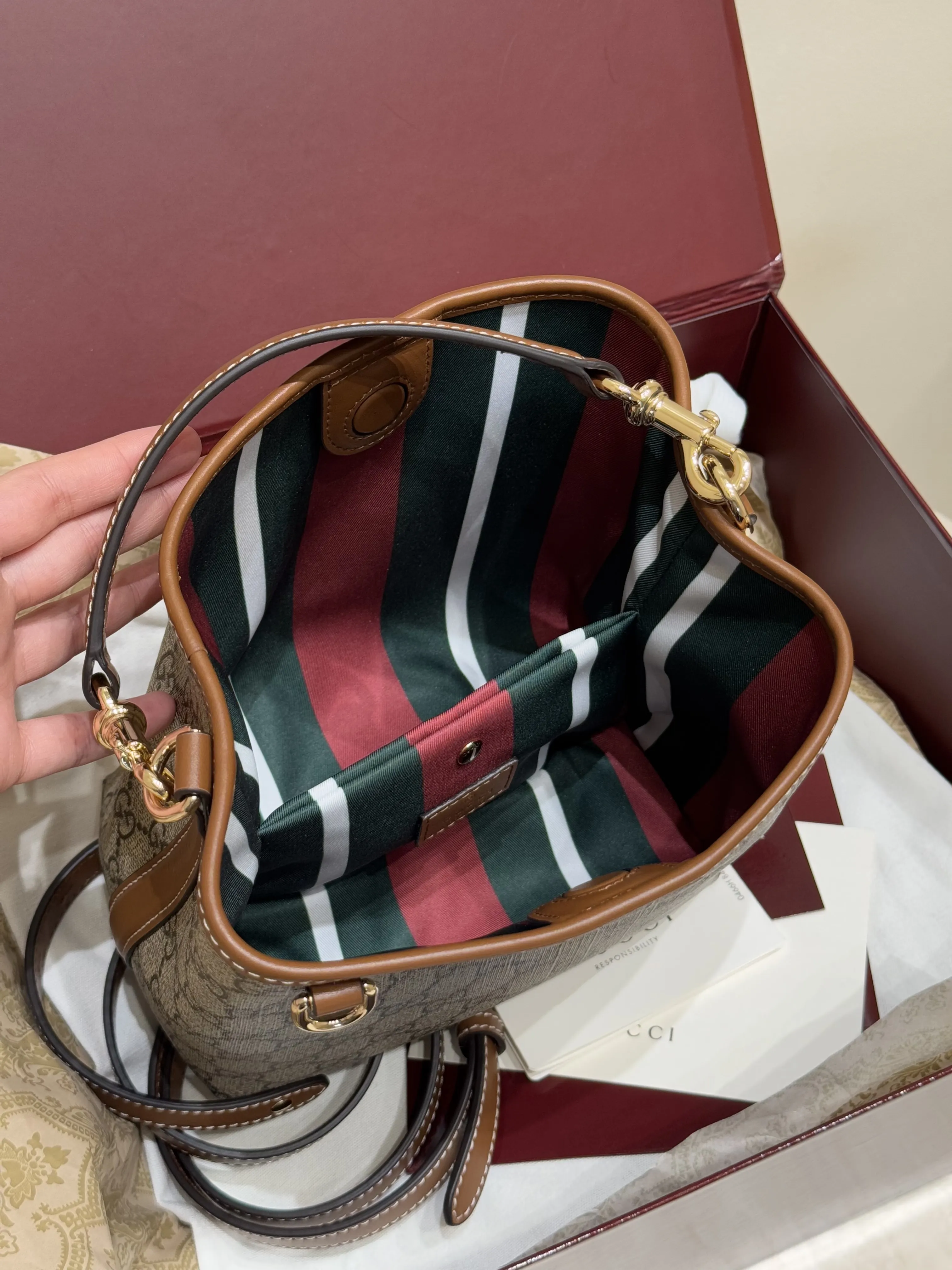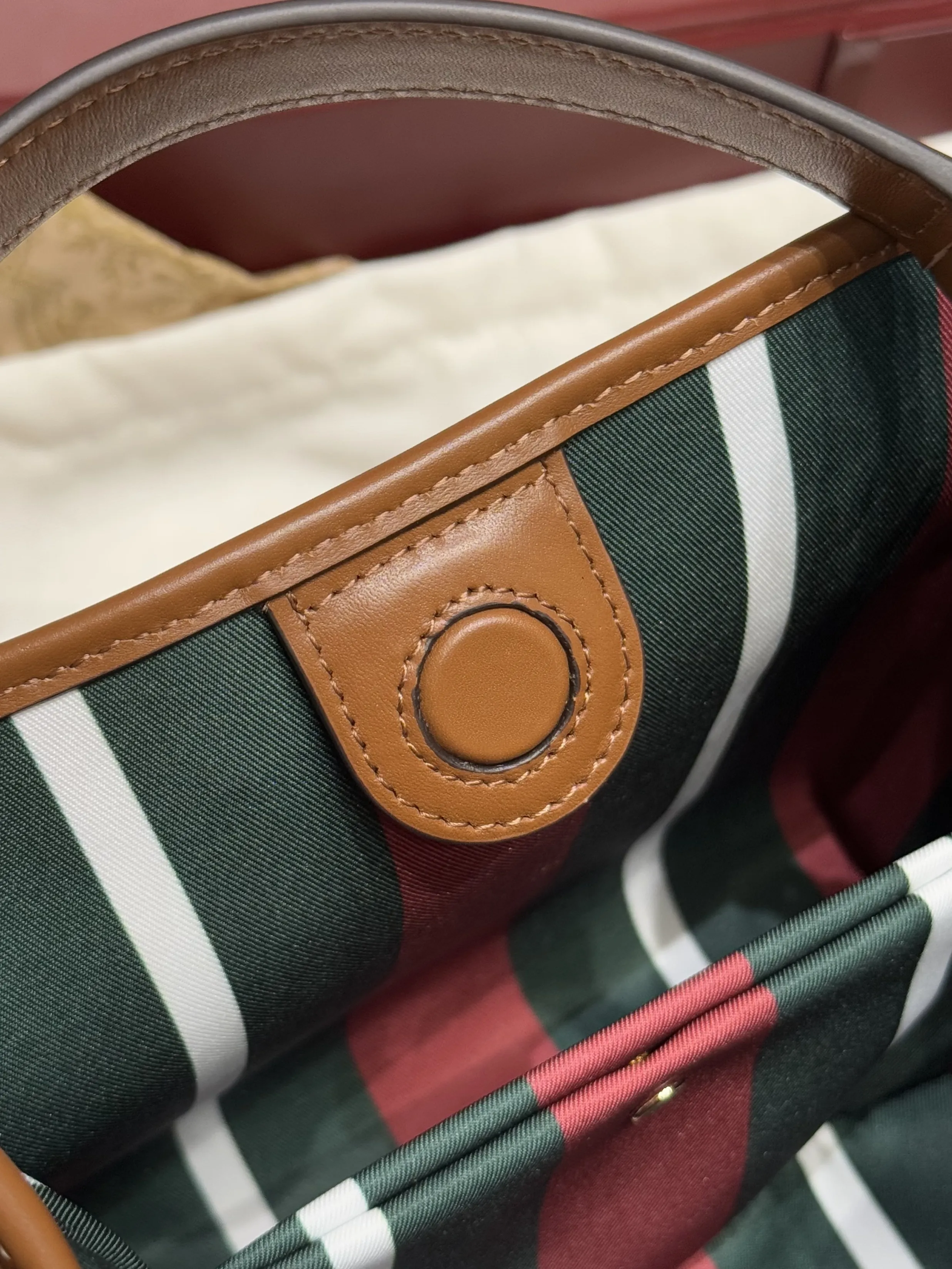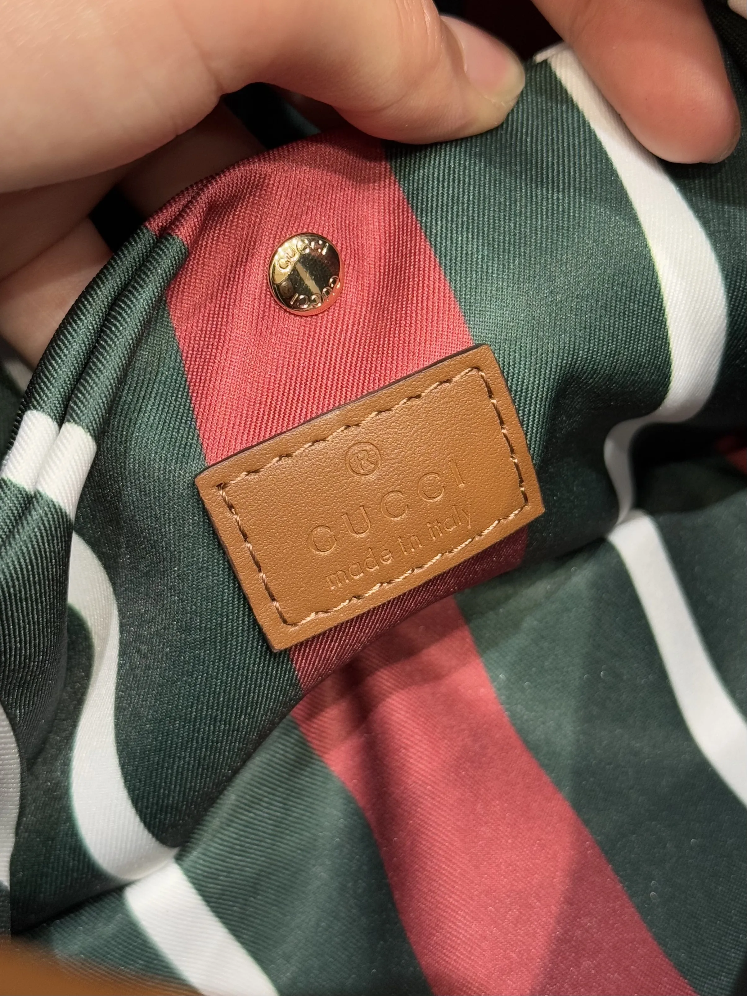 Подкладка из хлопка Web с традиционными цветами Gucci — зеленым и красным — добавляет интересный акцент внутри сумки, а также говорит о внимании к деталям.