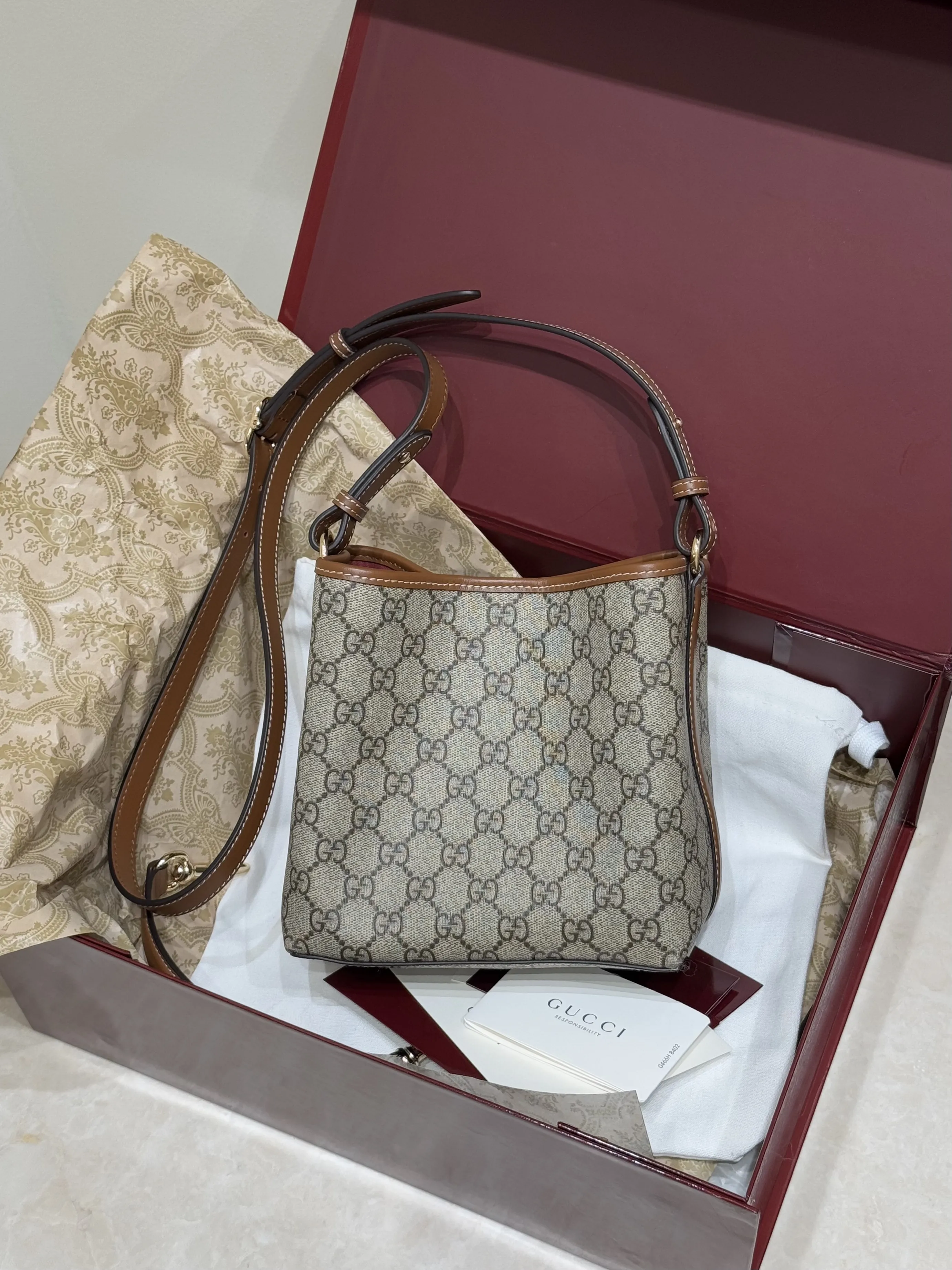 Сумка-ведро из новой коллекции GG Emblem от Gucci действительно выглядит впечатляюще и элегантно.