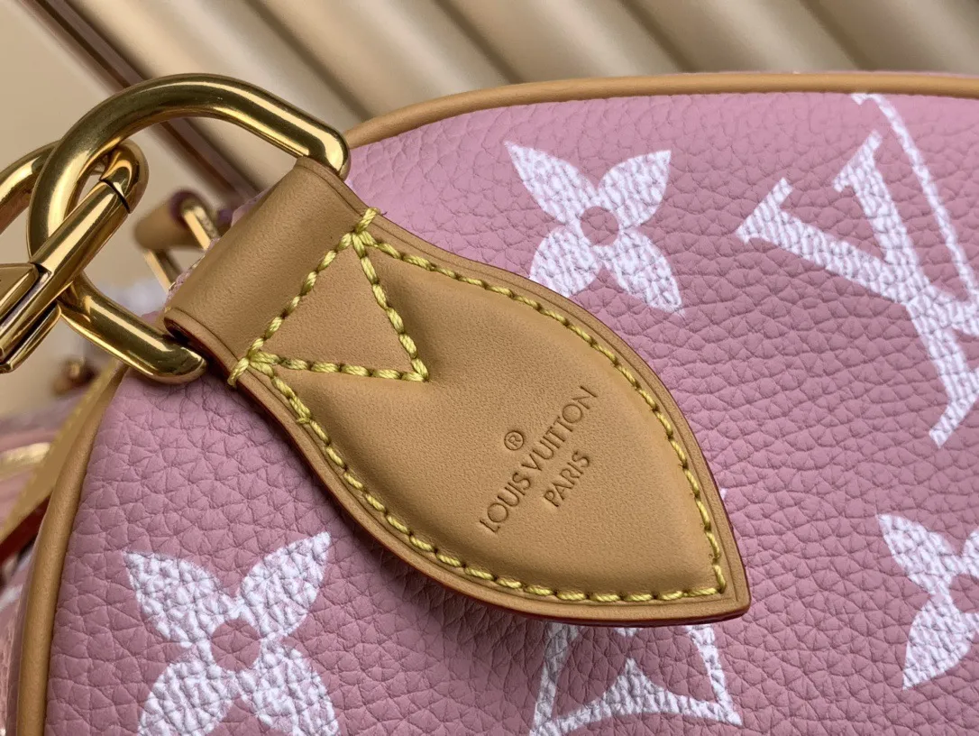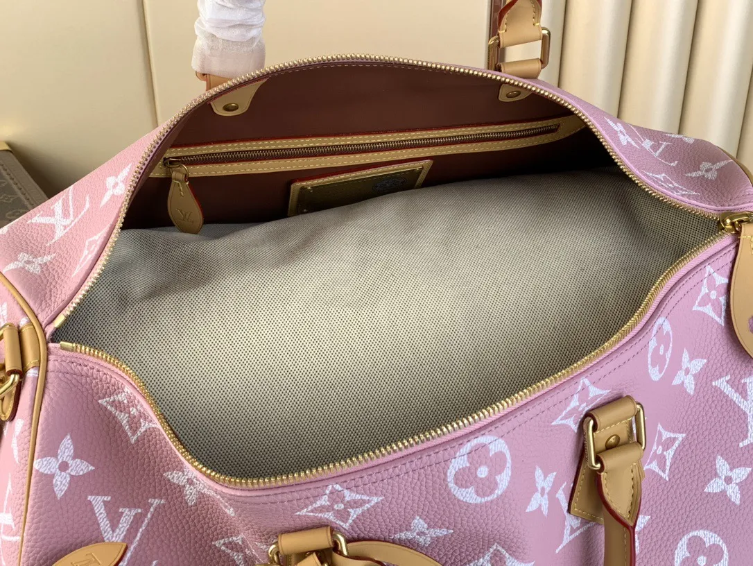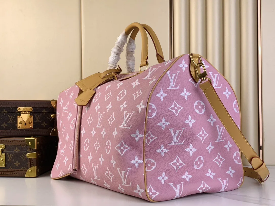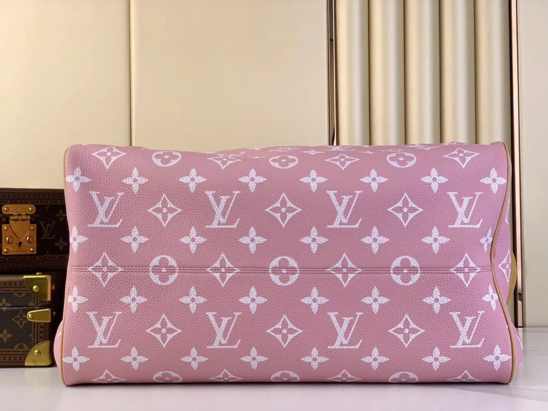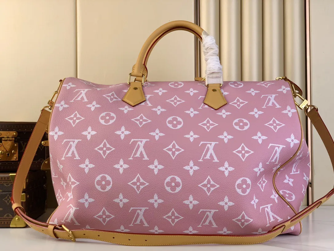 Дорожная сумка LV Speedy P9 Bandoulière 40 является выдающимся аксессуаром, который прекрасно сочетает в себе стиль и функциональность. Использование телячьей кожи с принтом в виде монограммы делает её не только элегантной, но и устойчивой к износу, что особенно важно для дорожной сумки.