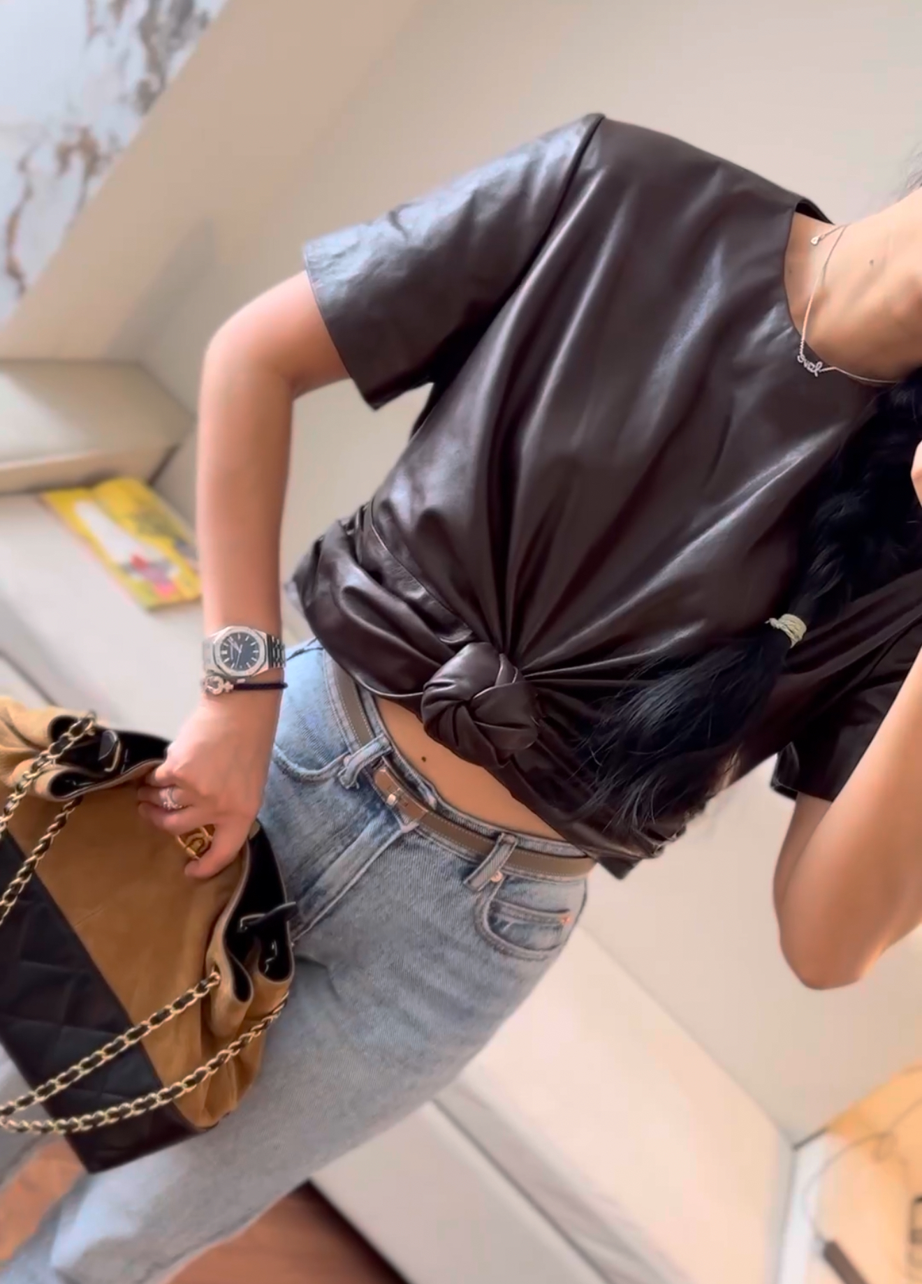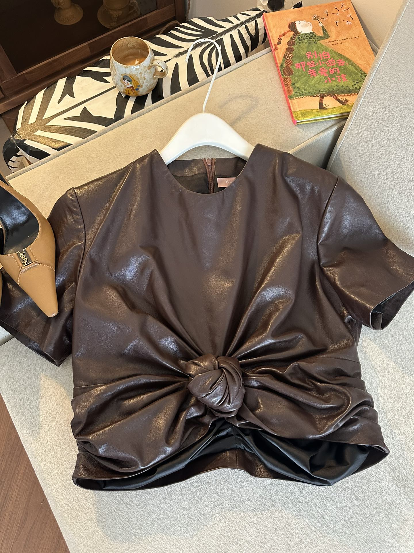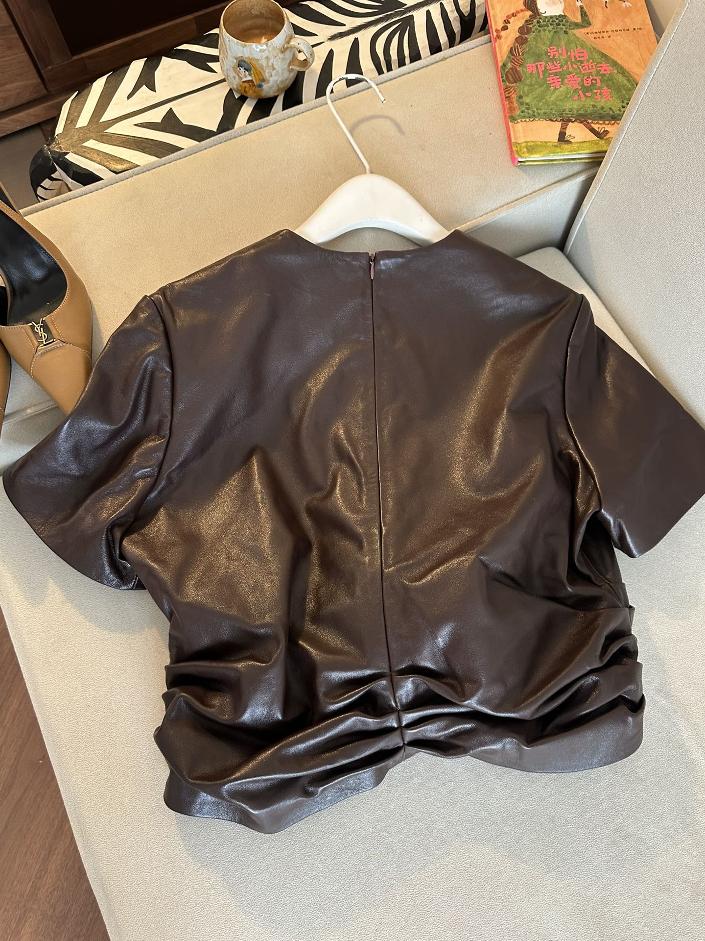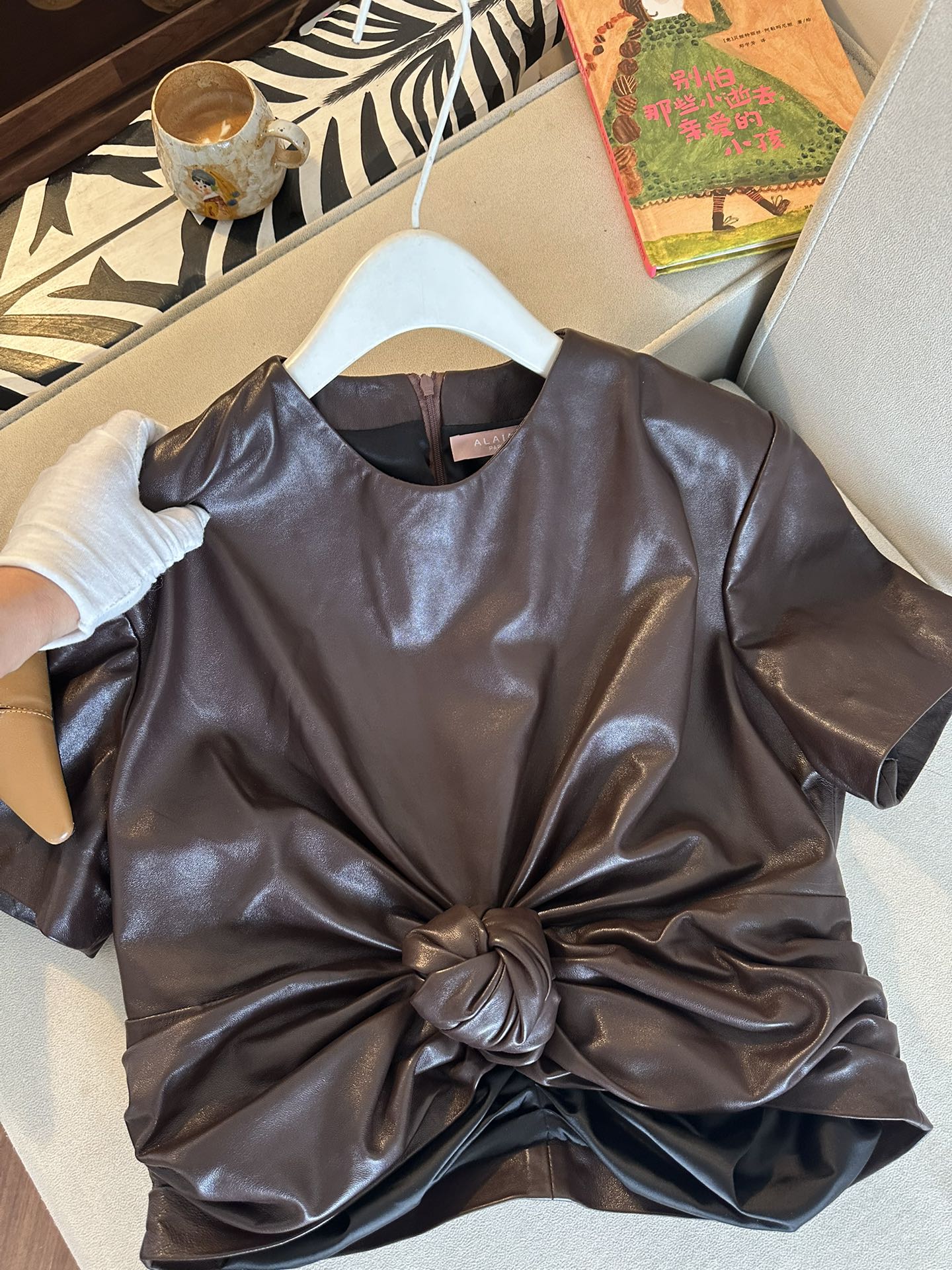 Женская кожаная блузка Alaia из овечьей кожи — стильный и элегантный предмет одежды, который сочетает в себе высокое качество материалов и уникальный дизайн. Бренд Alaia известен своими изысканными силуэтами и вниманием к деталям, что делает такие вещи особенно привлекательными для модных ценителей.