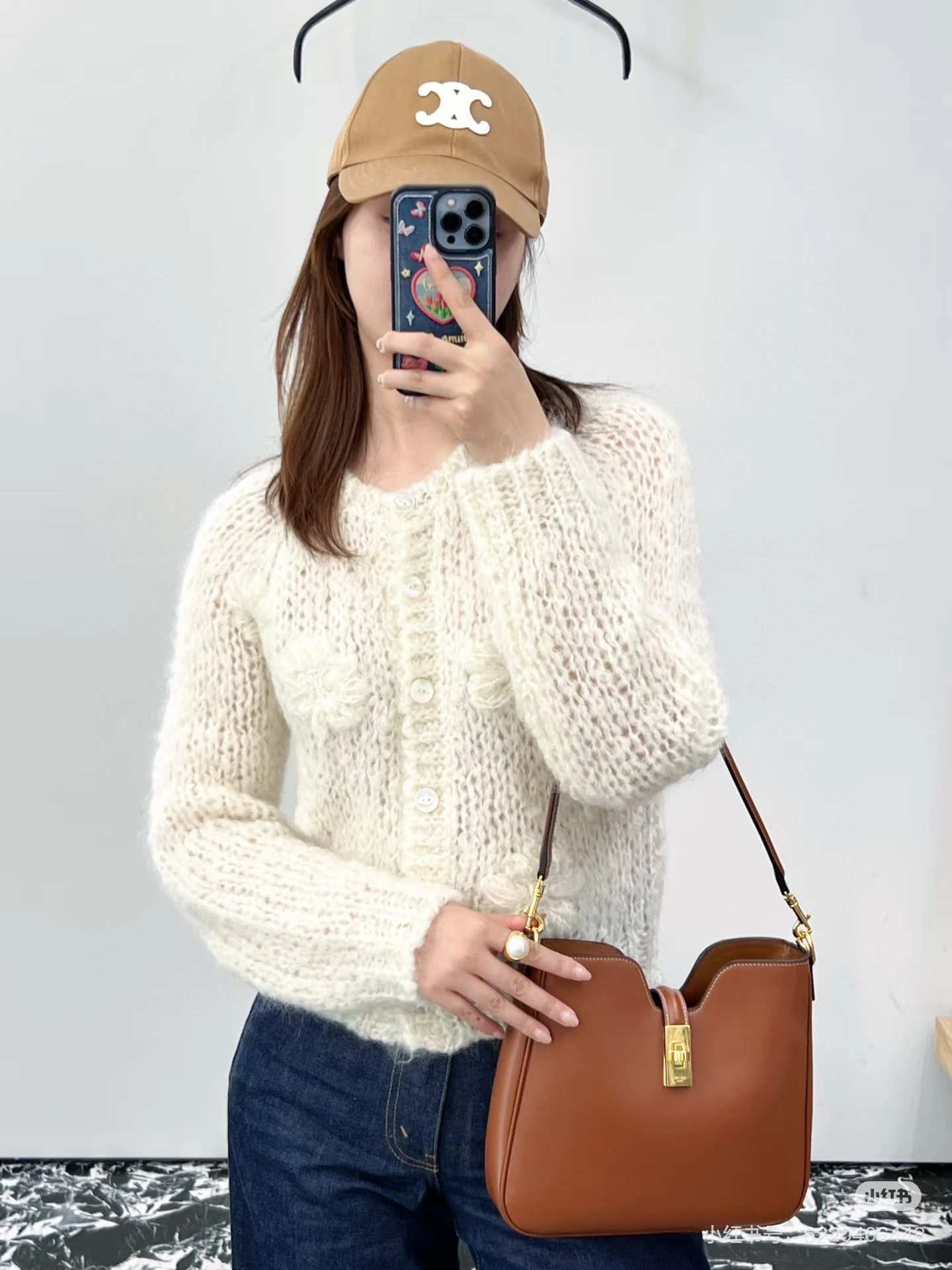 Элегантный женский вязаный кардиган от CELINE — воплощение утончённого французского стиля и комфорта. Изделие выполнено из роскошной пушистой пряжи молочного оттенка, благодаря чему становится невероятно мягким, приятным на ощупь и сохраняет тепло. Классический прямой силуэт позволяет носить кардиган как самостоятельную вещь, так и наслоённо поверх топа или рубашки.