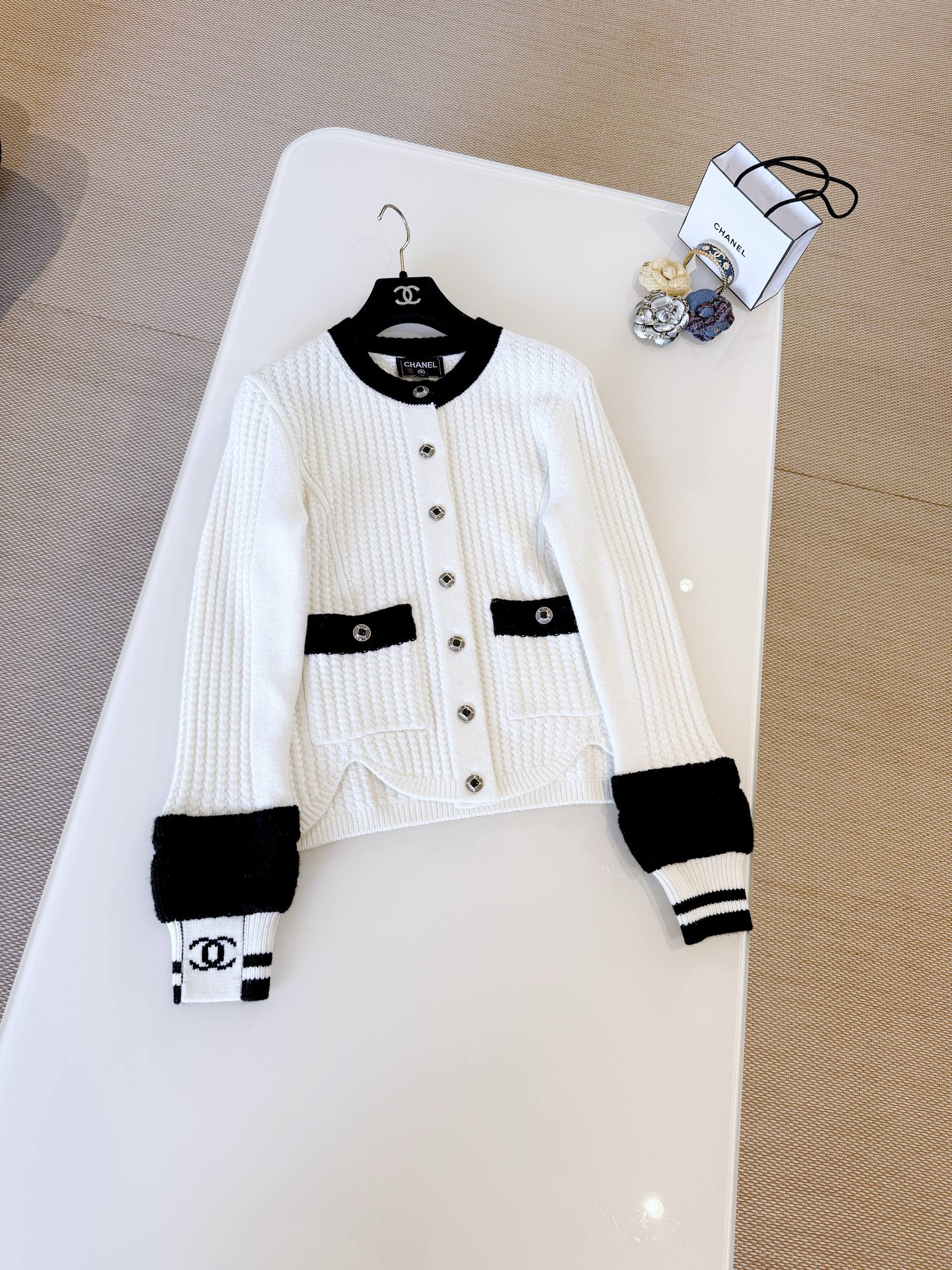 Изысканный вязаный джемпер бренда CHANEL в лаконичной чёрно‑белой гамме. Комфортный и в то же время структурированный силуэт, богатая фактура вязки и фирменные детали делают эту модель идеальным выбором для городского образа и вечерних выходов.