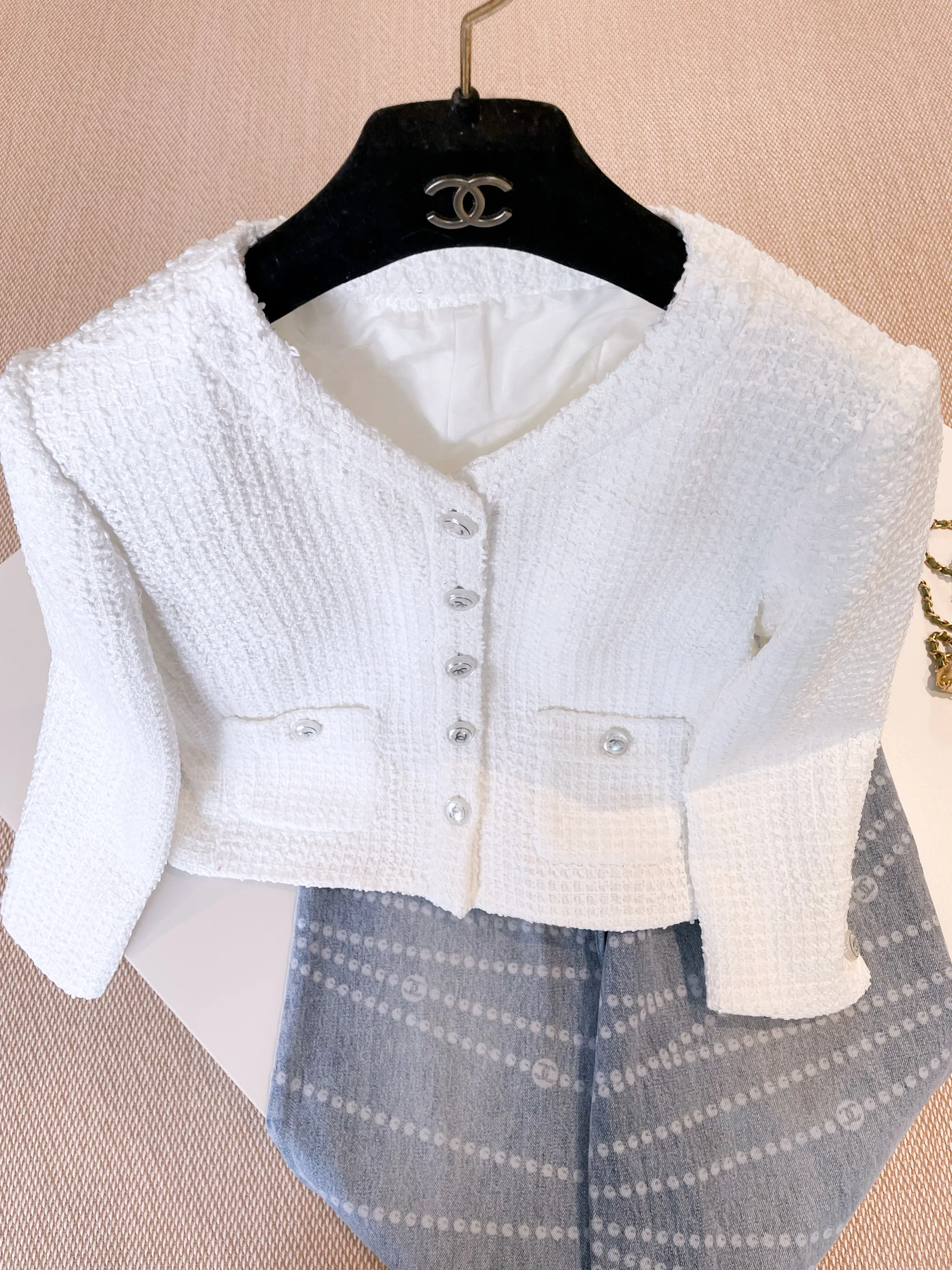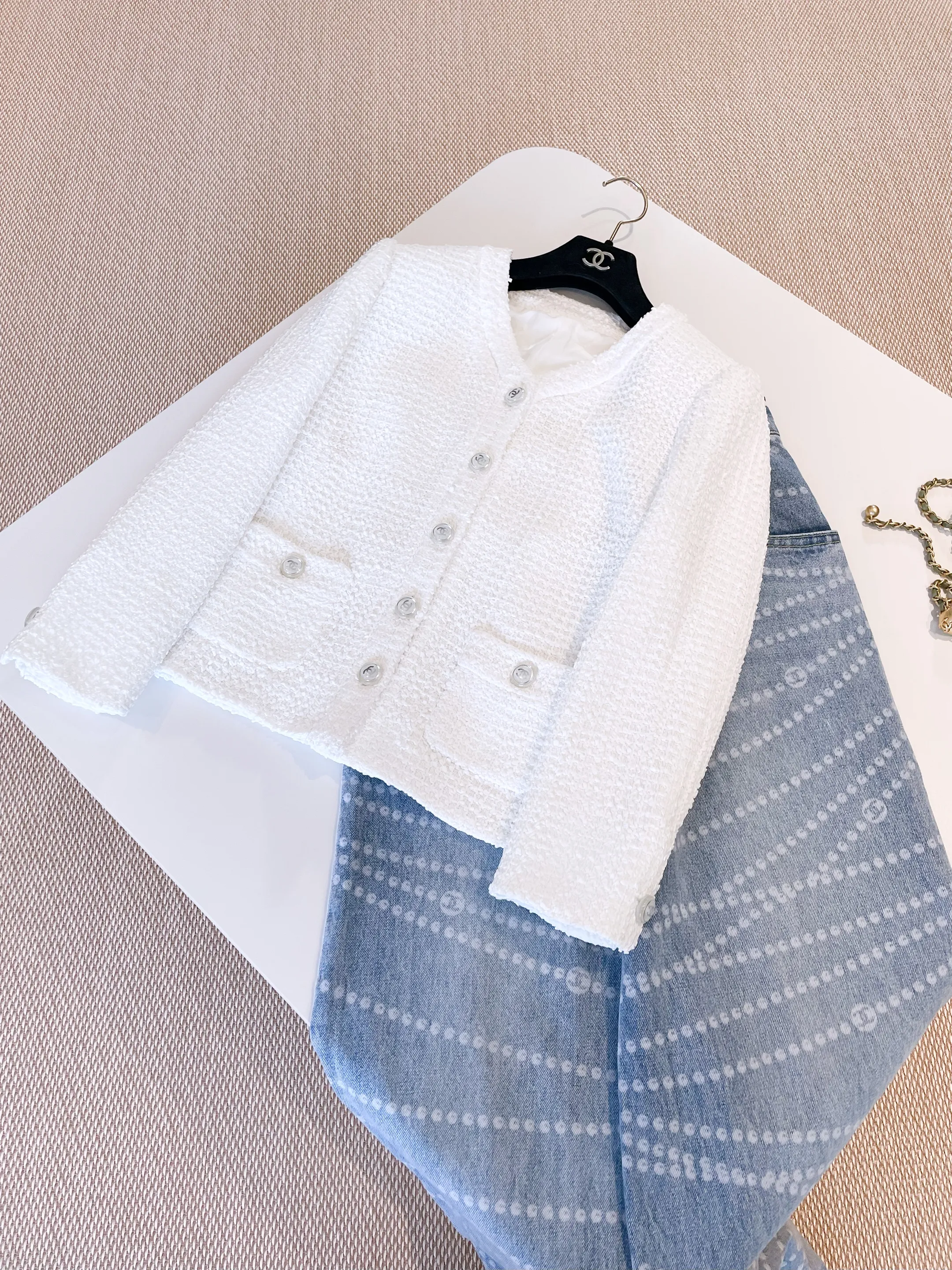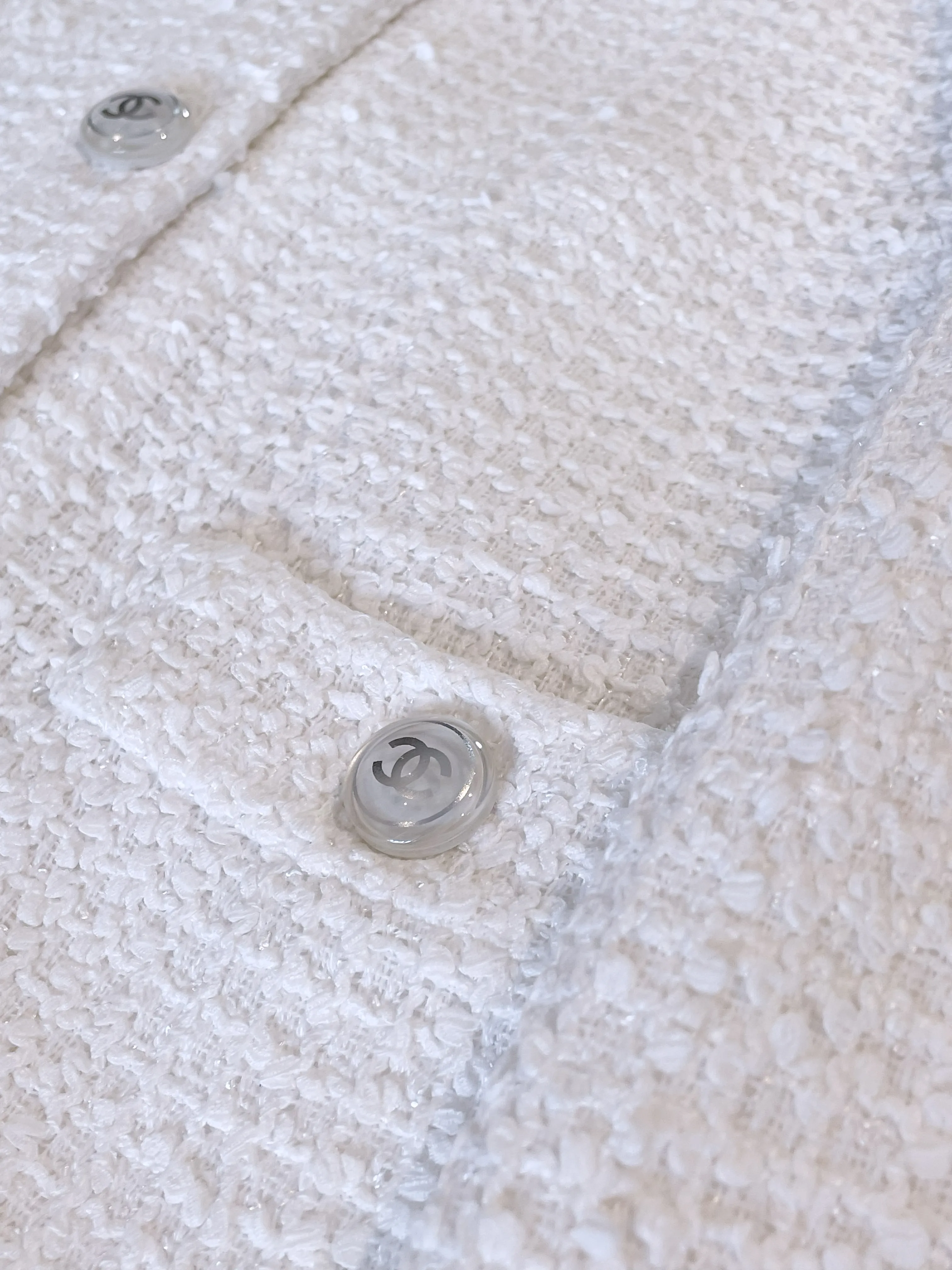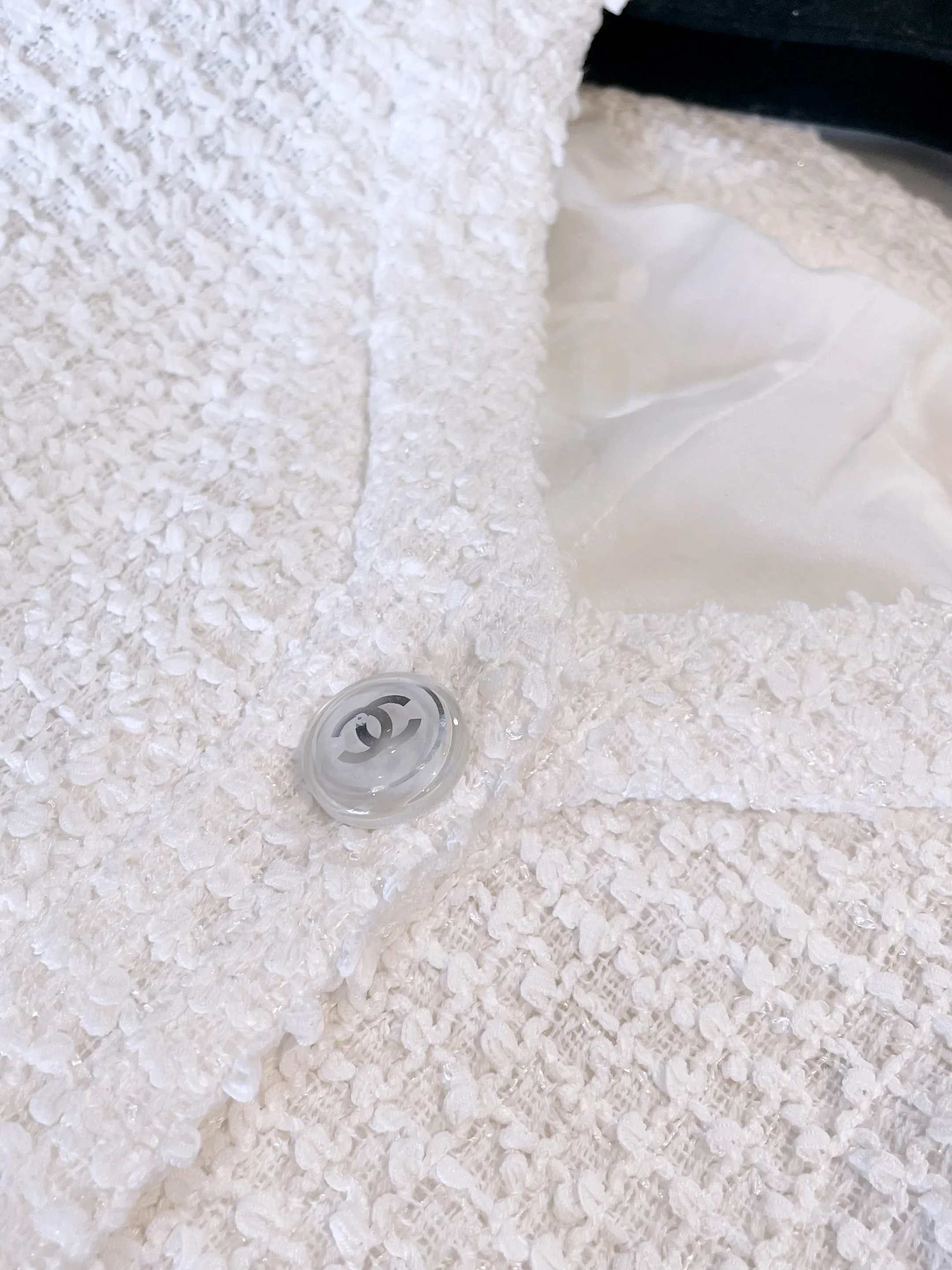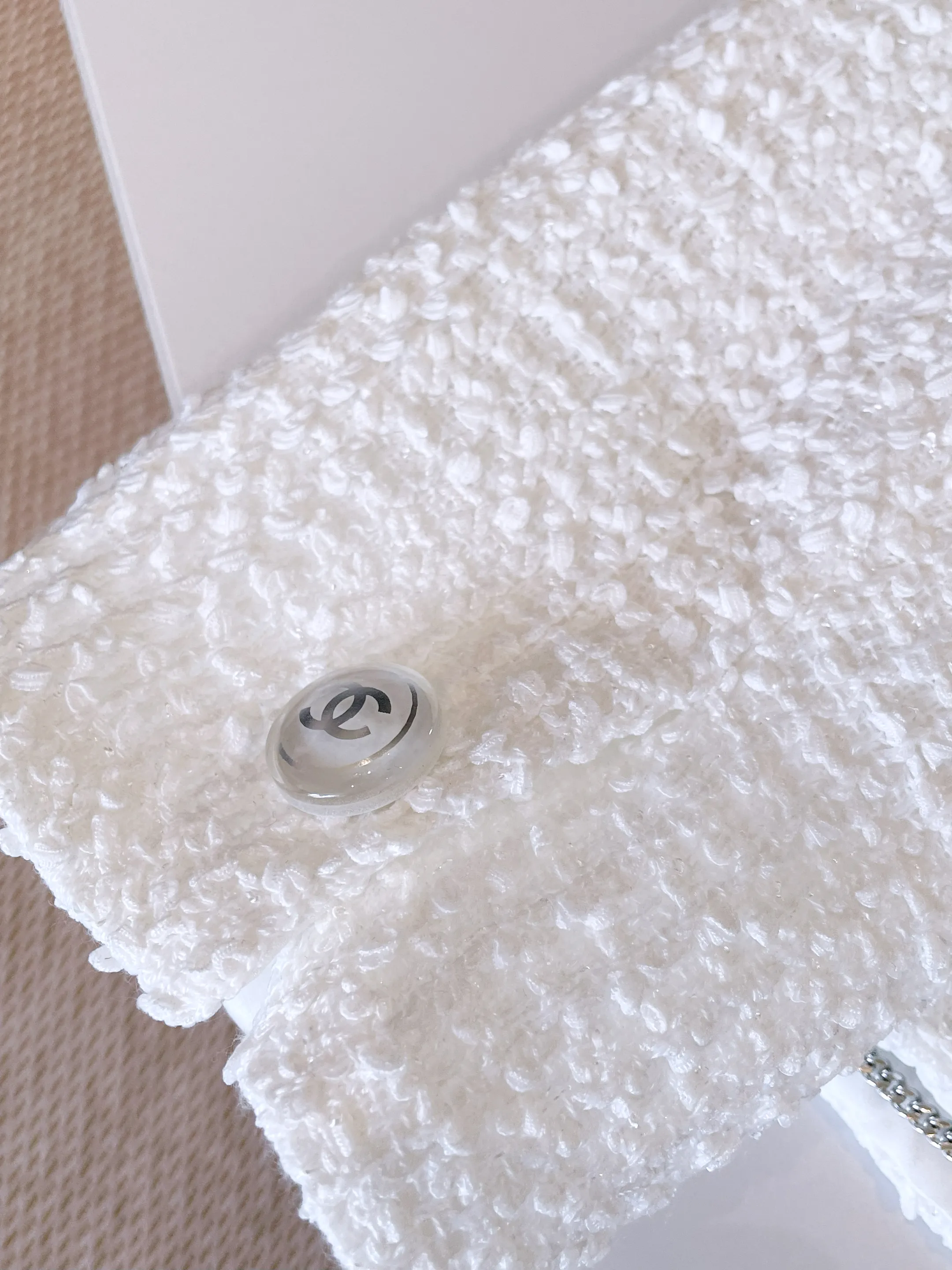 Окунитесь в мир роскоши с этим очаровательным кардиганом. Выполненный из классического твида в клетку, он сочетает в себе традиционный шарм и современные детали. Подкладка из шелковой цепочки приятно касается кожи, а двойные пуговицы в форме буквы С придают кардигану фирменный акцент. Создайте стильный образ для офиса, вечера или просто для уютных прогулок