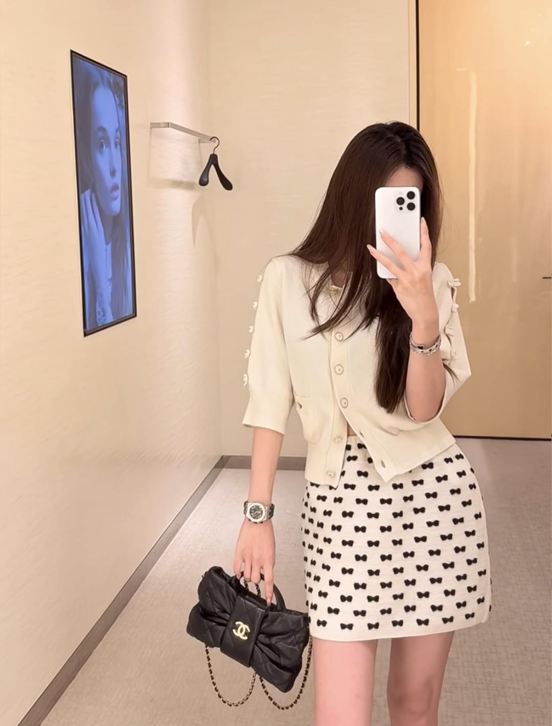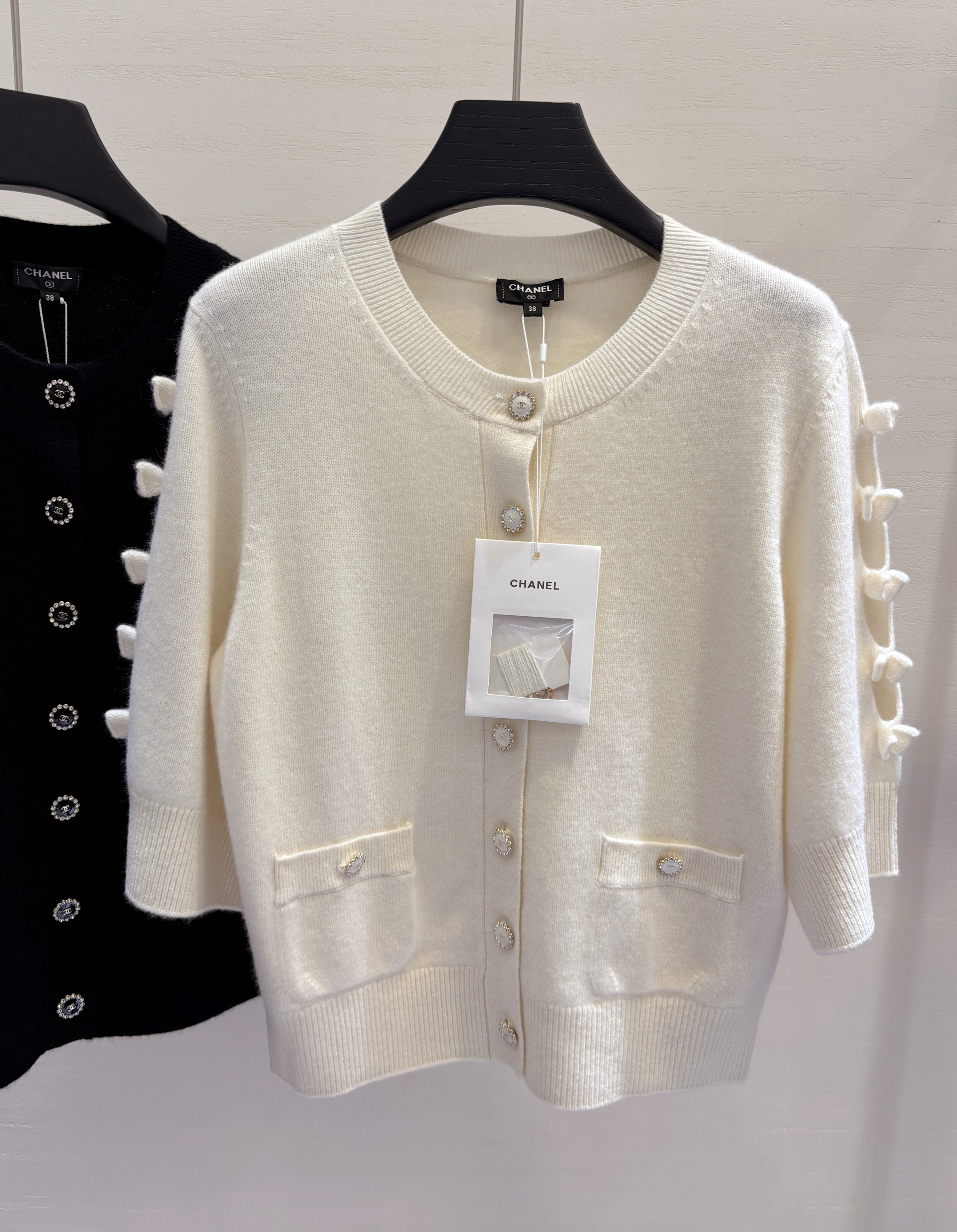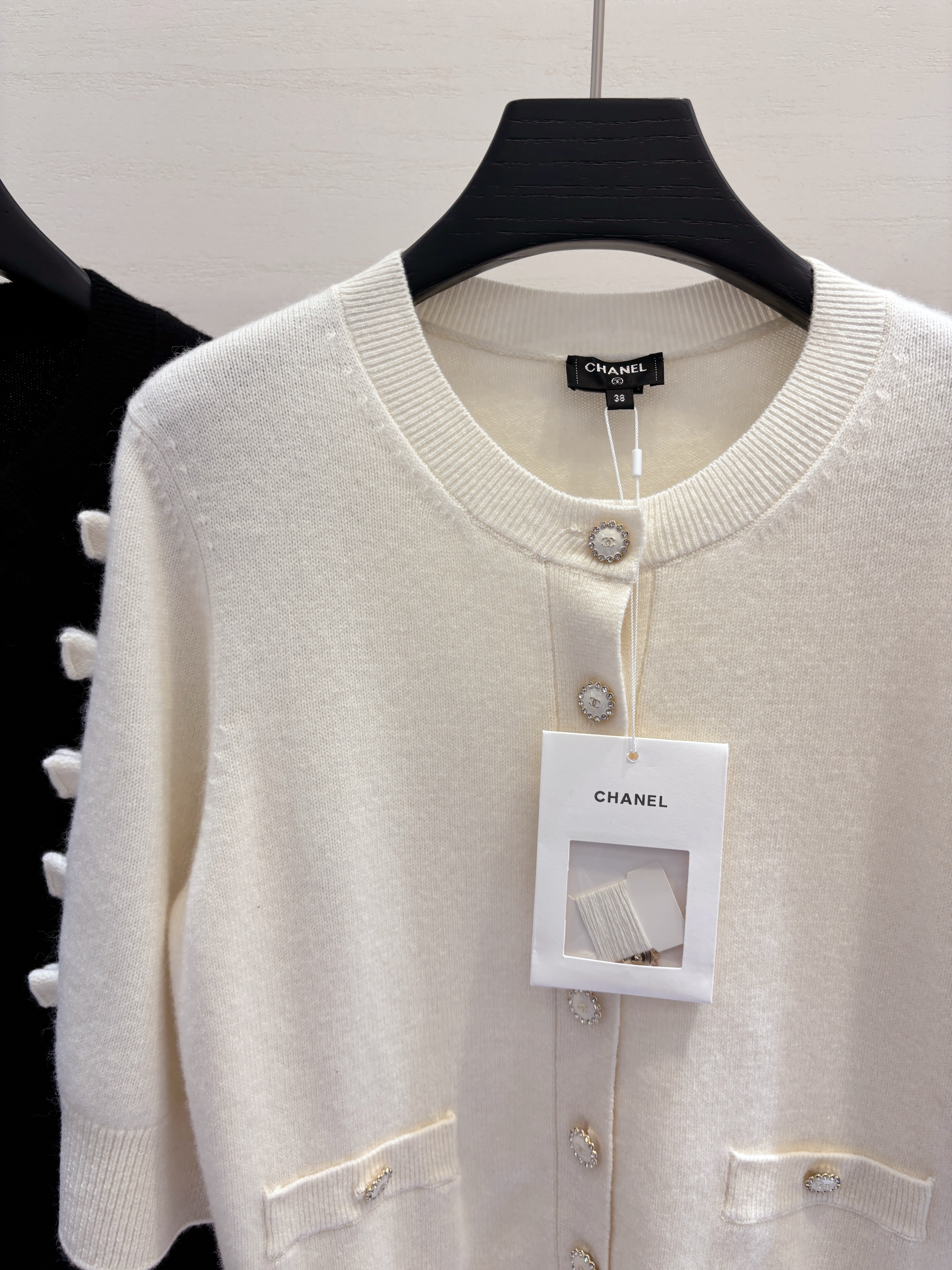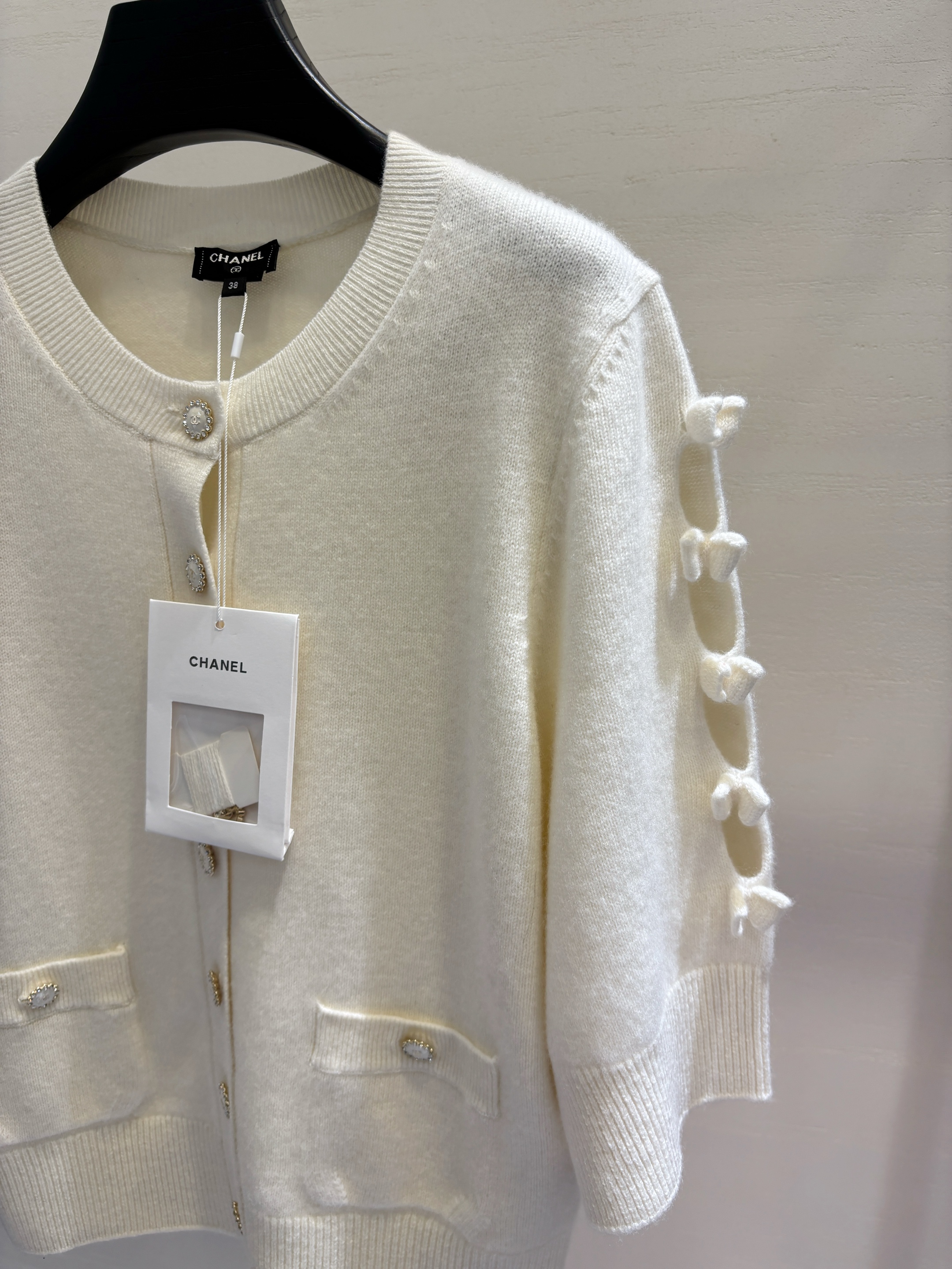 • Дизайн: Кардиган выполнен в нежном молочном оттенке и украшен фирменной фурнитурой CHANEL. Модель отличается лаконичным кроем с округлым вырезом горловины, что обеспечивает комфорт и универсальность в сочетании с разными элементами гардероба.
