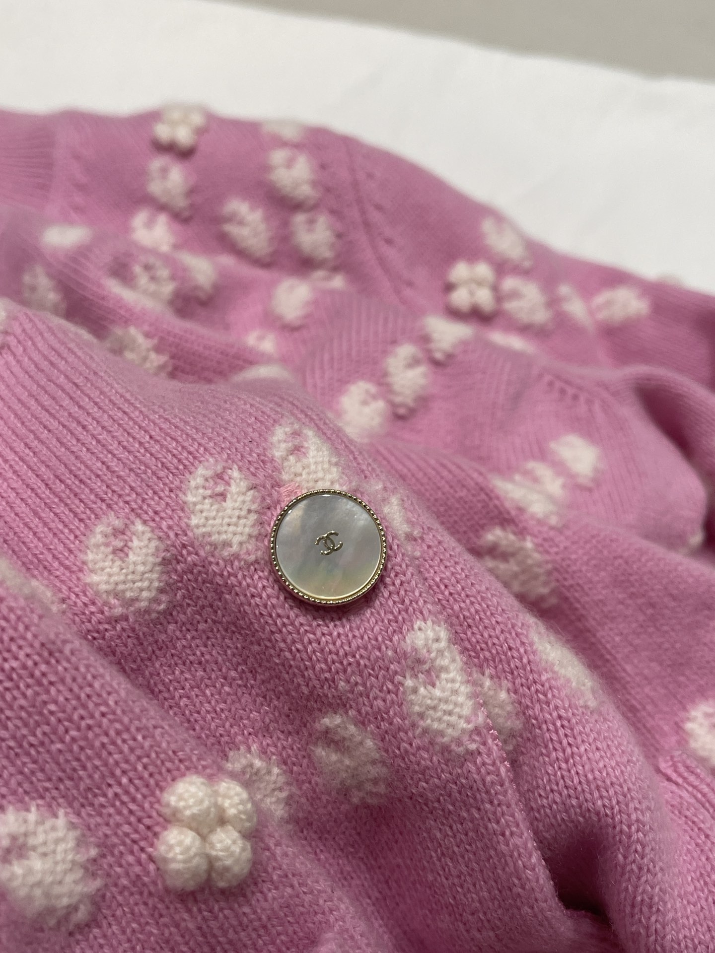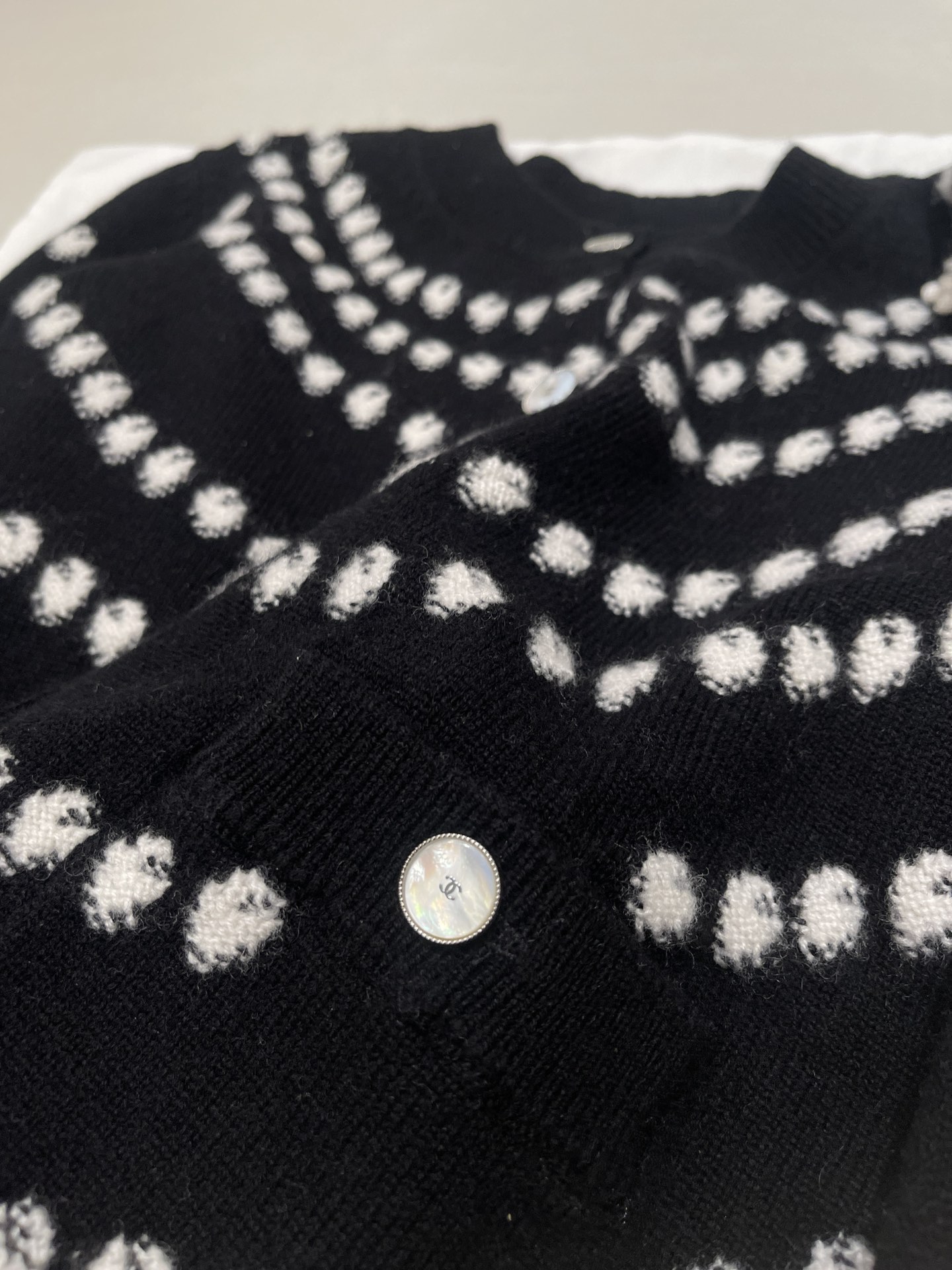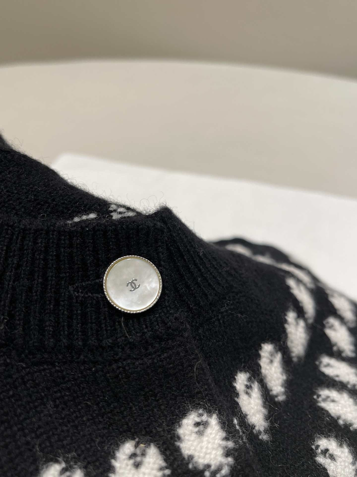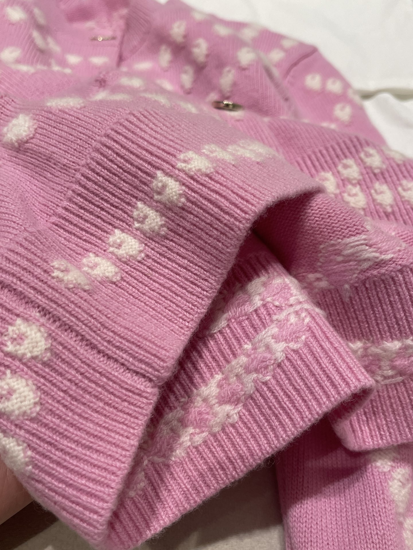 Почувствуйте роскошь и нежность с новым кашемировым кардиганом Chanel 25. Изысканная жаккардовая техника воплощает в жизнь фирменный мотив Chanel – переплетенные жемчужины и цепочки. Этот элегантный узор, словно россыпь звезд на ночном небе, привносит изысканность в каждый образ. Благодаря продуманному крою, он выгодно подчеркнет вашу фигуру, придавая стройность силуэту.