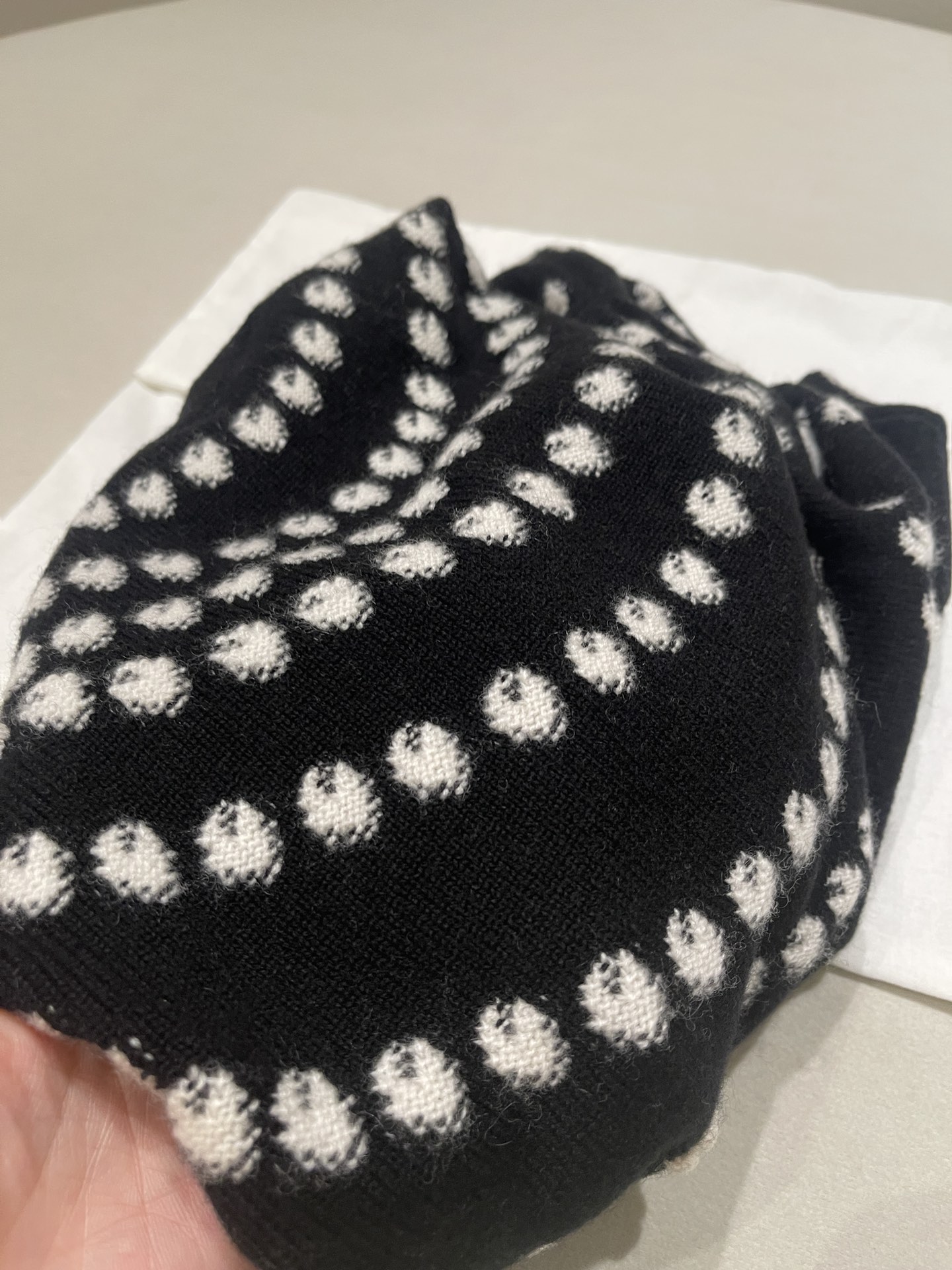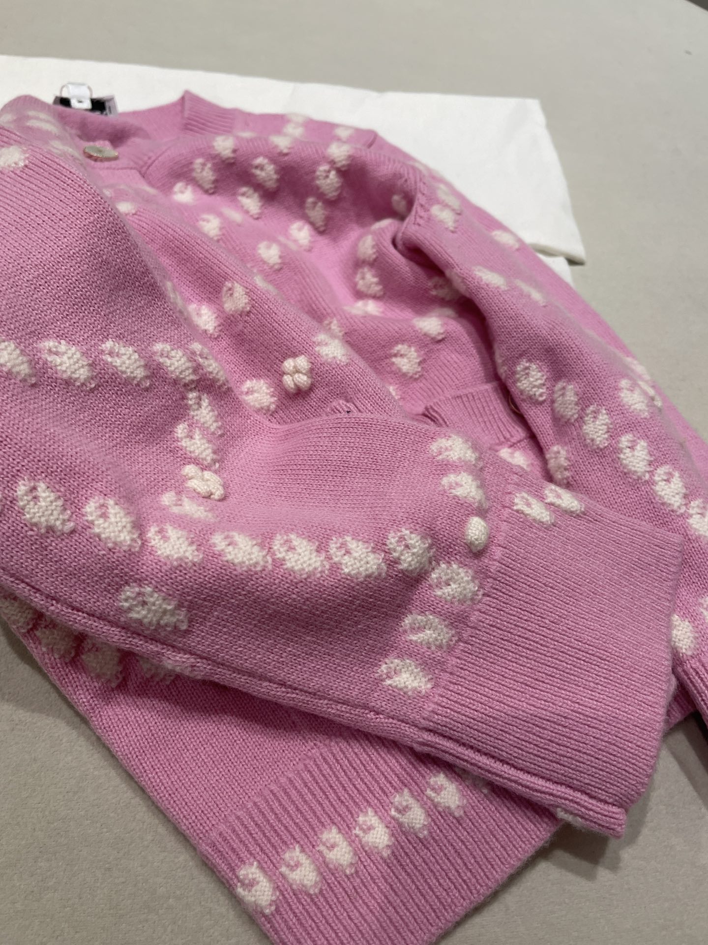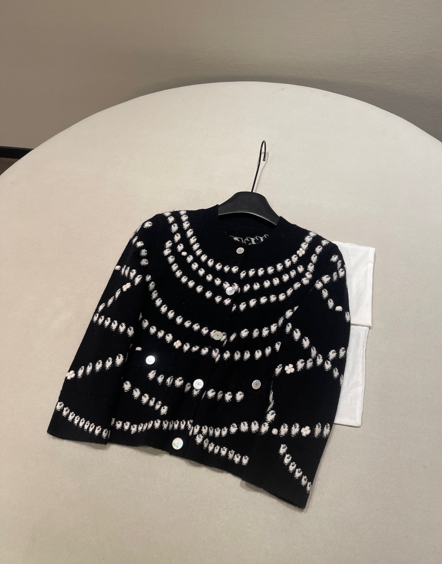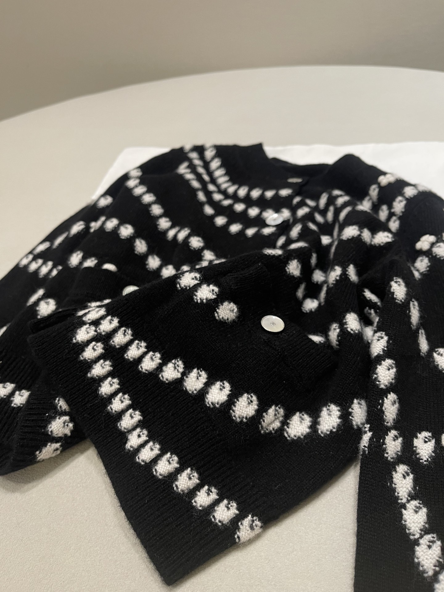 Почувствуйте роскошь и нежность с новым кашемировым кардиганом Chanel 25. Изысканная жаккардовая техника воплощает в жизнь фирменный мотив Chanel – переплетенные жемчужины и цепочки. Этот элегантный узор, словно россыпь звезд на ночном небе, привносит изысканность в каждый образ. Благодаря продуманному крою, он выгодно подчеркнет вашу фигуру, придавая стройность силуэту.