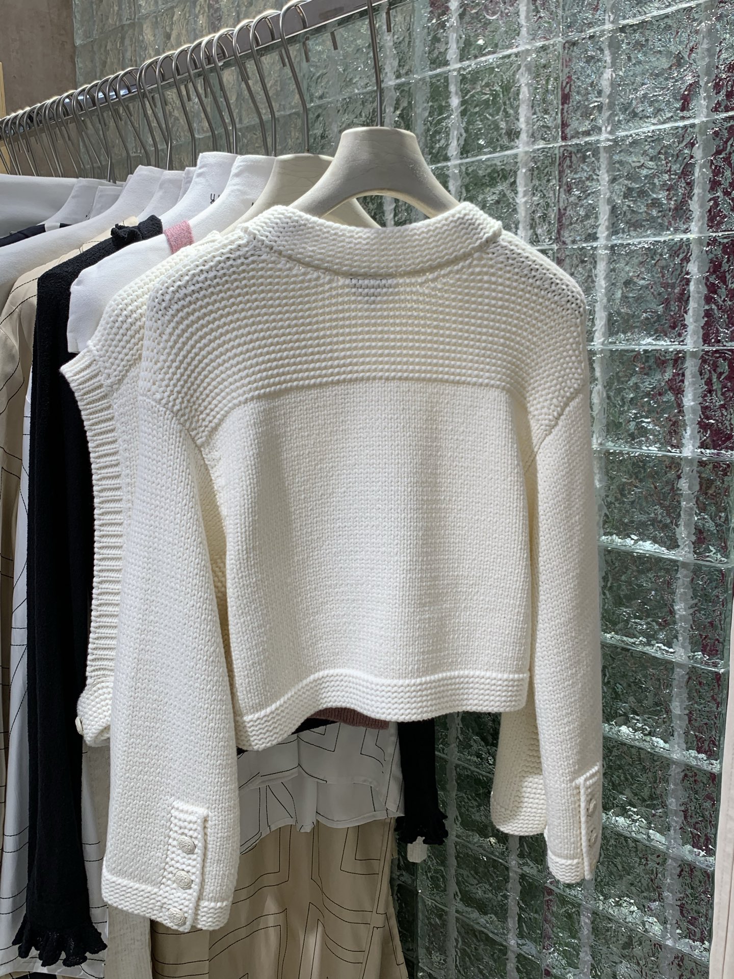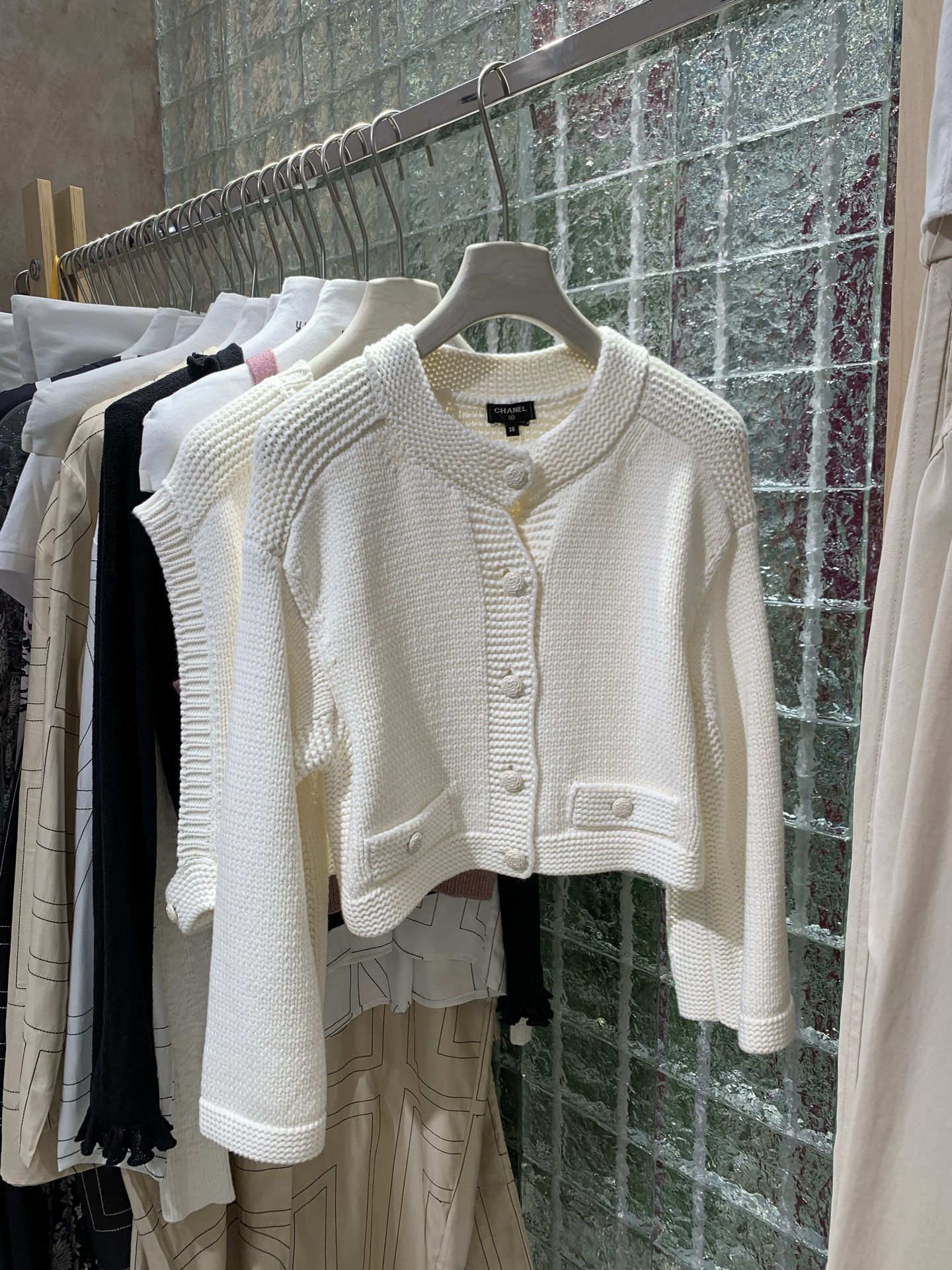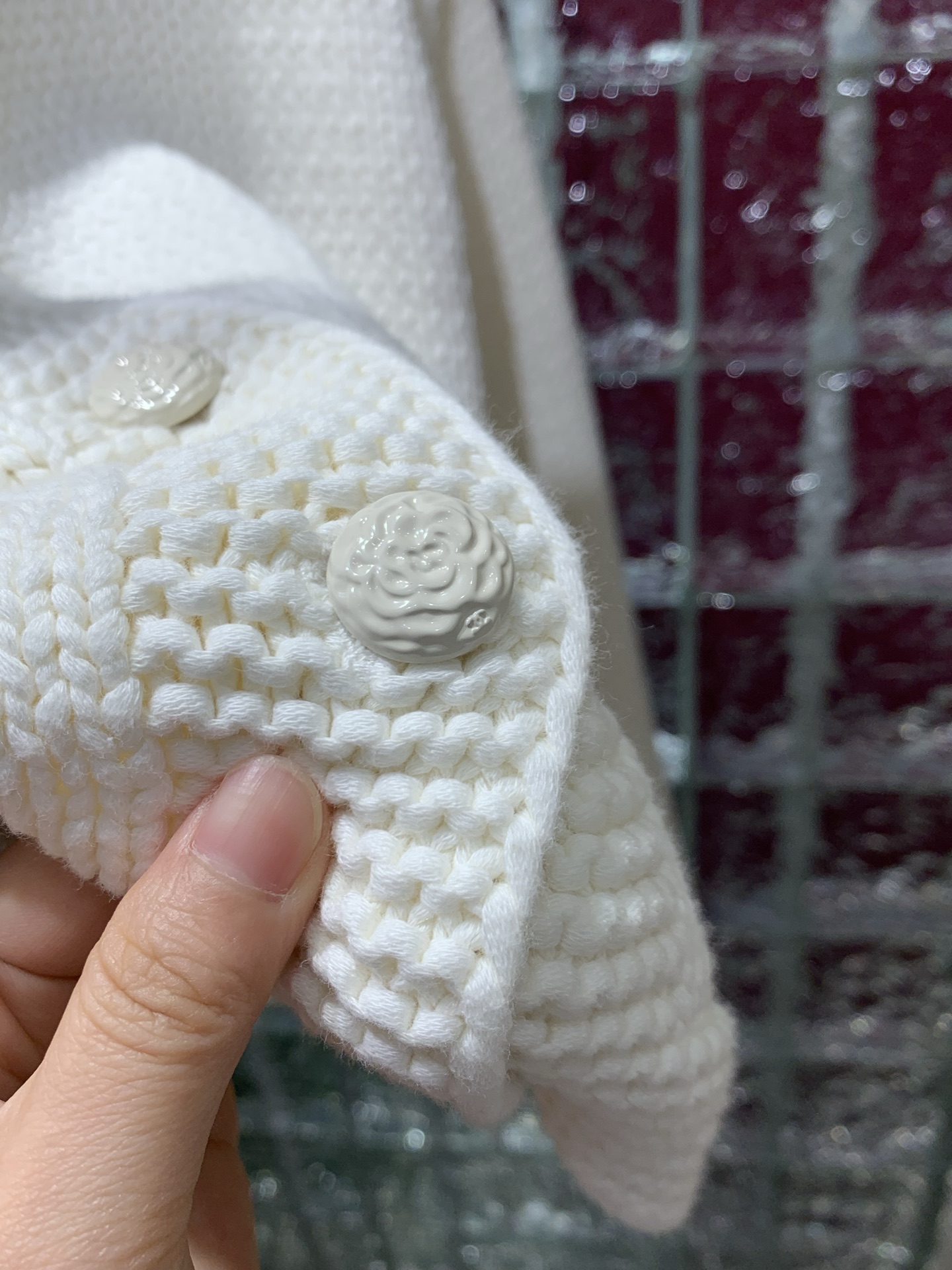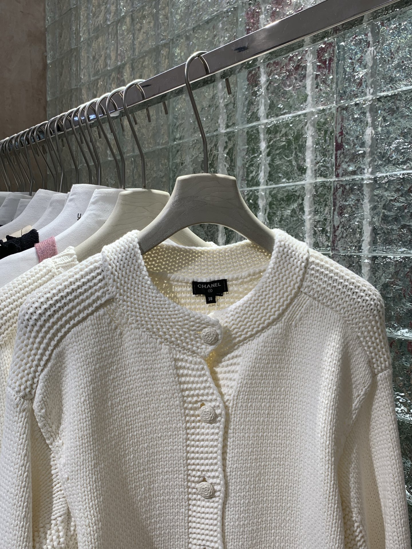 Кардиган Chanel, выполненный из хлопка и полиамида, отличается элегантным дизайном и узнаваемым стилем бренда. Модель выполнена в классическом молочно-белом цвете, имеет фактурную вязку и укороченный крой. Округлый воротник и декоративные пуговицы, оформленные в фирменном стиле, придают изделию утонченность и женственность. Кардиган дополнен двумя миниатюрными клапанами с пуговицами на передней части. Благодаря сочетанию хлопка и полиамида модель приятна на ощупь, хорошо держит форму и отлично подойдет для создания повседневных и деловых образов.
