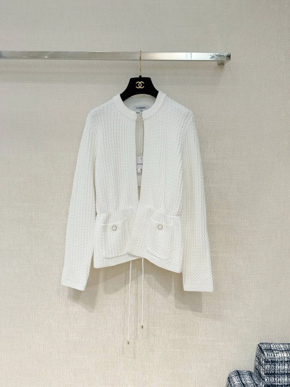 Лаконичный прямой силуэт чуть укороченной длины с округлым воротником, выполненный из плотного, но дышащего хлопкового полотна с выразительной текстурой. Перед с чистыми линиями украшен двумя накладными карманами с декоративными пуговицами, добавляющими лёгкий ретро-акцент. По низу проходит тонкий шнурок с металлическими наконечниками для точной регулировки посадки. Рукава — длиной до запястья, аккуратно обработанные края. Детали и фурнитура выдержаны в минималистичном стиле, подчёркивающем утончённость изделия.