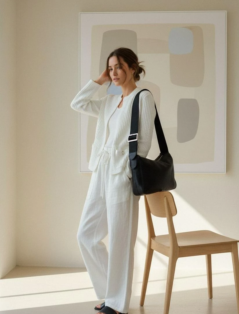 Носите с брюками со стрелками или юбкой-карандашом для офисного образа; сочетайте с джинсами и минималистичными кедами для повседневного стиля. Добавьте лаконичные золотые или жемчужные украшения, чтобы подчеркнуть элегантность деталей.