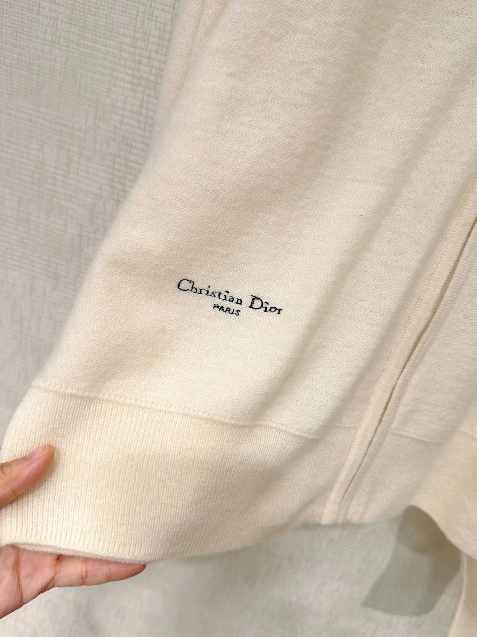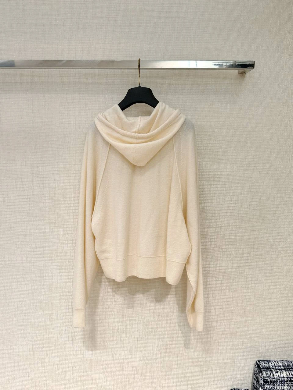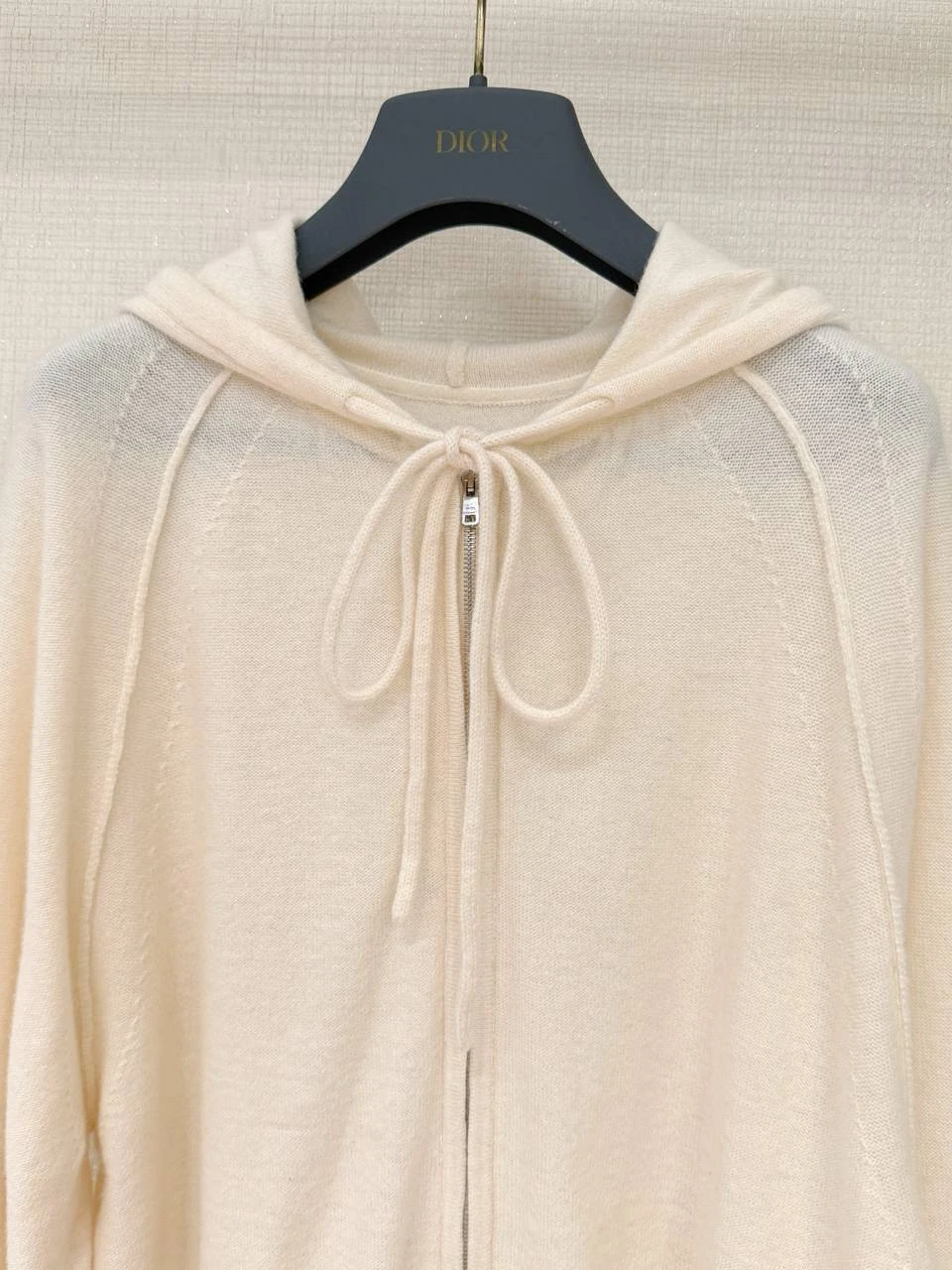 Элегантная и универсальная толстовка CHRISTIAN DIOR в мягком ажурном трикотаже светлого оттенка «ivory». Минималистичный дизайн, аккуратная молния по всей длине и тонкая шнуровка капюшона создают изысканную повседневную вещь, которую легко сочетать с базовым гардеробом.