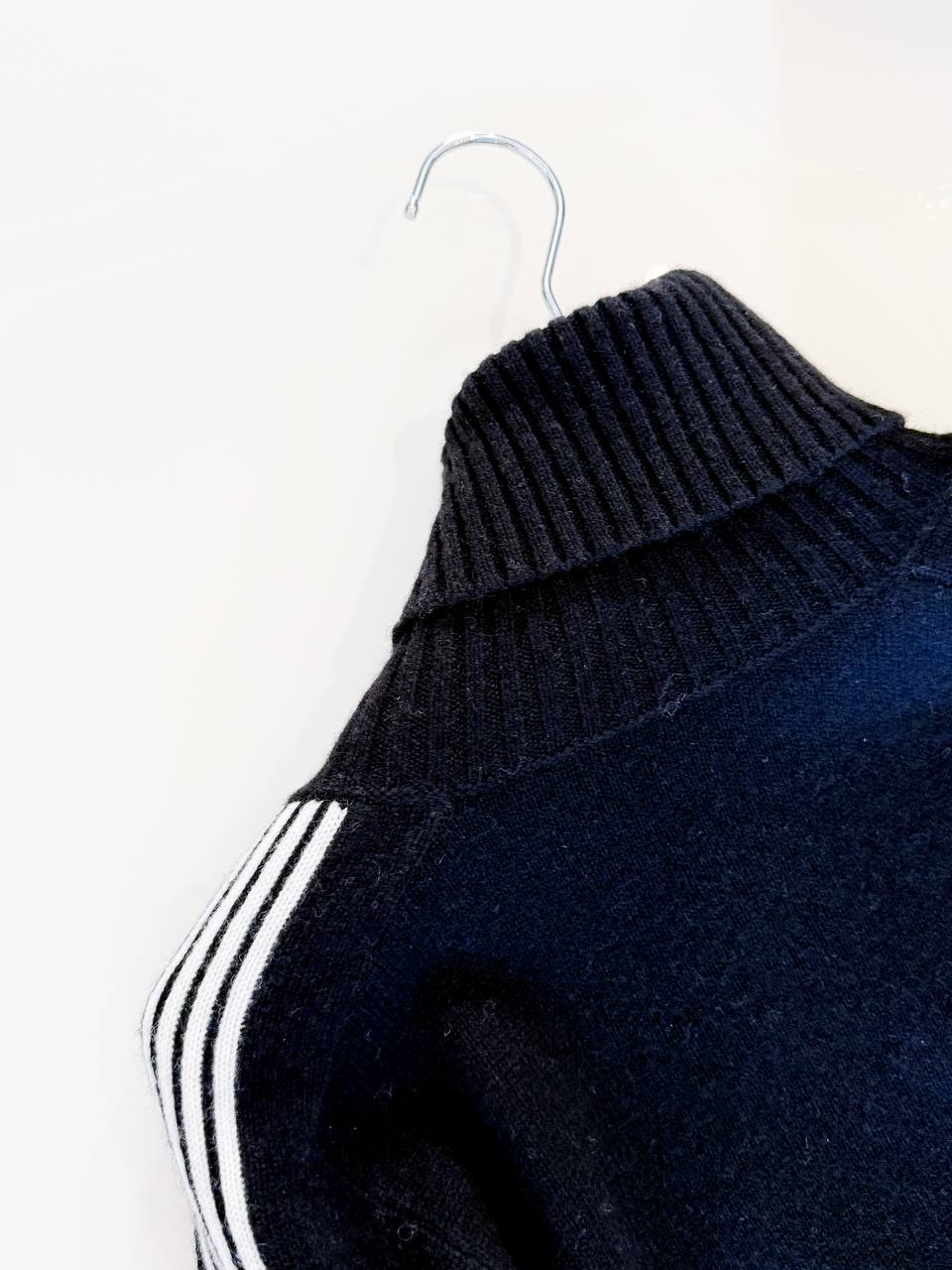 • Воротник: высокий воротник‑стойка с плотной ребристой вязкой, придающей структуру и дополнительную защиту от холода.
