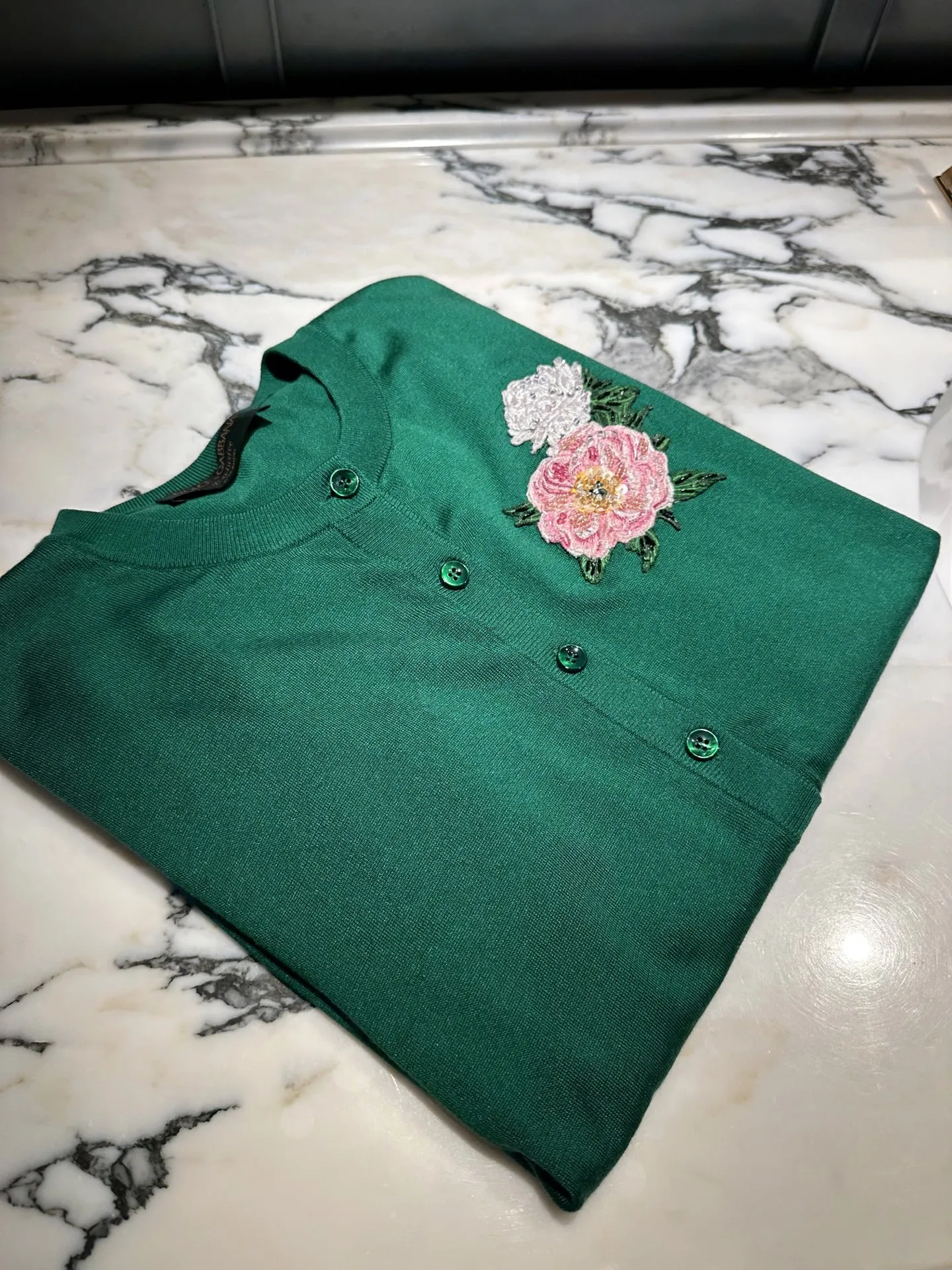 Погрузитесь в мир утонченной элегантности с этим восхитительным кардиганом DG, созданным из нежной шелковой пряжи.