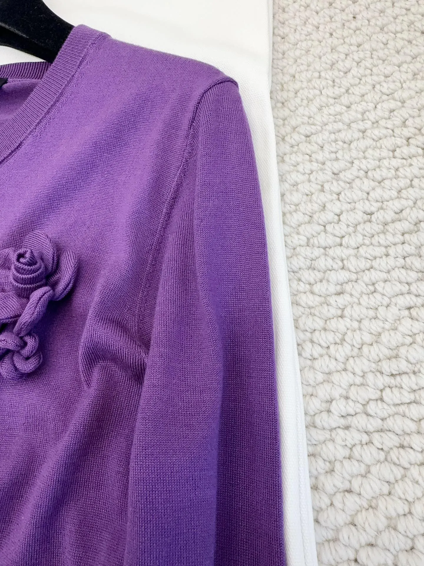 Трехмерные цветочные украшения не только придают ему выразительности, но и делают его уникальным, что идеально соответствует духу моды этого бренда. Таинственный фиолетовый цвет открывает широкие возможности для комбинации с другими элементами гардероба, позволяя создавать как утонченные, так и более смелые образы.