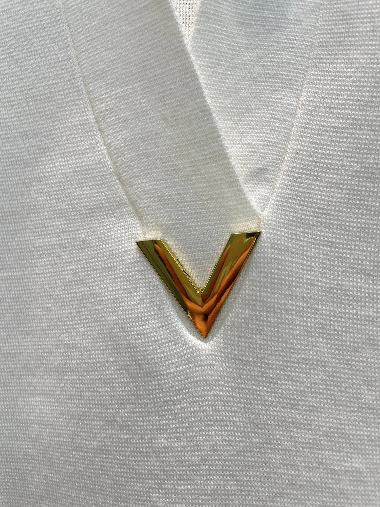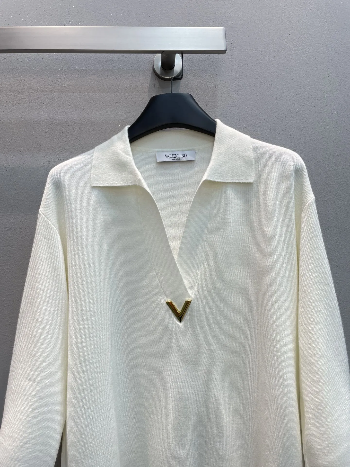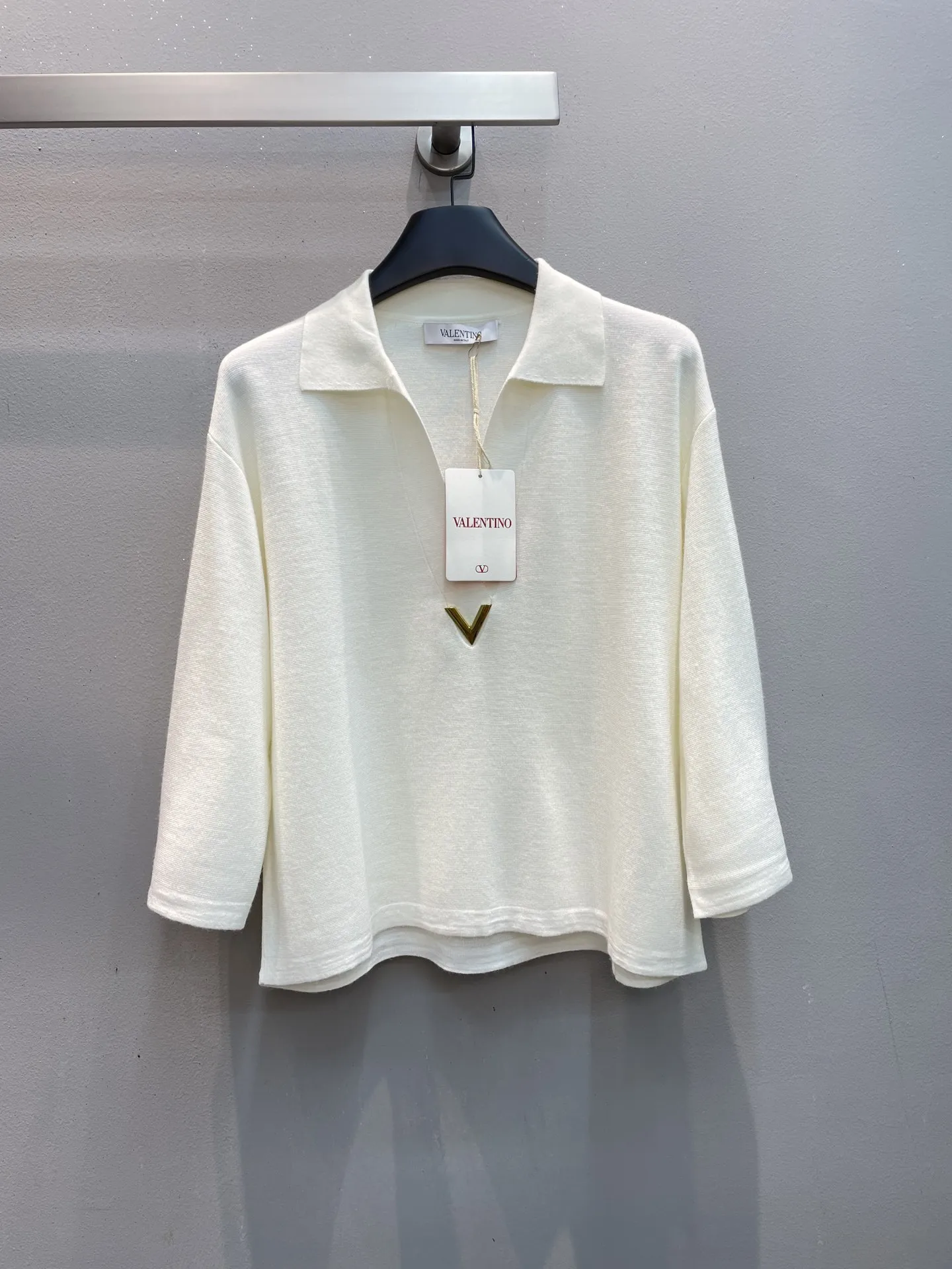 VALENTINO представляет новый женский пуловер - воплощение элегантной простоты. Изготовленный из 100% шерсти камвольной пряжи, он отличается минималистичным дизайном, чистыми линиями и V-образной золотой пряжкой, придающей изысканность кофте. Тонкая вязка, выполненная импортными ультратонкими спицами, создает плотную и стильную текстуру. Пуловер комфортен в носке, идеально садится по фигуре и подчеркивает женственность.