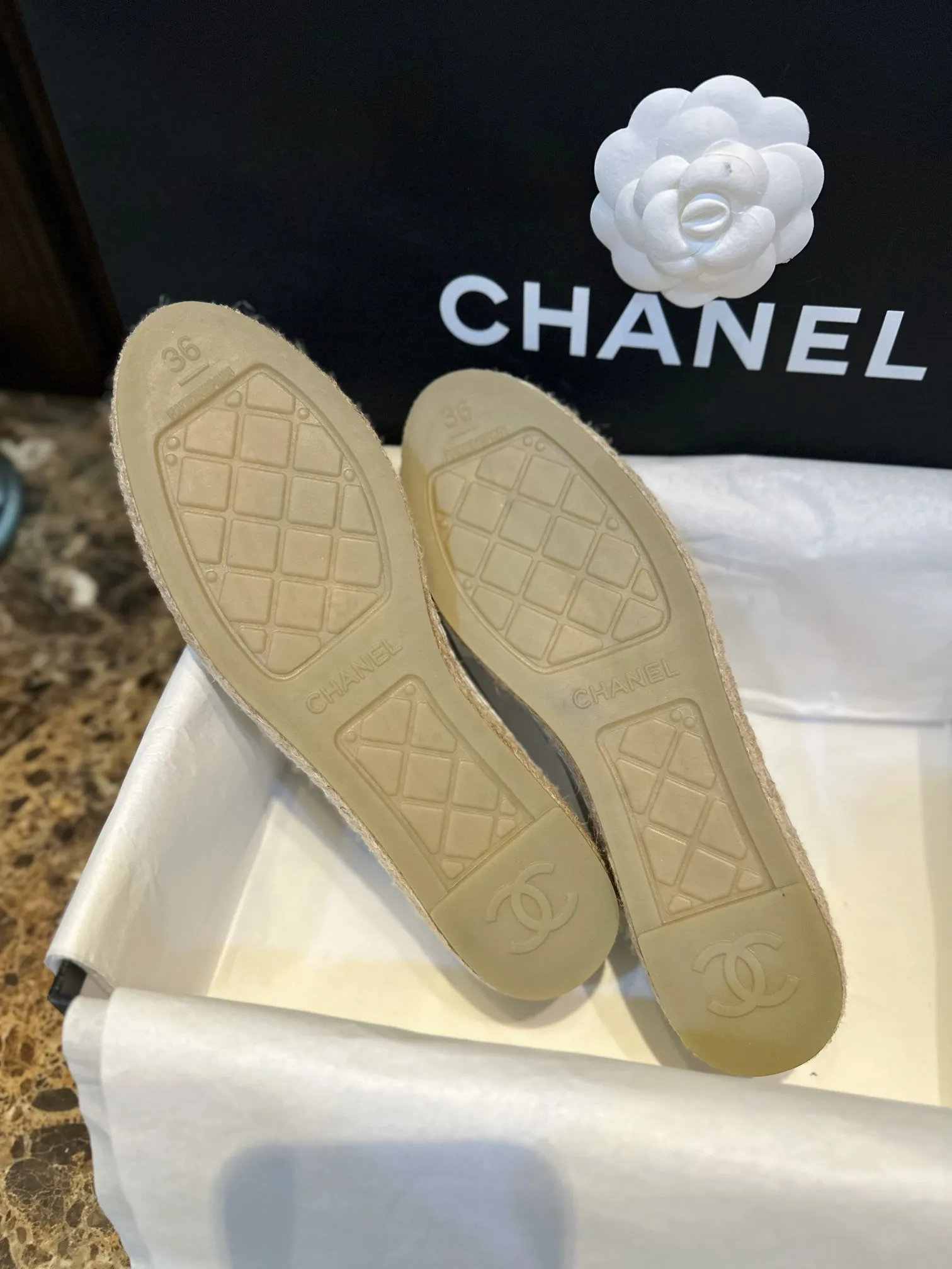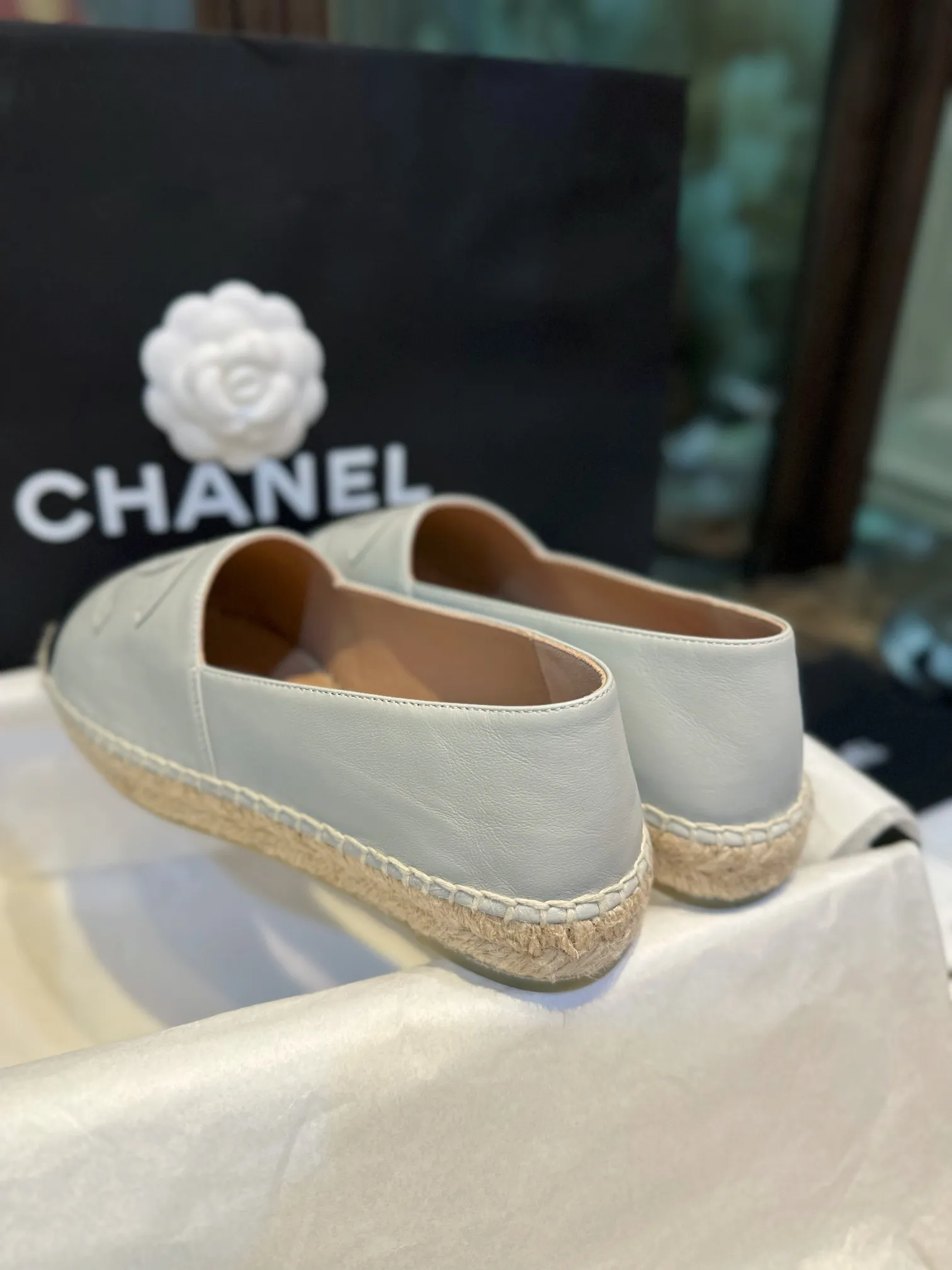 Эспадрильи Chanel из овчины цвета "дымка" - это воплощение роскошного комфорта и безупречного стиля. Они станут вашим любимым аксессуаром, который вы будете носить с удовольствием каждый день. Исключительно мягкая и теплая овчина премиального качества обеспечивает непревзойденный комфорт при носке. Эспадрильи идеально сочетаются с любым образом, от джинсов и шорт до легких платьев и юбок. Они станут прекрасным дополнением к вашему гардеробу, добавляя нотку парижского шика и непринужденной элегантности.