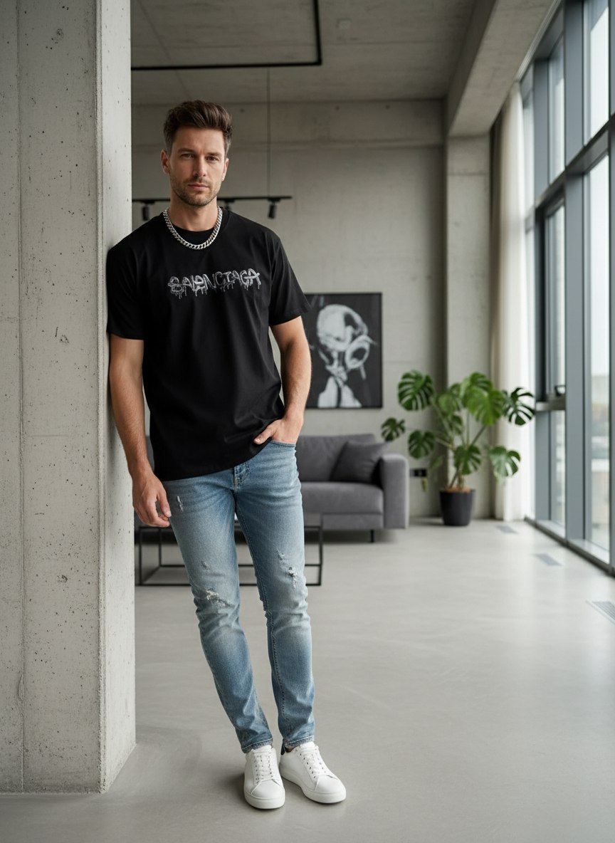 Футболка Balenciaga — это стильный и универсальный предмет одежды, который идеально подходит для повседневной носки. Модель выполнена из качественных материалов, что обеспечивает её комфорт и долговечность. Простой, но выразительный дизайн с логотипом бренда делает эту футболку особенной, упоминая о её принадлежности бренду.