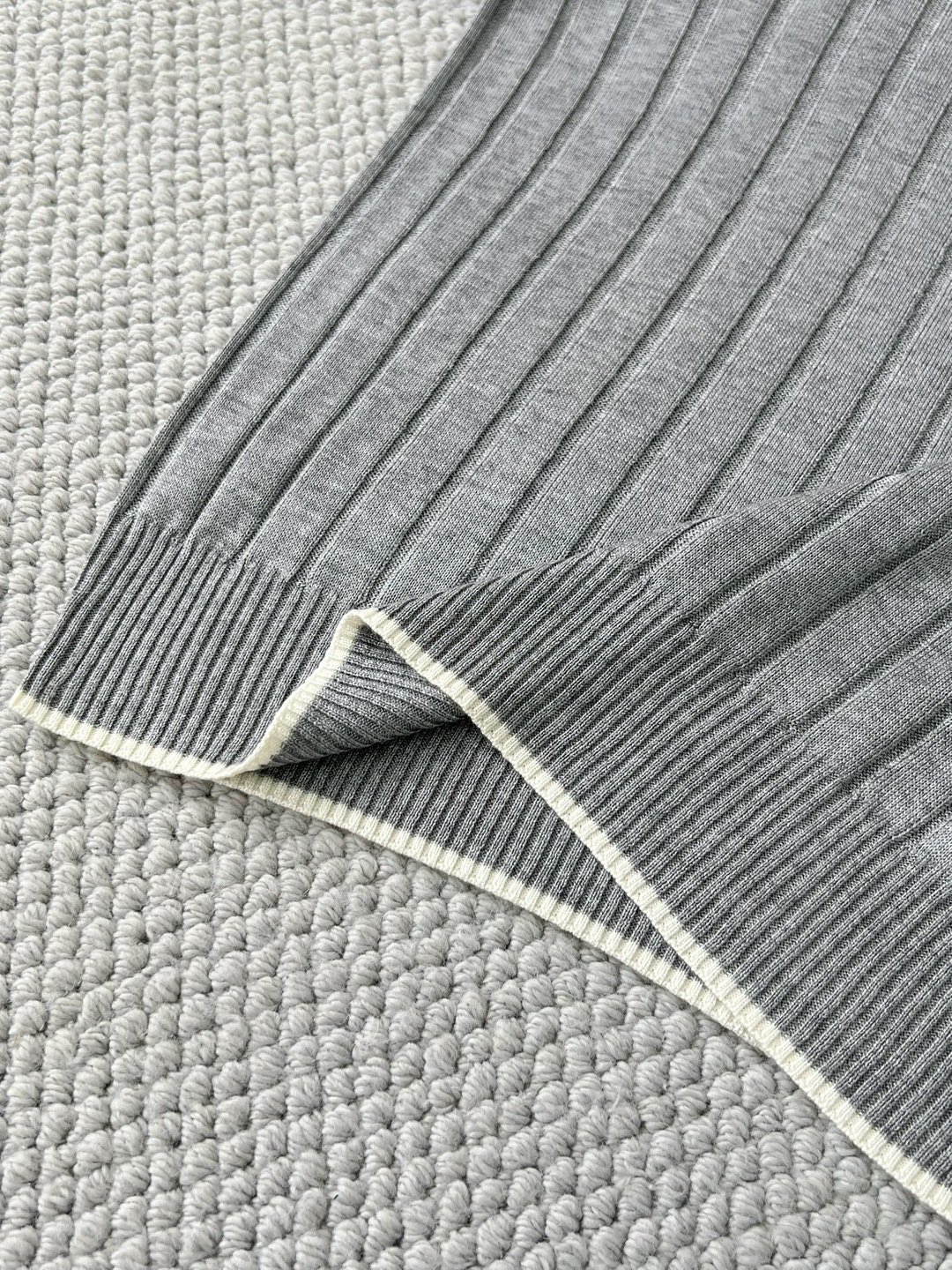 Вертикальный рельефный узор: Уникальный вертикальный рельефный узор не только придаёт изделию текстуру, но и визуально стройнит фигуру, добавляя интересные акценты к классическому крою.