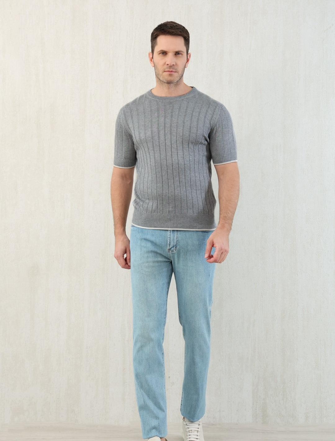Элегантный цвет: Футболка представлена в изысканном сером цвете, который легко комбинируется с другими предметами гардероба. Этот нейтральный оттенок добавляет универсальности и позволяет создать как повседневные, так и более формальные образы.