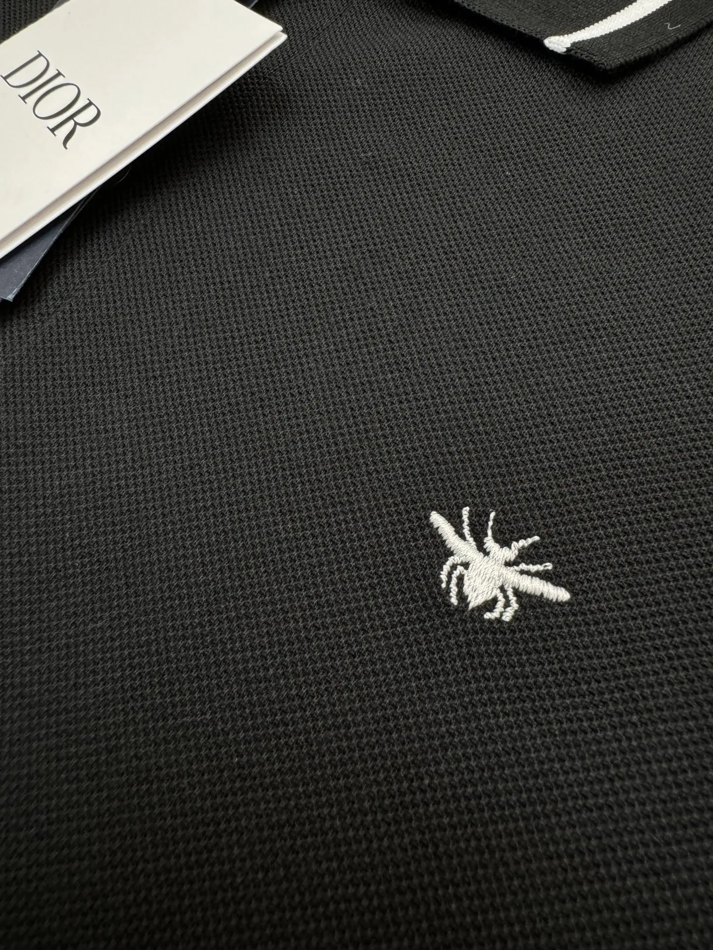 Представляем вам новую белую футболку-поло, воплощающую утонченную элегантность. Выполненная из премиального хлопкового пике, она отличается комфортом и долговечностью. Изысканный вышитый логотип пчелы на груди придает ей узнаваемый шарм Dior. Черные полоски на воротнике и манжетах добавляют стильный контраст. Завершают образ перламутровые пуговицы с фирменной гравировкой Dior.
