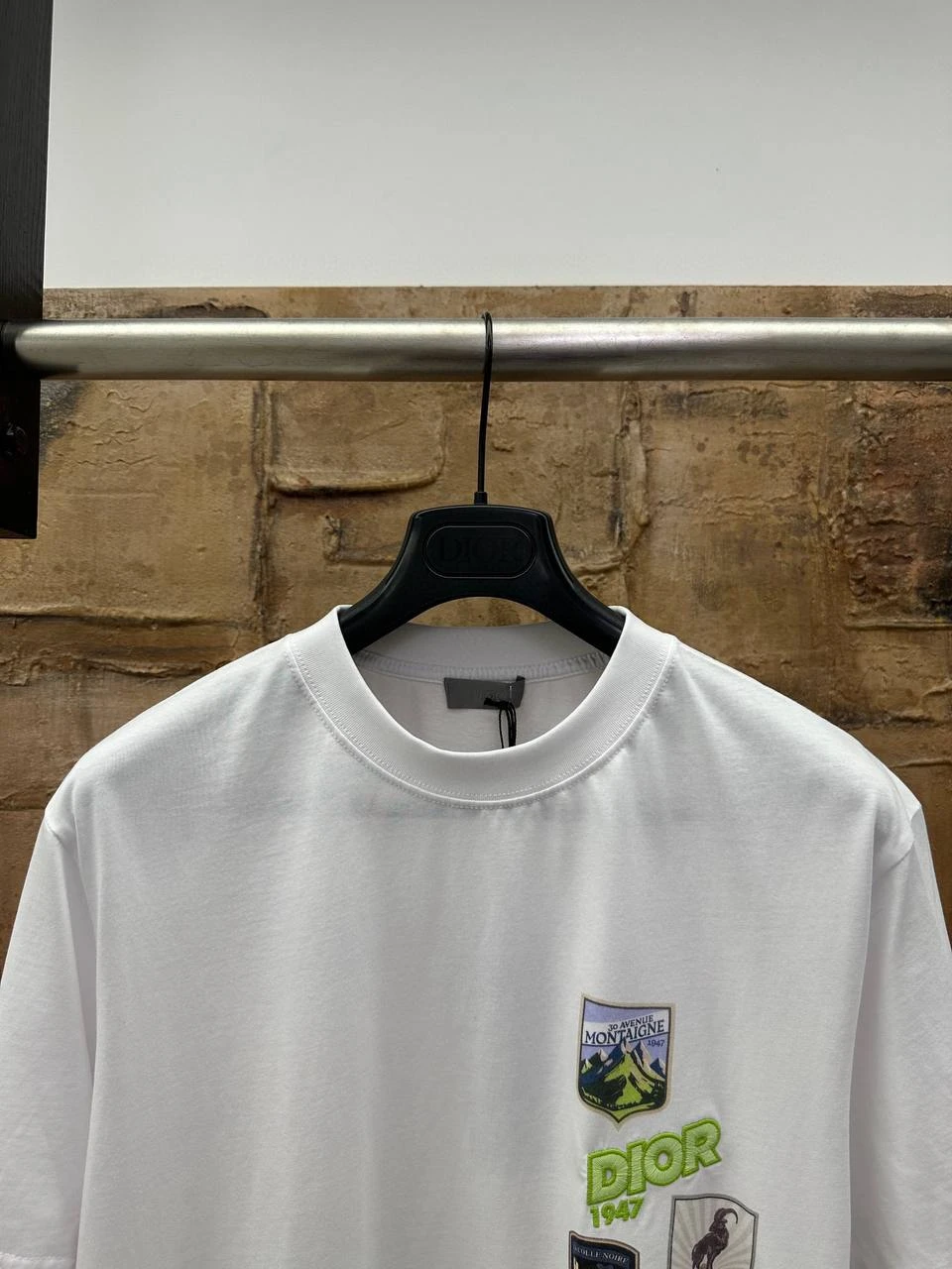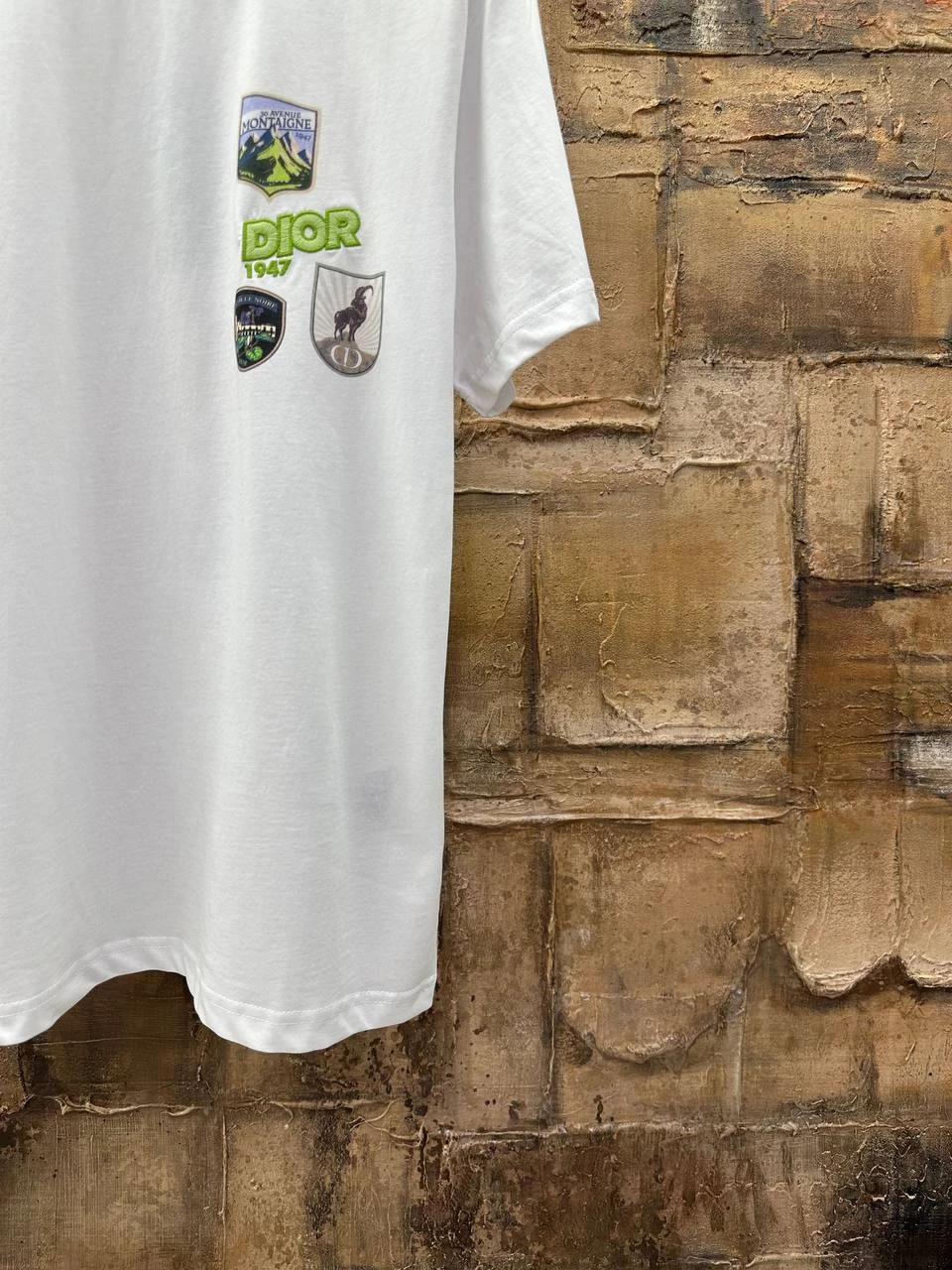 Футболка имеет эластичный округлый воротник, который хорошо держит форму. Плечи слегка спущенные для расслабленного силуэта. На спинке и по низу футболка не имеет дополнительных деталей, что подчеркивает её минималистичный стиль. Эта футболка станет идеальным выбором для тех, кто ценит сочетание классики и современного дизайна, стремится подчеркнуть индивидуальность в повседневном гардеробе с узнаваемым почерком Christian Dior.
