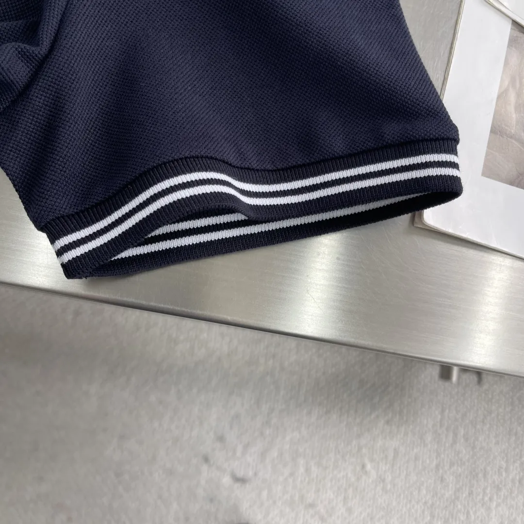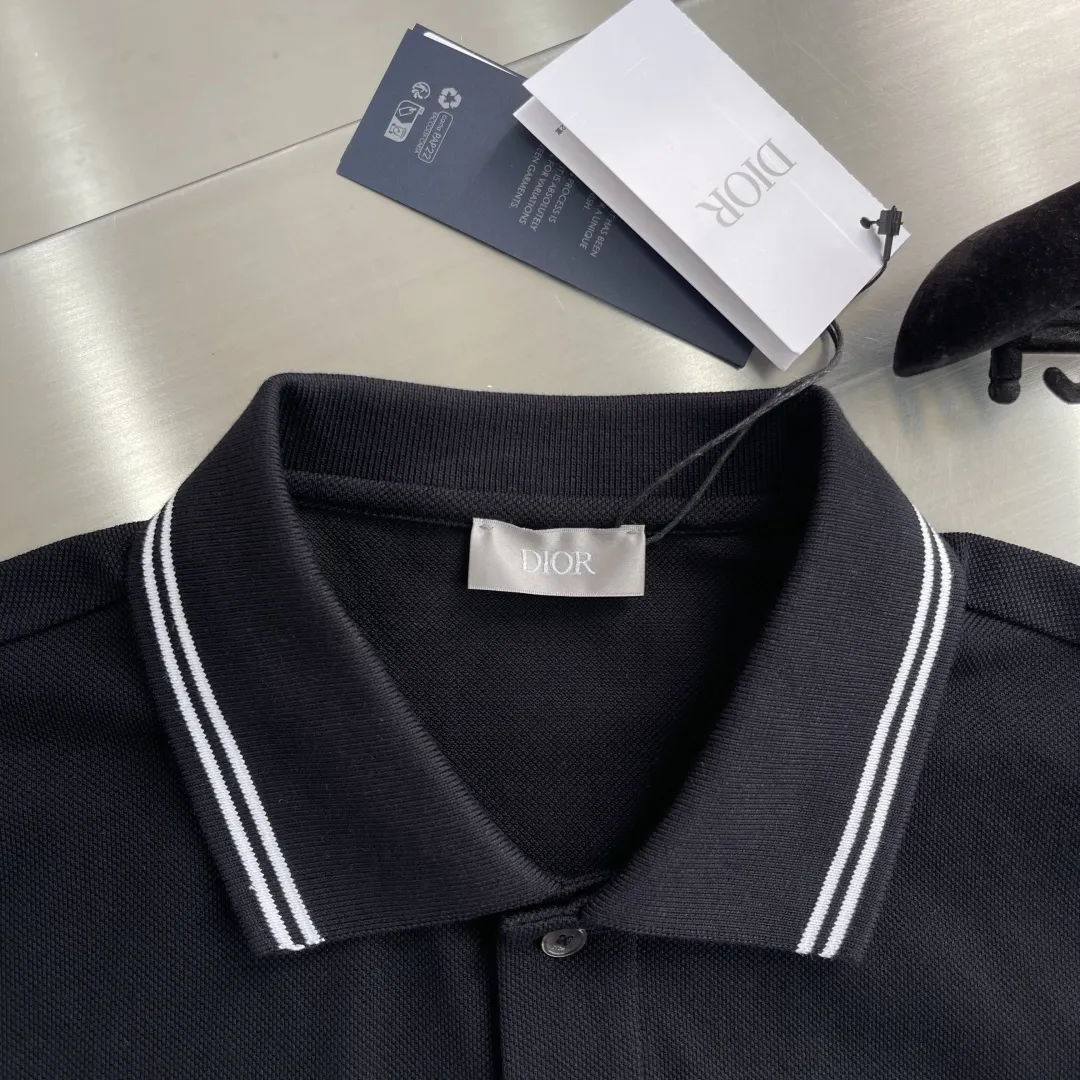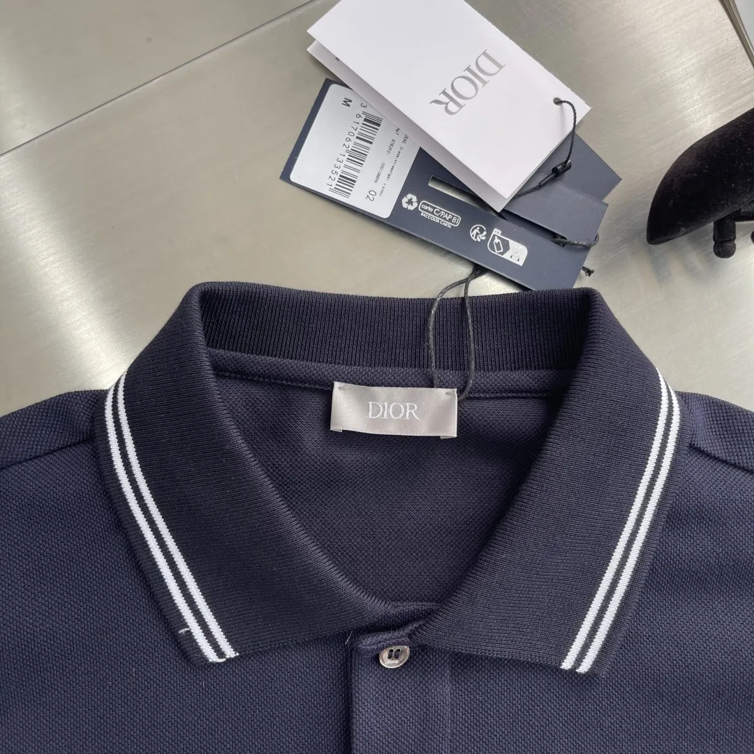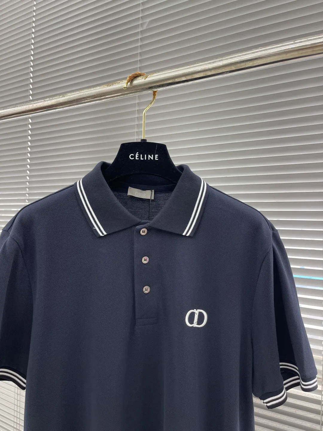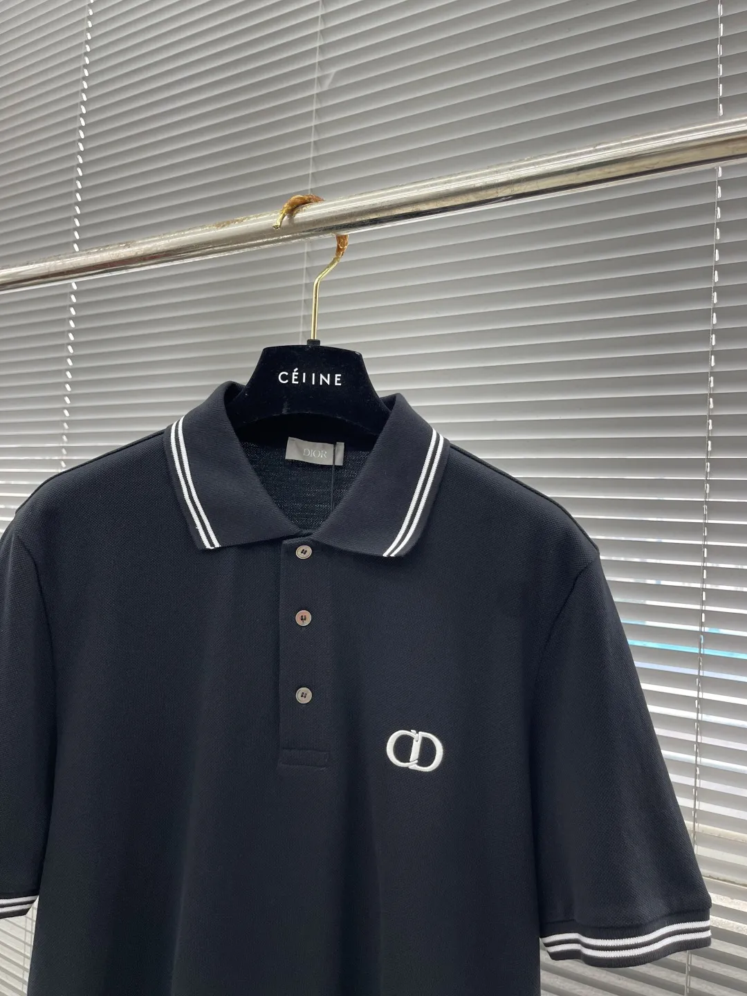 Элегантная мужская футболка-поло от Dior, выполненная из высококачественного хлопка. Модель украшена фирменной вышивкой с логотипом Dior на груди. Воротник и рукава оформлены контрастными полосками, что придаёт изделию стильный и современный вид. Идеальный выбор для создания как повседневных, так и более элегантных образов.