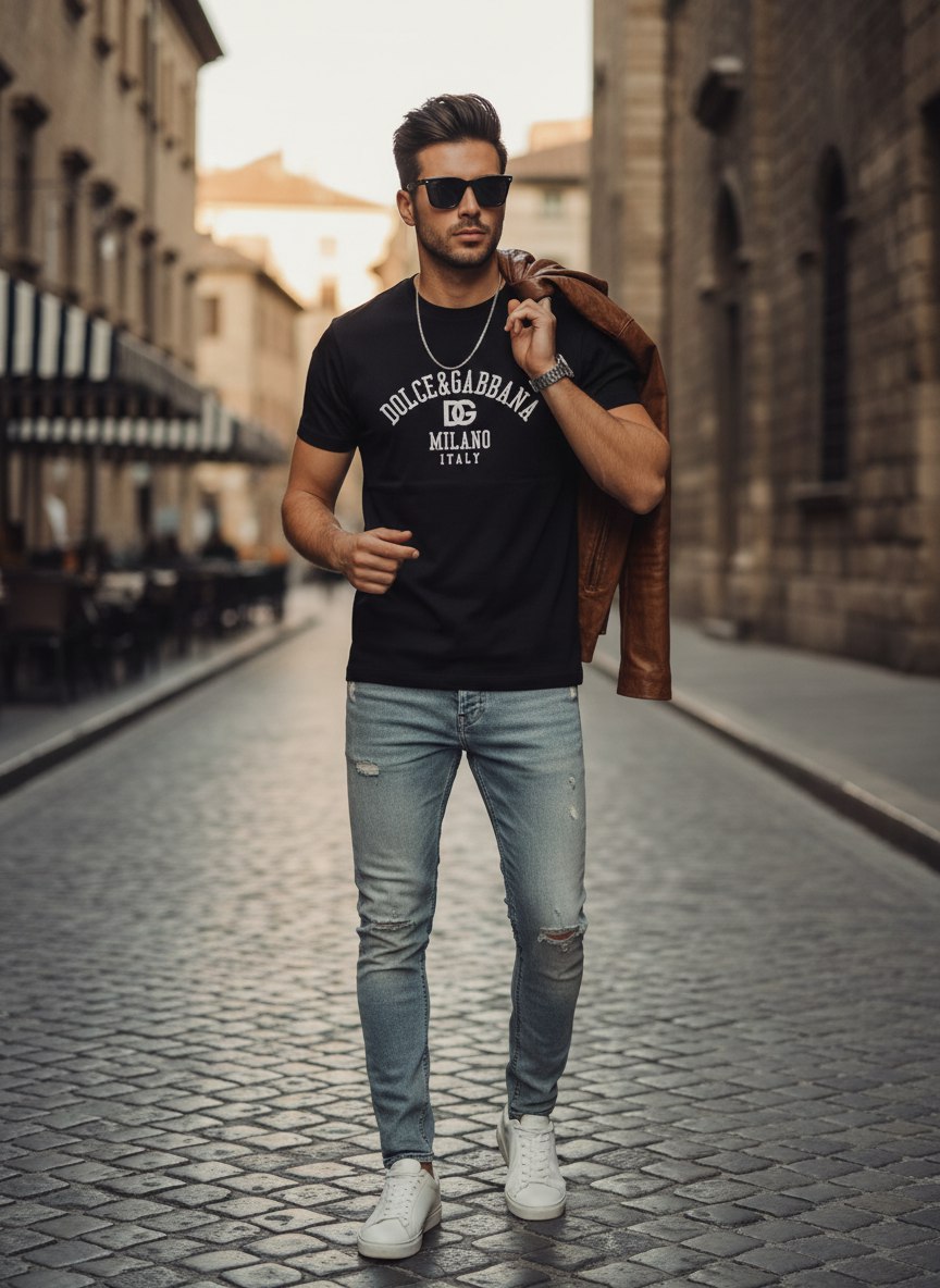 Эта мужская футболка DOLCE & GABBANA выполнена в элегантном чёрном цвете, что придаёт ей универсальность и стиль. Изготовленная из высококачественного материала, футболка обеспечивает комфорт и лёгкость в носке. Элементом уникальности является изящная вышивка с логотипом DG, что делает изделие особенно привлекательным для ценителей моды. Эта модель идеально подходит для повседневной носки, добавляя интересный акцент в гардероб каждого мужчины.