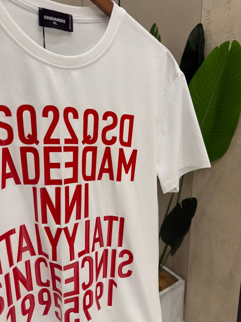 Эта белая мужская футболка от DSQUARED лаконично сочетает в себе простоту, комфорт и узнаваемый брендовый почерк. Главным акцентом дизайна является контрастная красная надпись с названием бренда DSQUARED. Эта надпись придает модели узнаваемый и стильный вид. Она станет отличным выбором для тех, кто ценит комфорт, качество и узнаваемый дизайн.