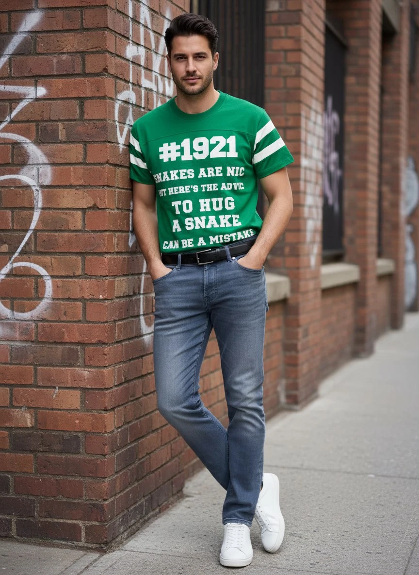 Мужская футболка от GUCCI – это смелое сочетание ярких цветов, спортивного стиля и узнаваемого брендового дизайна. Яркий зеленый цвет футболки привлекает внимание и создает энергичный образ. На футболке расположены белые надписи в спортивном стиле, которые добавляют динамичности и подчеркивают современный характер модели. Эта футболка станет заметным акцентом в вашем гардеробе и подчеркнет вашу индивидуальность.