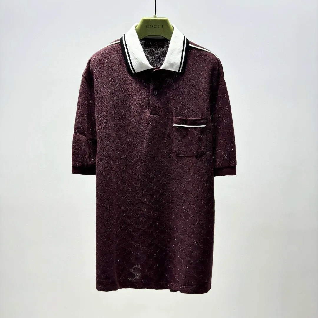 Мужская футболка Gucci из хлопка — стильный и элегантный выбор для современных мужчин. Модель выполнена в темно-бордовом оттенке с оригинальной текстурой и фирменным узором бренда по всей поверхности изделия.