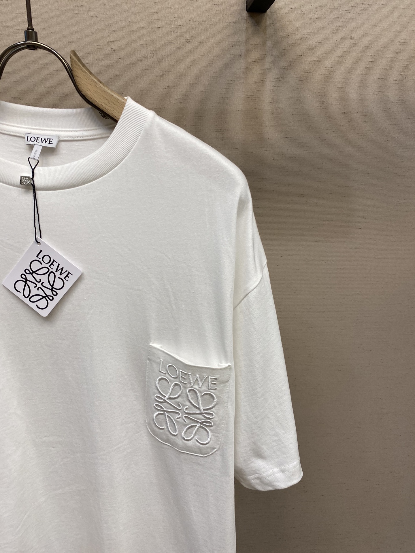 На груди — удобный накладной карман, украшенный вышитым фирменным логотипом Loewe, который придаёт образу изысканность и узнаваемость.