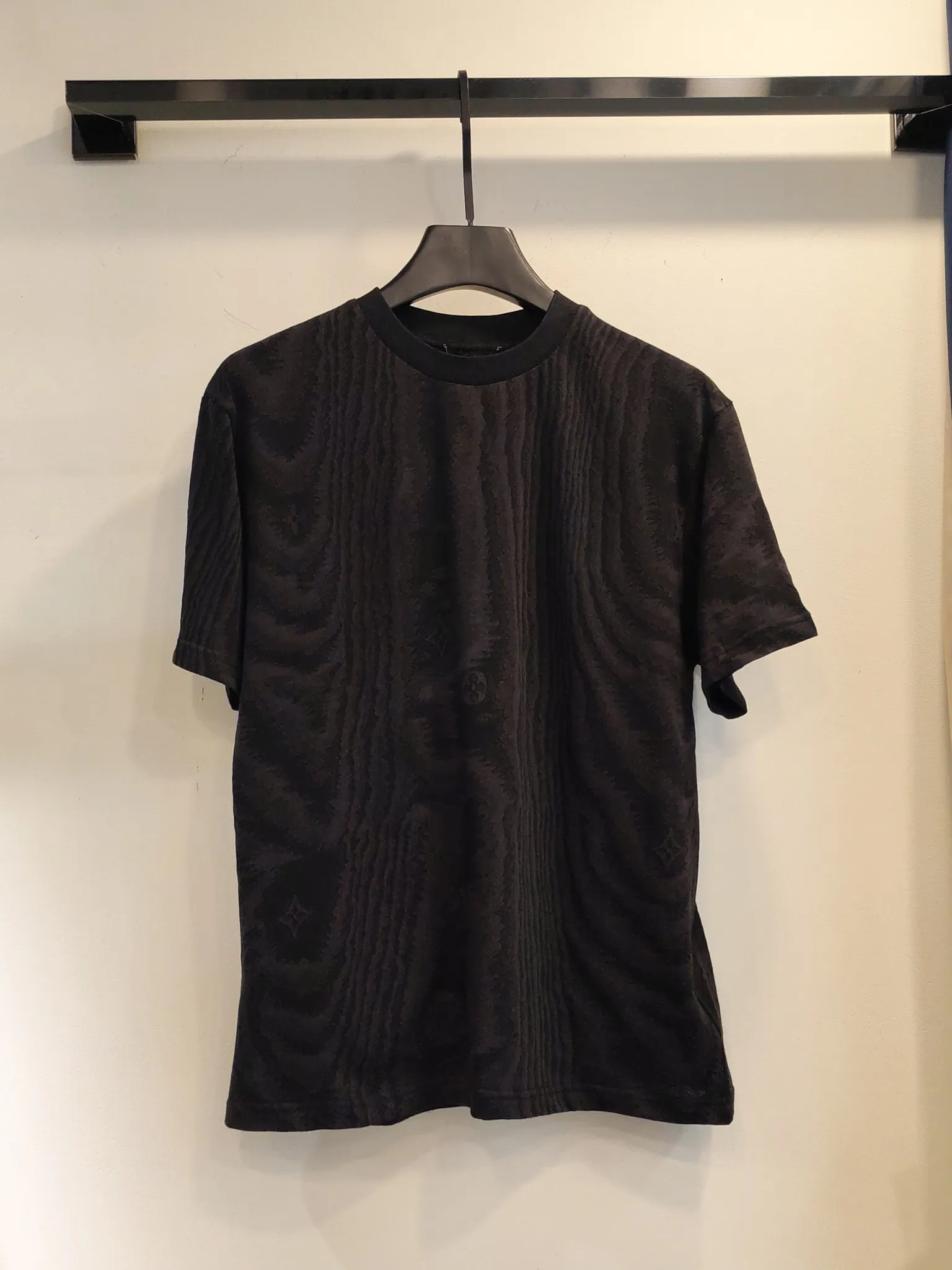 Стильная мужская футболка от Louis Vuitton выполнена из высококачественного трикотажа черного цвета. Особенность модели — лаконичный, но при этом узнаваемый дизайн: ткань украшена фирменным монохромным узором, повторяющим культовый монограммный мотив Louis Vuitton, который ненавязчиво переливается при разном освещении.