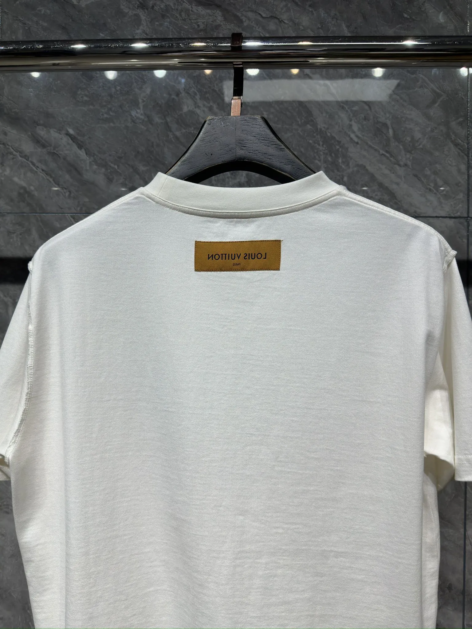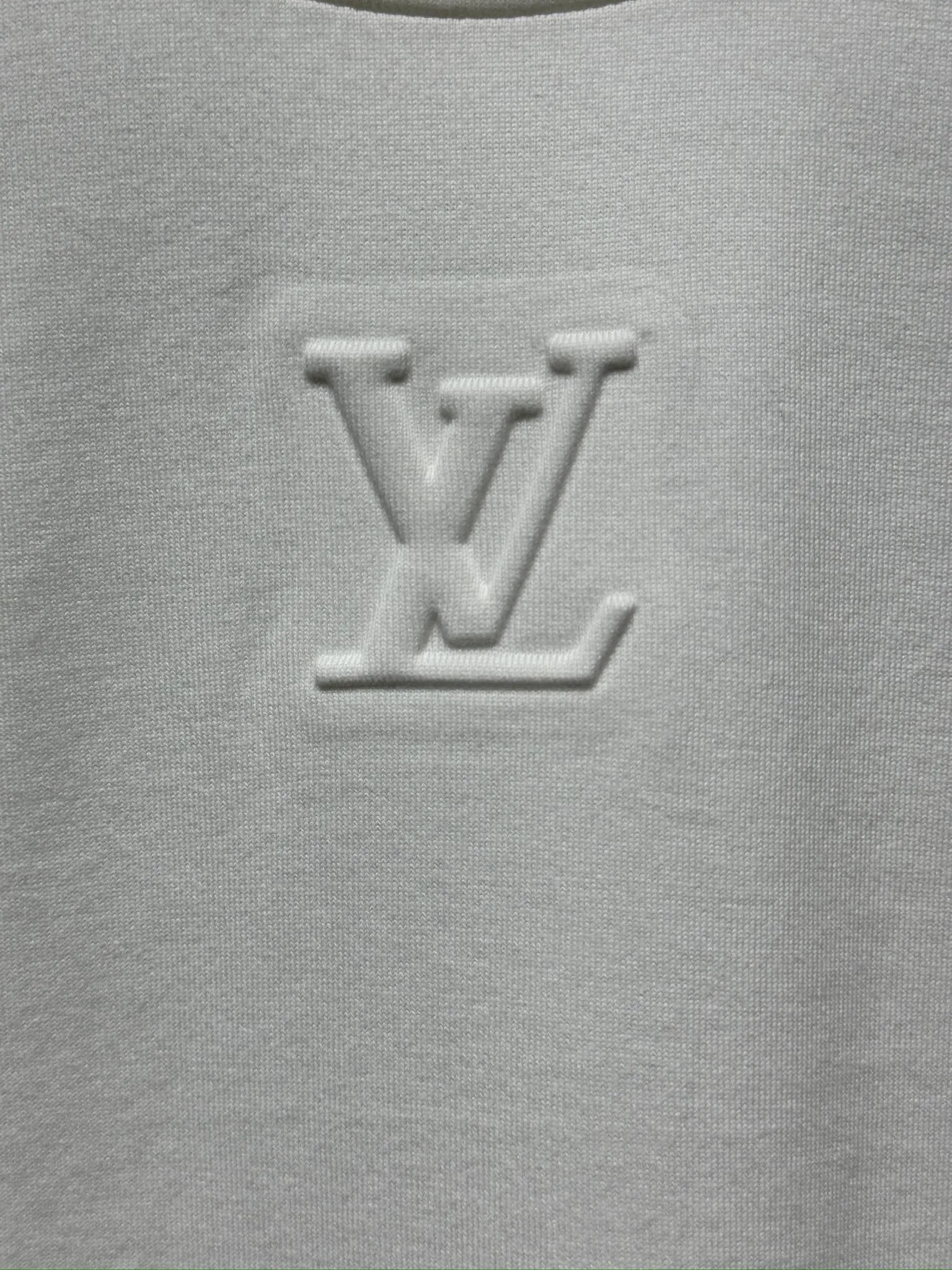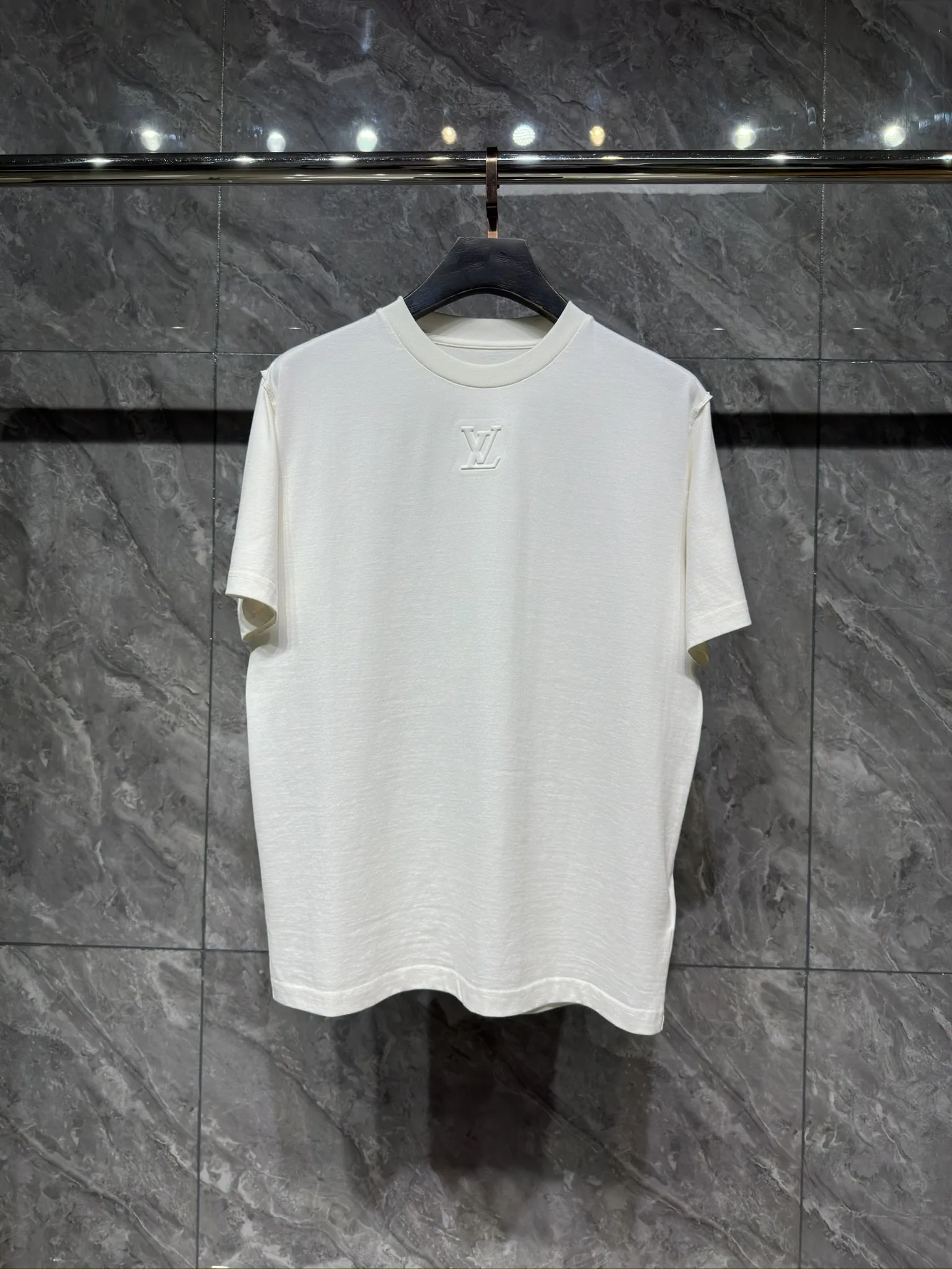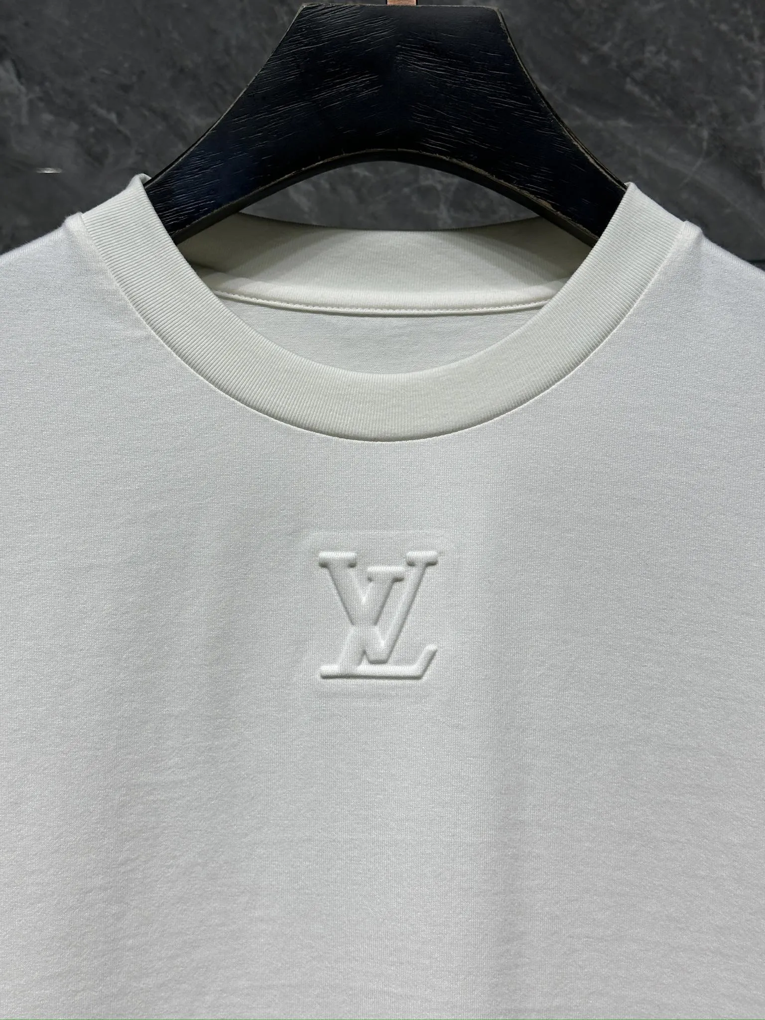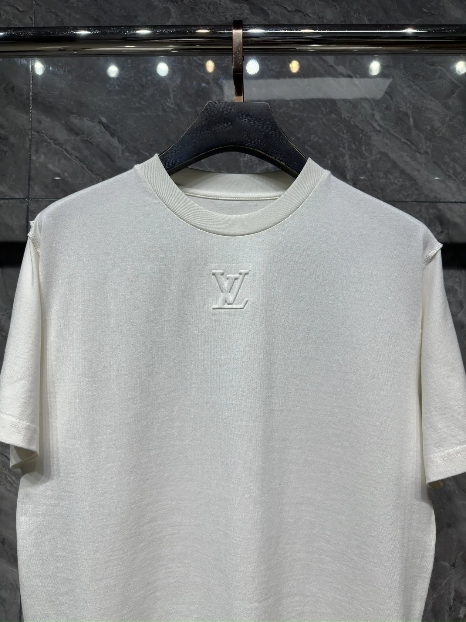 На груди — фирменная вышивка с монограммой LV, подчёркивающая принадлежность к знаменитому дому моды. Классический крой и минималистичный дизайн позволяют легко интегрировать эту футболку в любой повседневный или стильный образ.