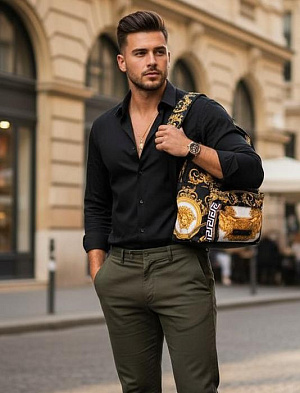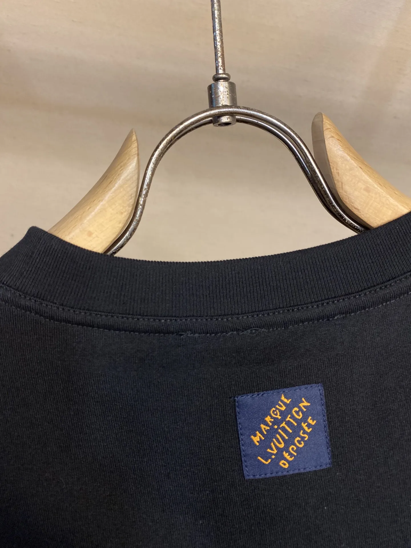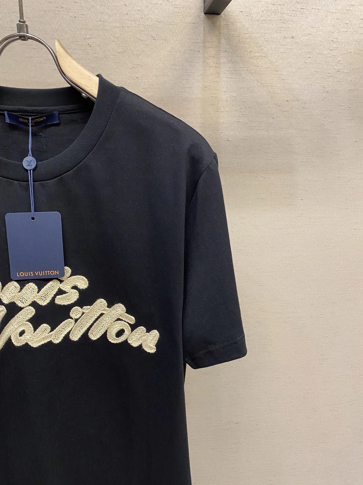 Мужская футболка Louis Vuitton — это стильный и универсальный элемент современного гардероба. Модель представлена в классических цветах: черный и белый. На груди — фирменный объемный логотип в золотистом оттенке, выполненный в стиле эффектной вышивки.