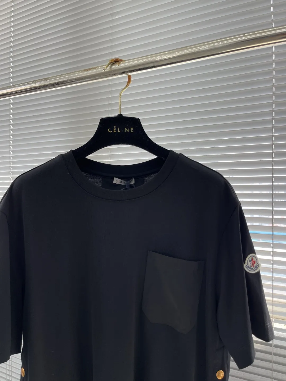 Эта стильная мужская футболка от Moncler отличается лаконичным, но в то же время изысканным дизайном. Модель прямого кроя с круглым воротом украшена фирменным логотипом Moncler на левом рукаве, что подчёркивает её премиальное происхождение. На груди располагается аккуратный накладной карман. Особое внимание привлекают декоративные пуговицы по бокам, которые делают образ более современным и оригинальным.