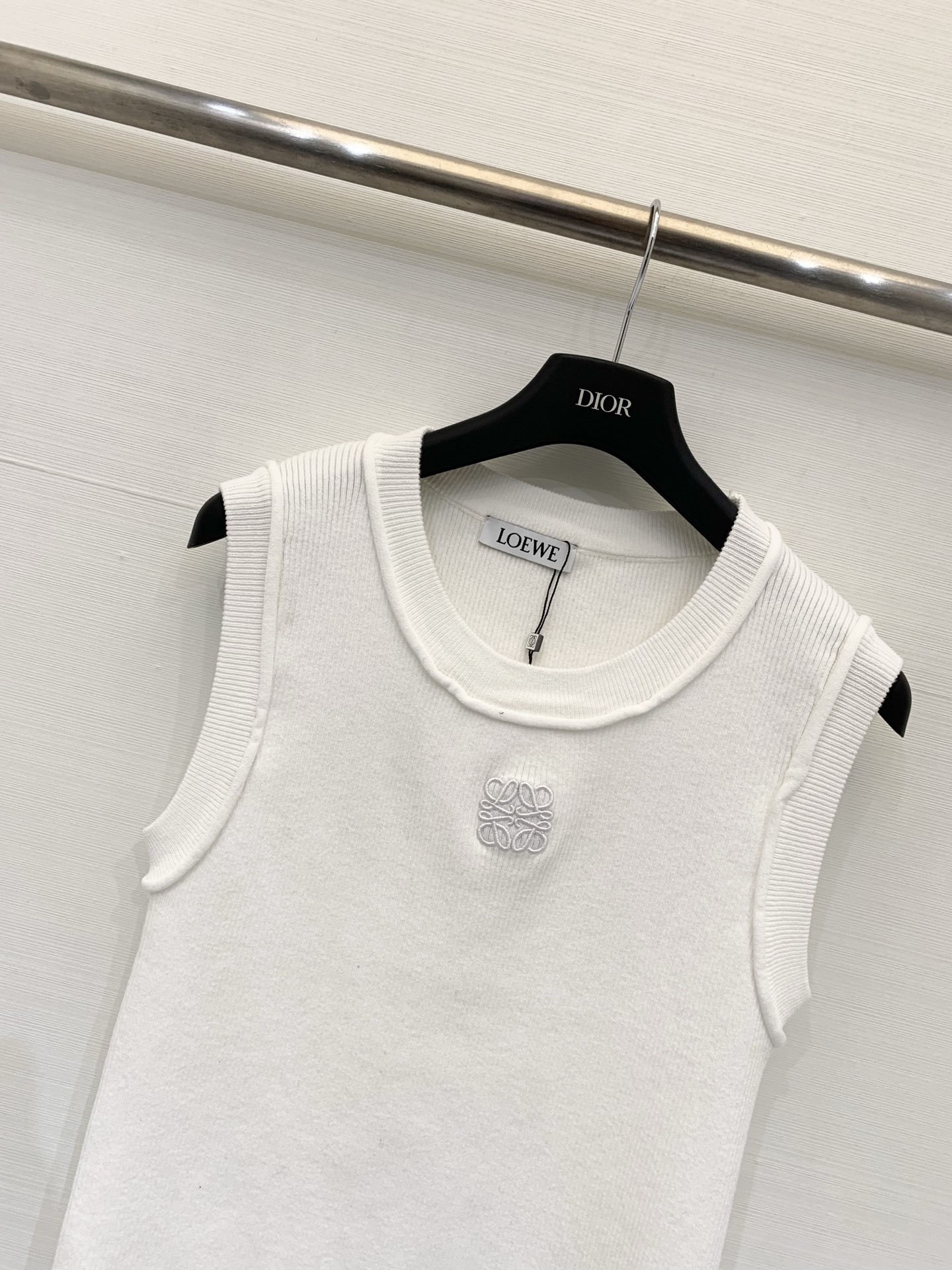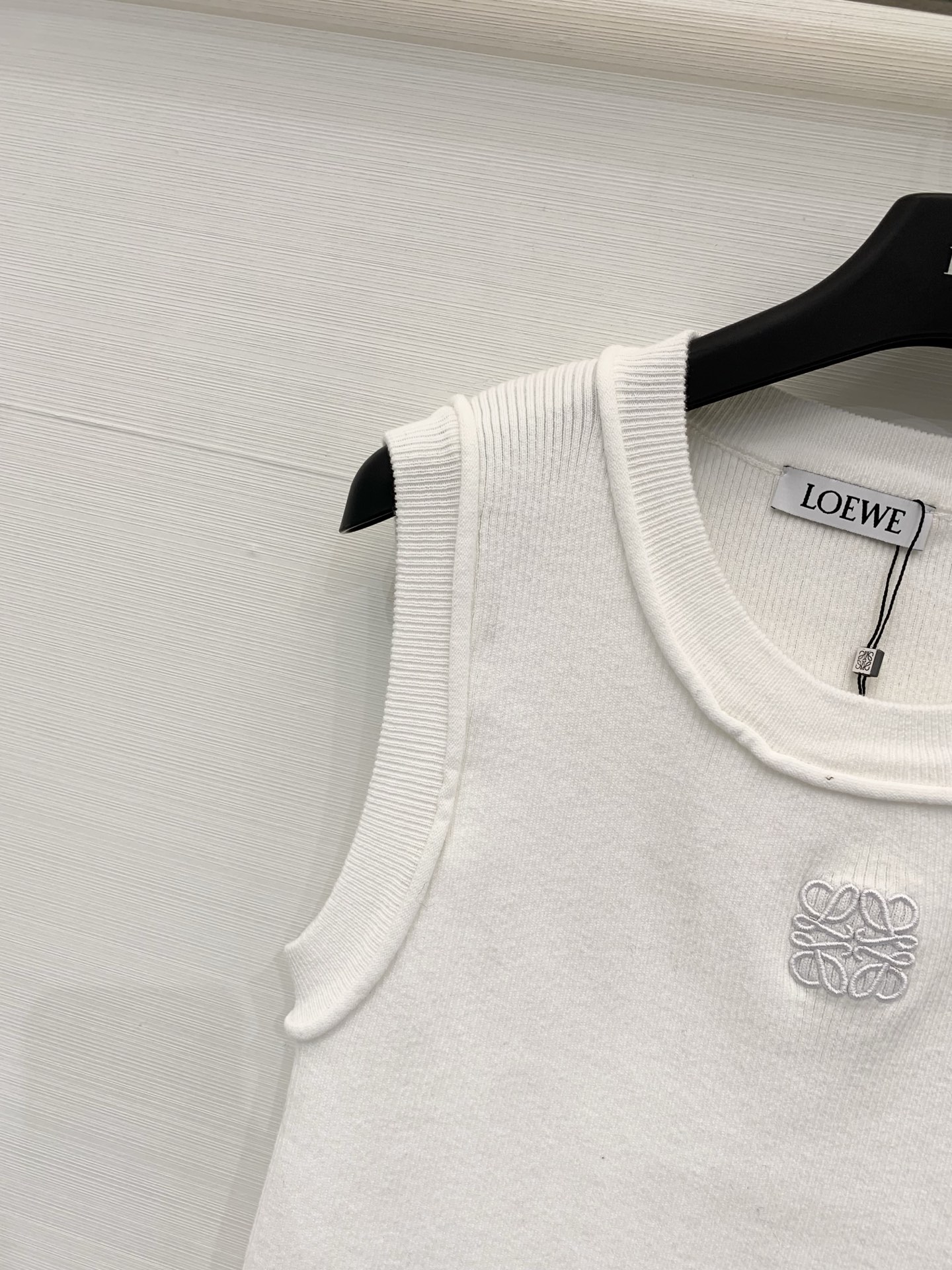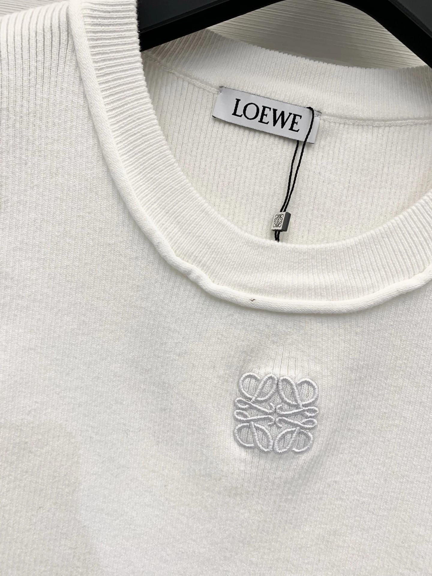 Элегантная майка Loewe выполнена из мягкой натуральной шерсти. Минималистичный силуэт и аккуратная круглая горловина сочетаются с тонкой ребристой вязкой и небольшим тон- в- тон фирменным логотипом Anagram на груди — идеальный выбор для многослойных образов и утончённого повседневного стиля.